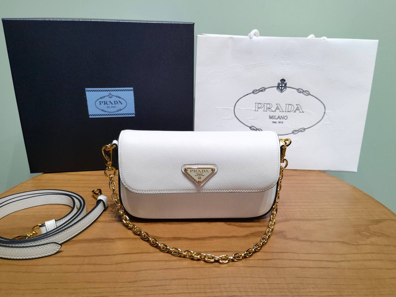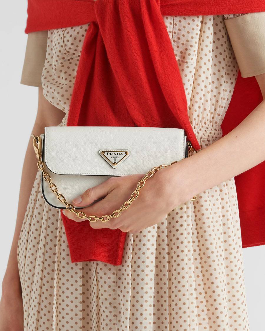 Восхитительная мини-сумка Prada, воплощение элегантности и изысканности в компактном размере! Эта белоснежная красавица станет идеальным акцентом в вашем образе. Белоснежный цвет придает ей свежесть и универсальность, позволяя сочетать с различными нарядами.