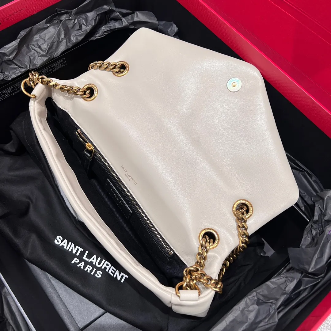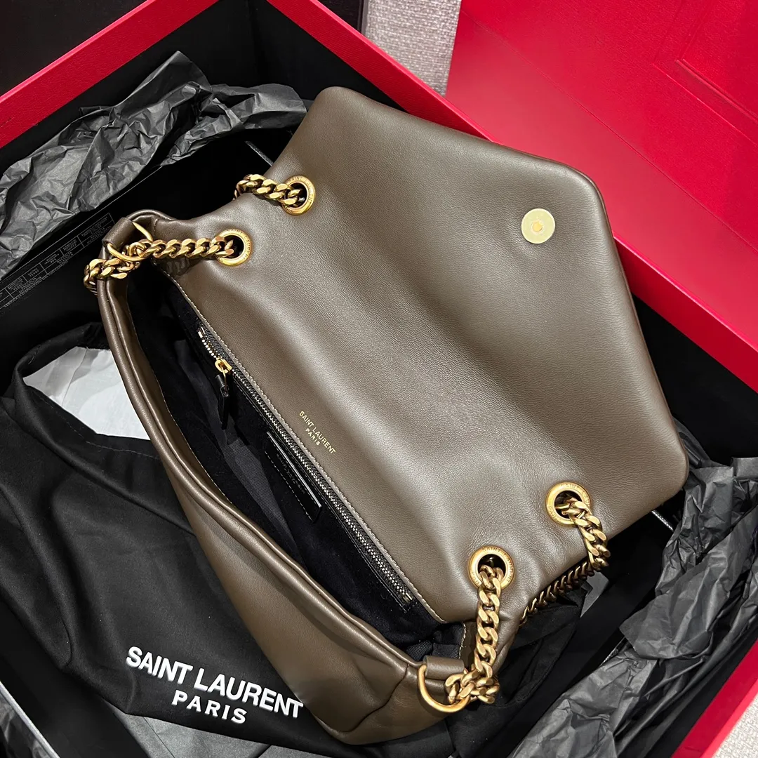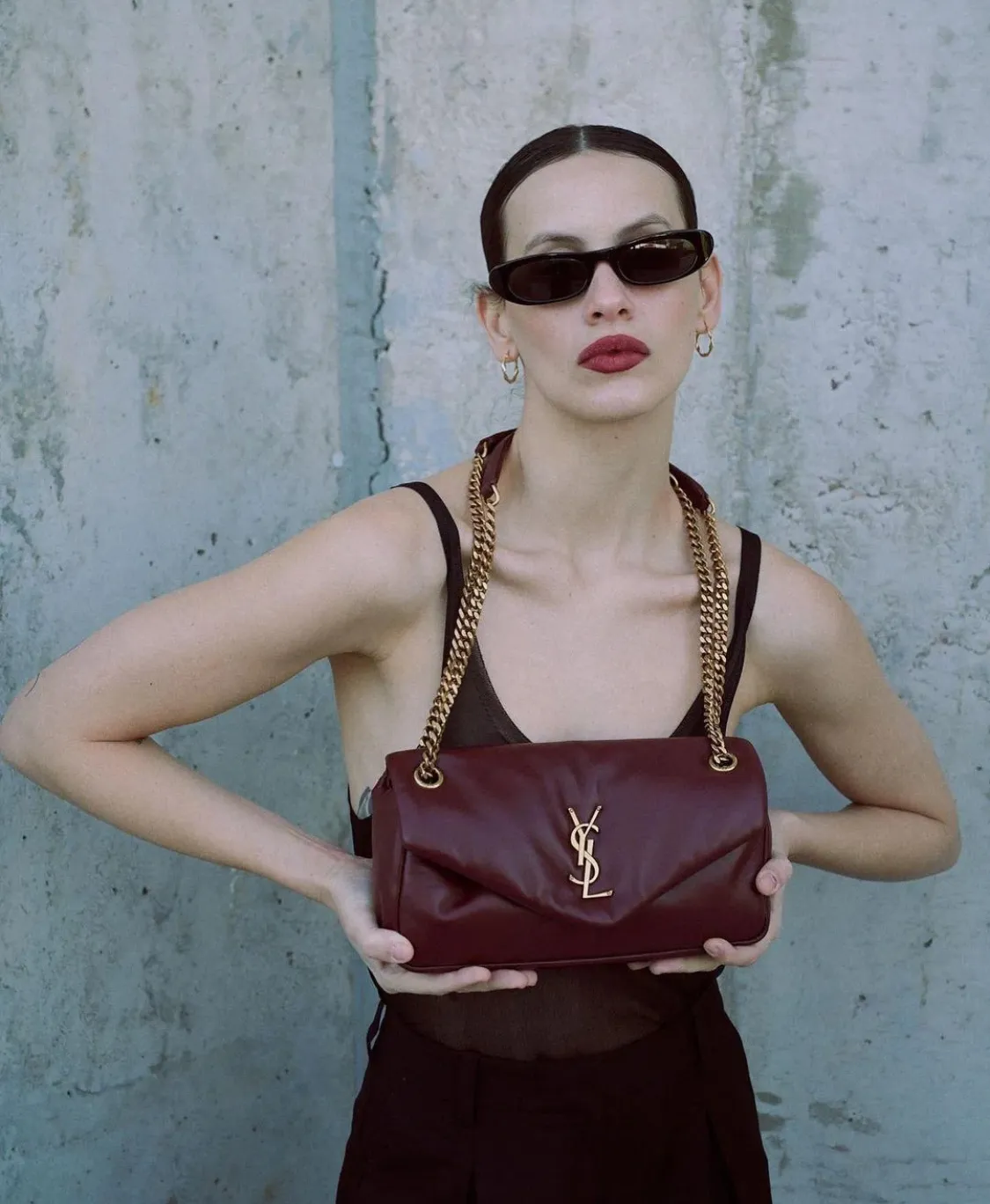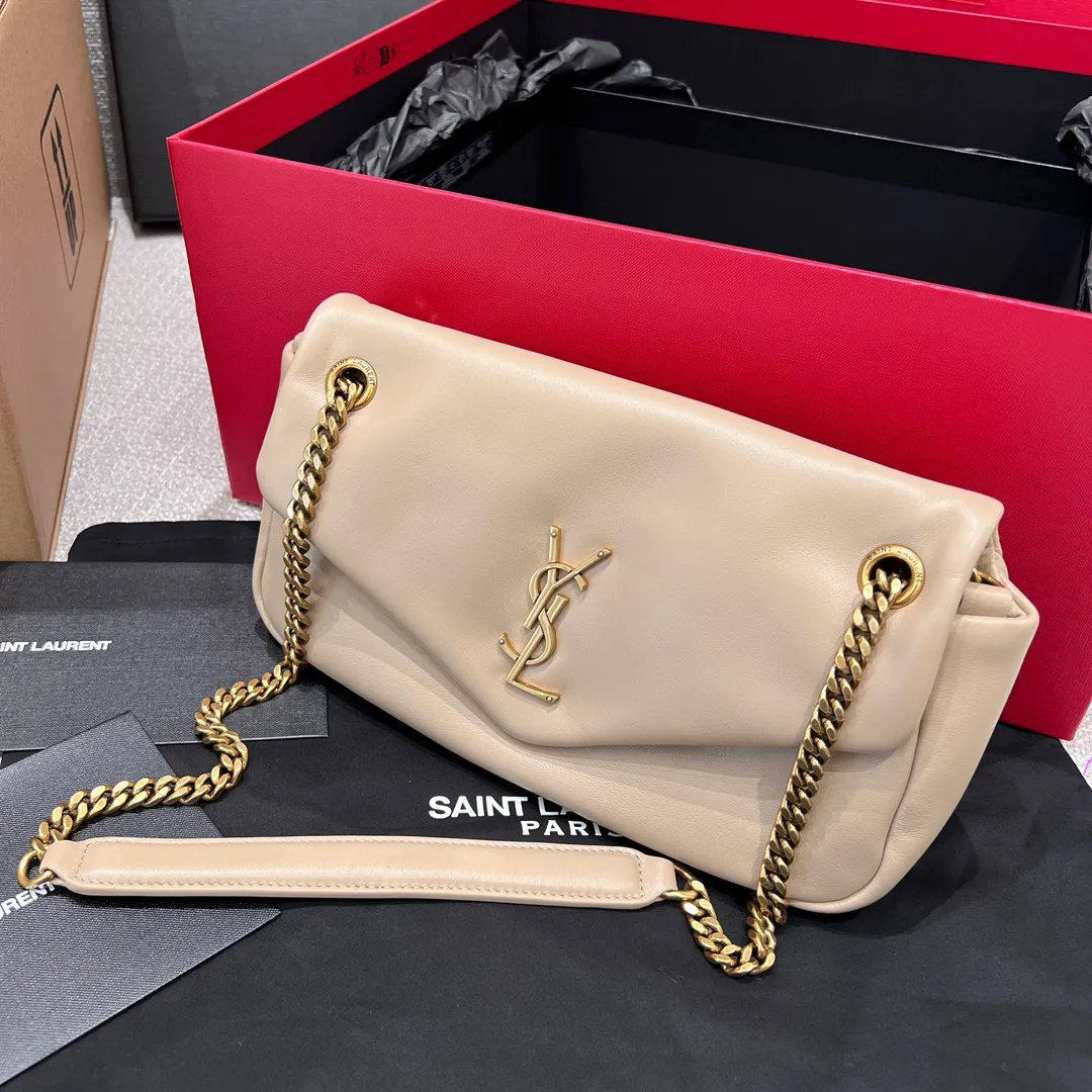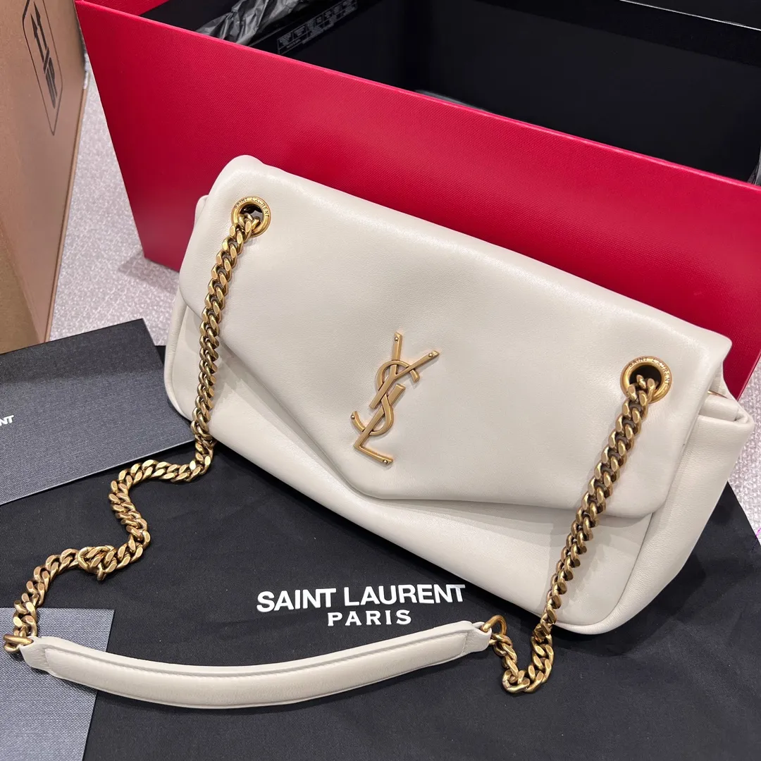 Сумка Calypso из овчины с лаконичным металлическим логотипом YSL. Мягкая и вместительная, она сочетает в себе легкость и практичность. Носите ее на плече с помощью кожаного ремня или цепочки, или же используйте двойную цепочку для более нарядного образа. Ретро-фурнитура придает сумке неповторимый шарм, идеально подходящий для создания повседневных образов.