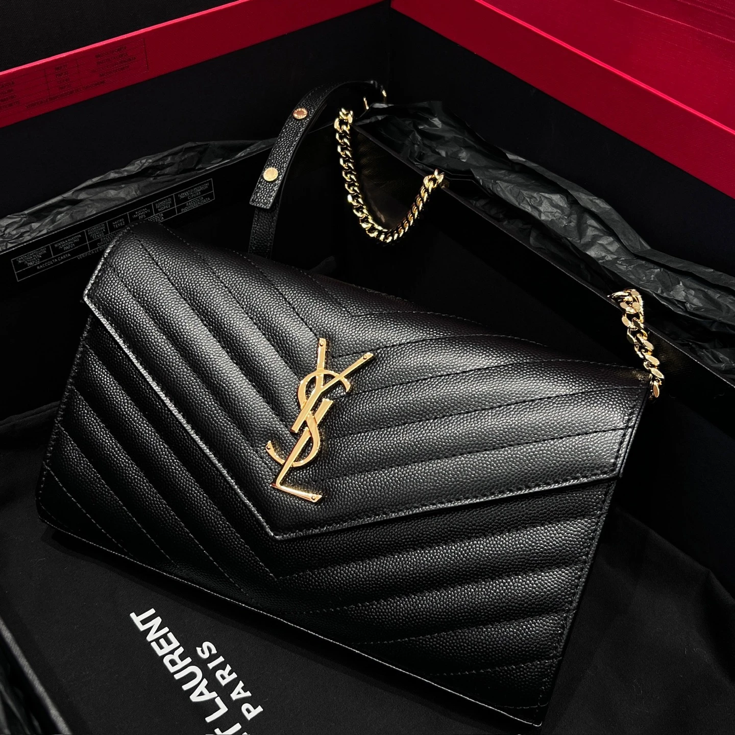 Элегантная и лаконичная сумка SAINT LAURENT Cassandre — воплощение фирменного парижского шика и безупречного минимализма. Модель выполнена из высококачественной зернистой кожи с изящной стеганой фактурой и дополнена культовым металлическим логотипом YSL с золотистым блеском.
