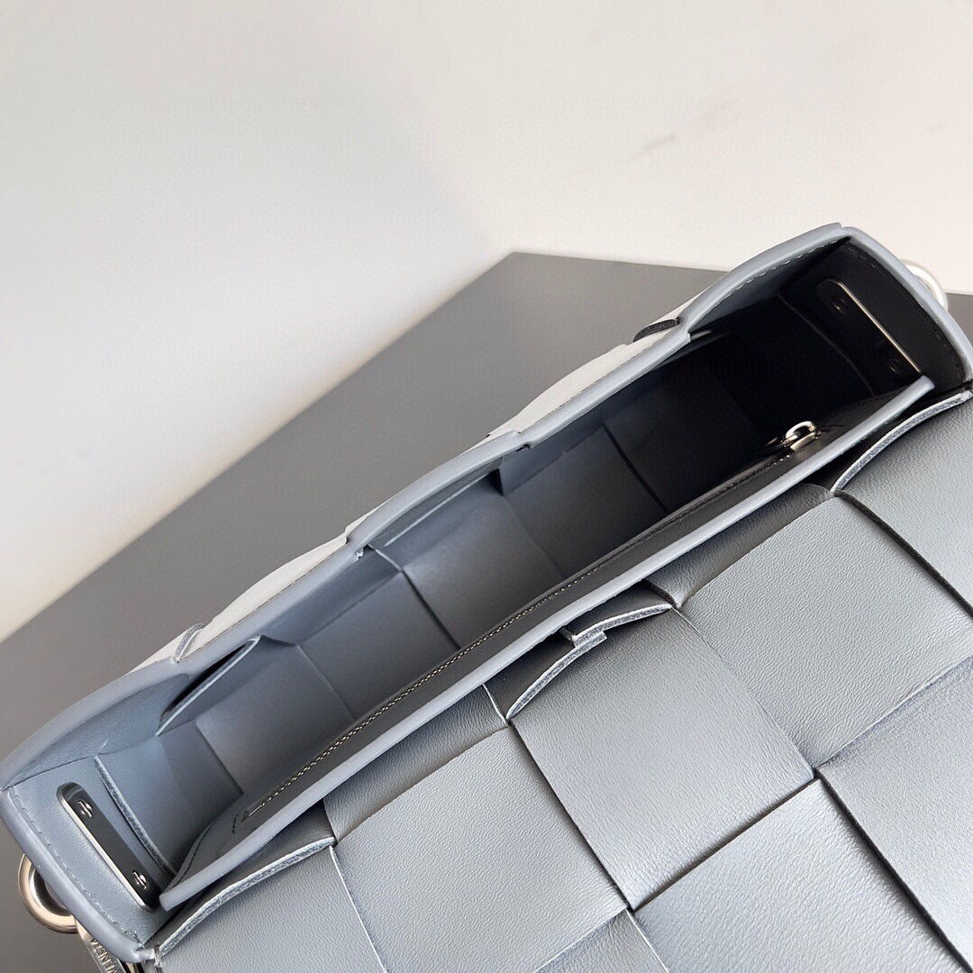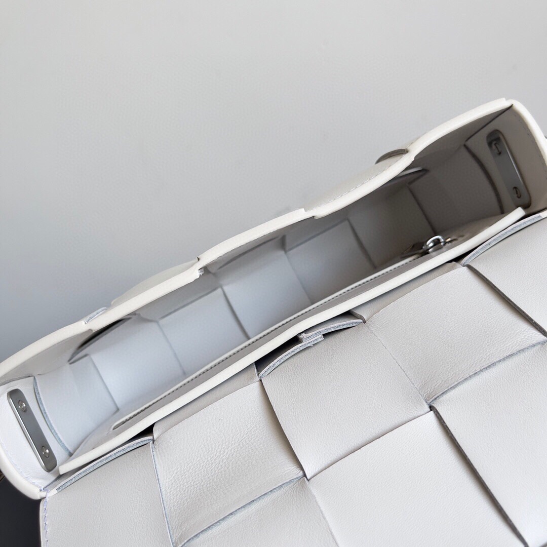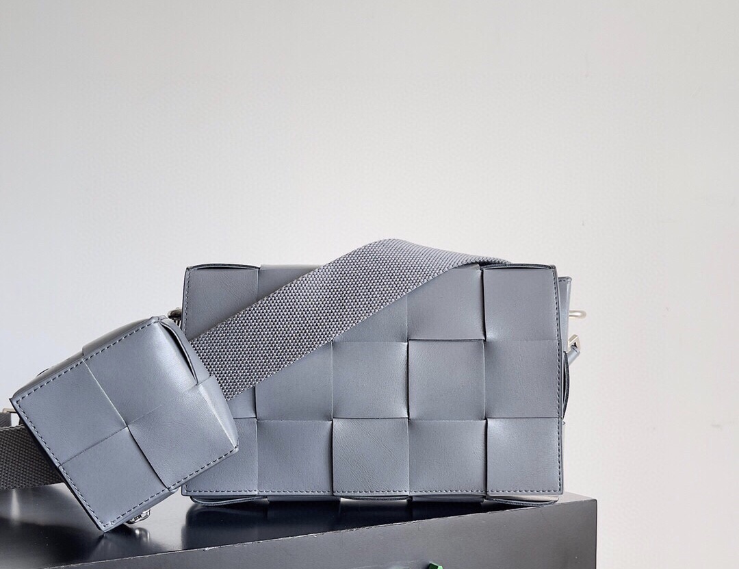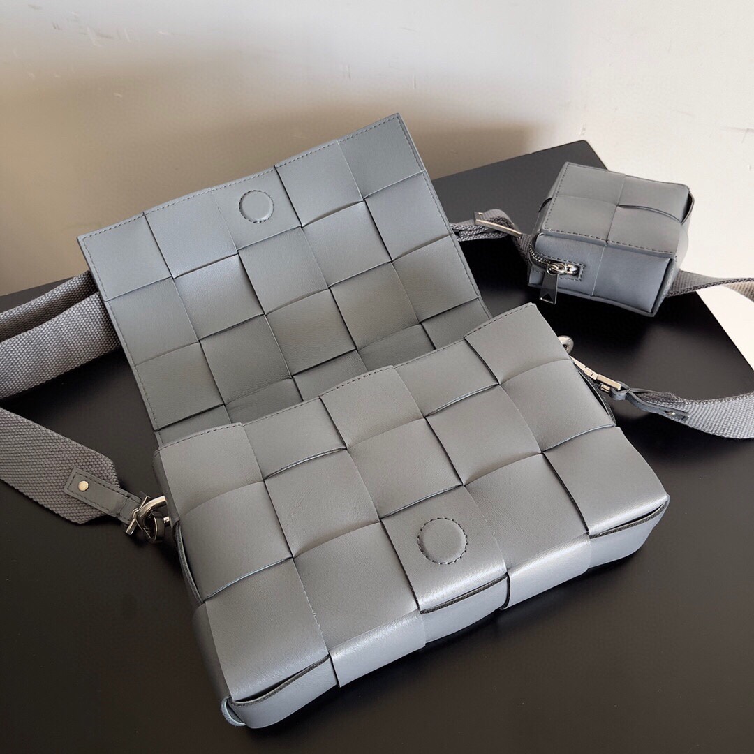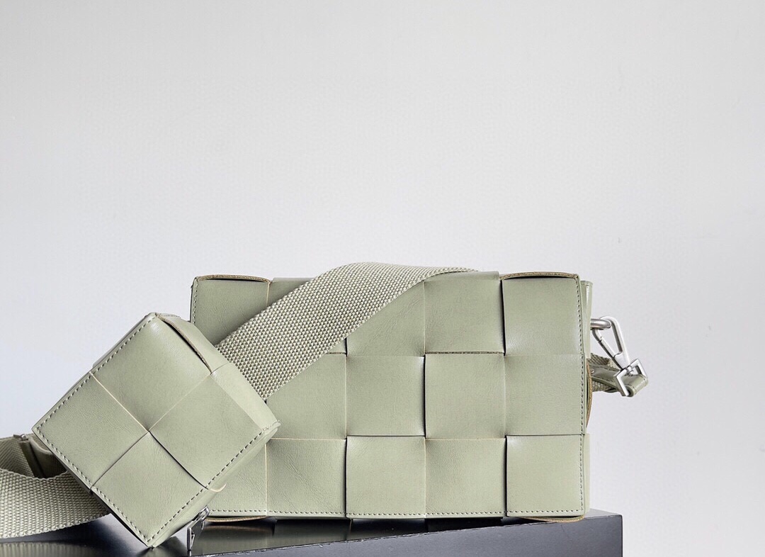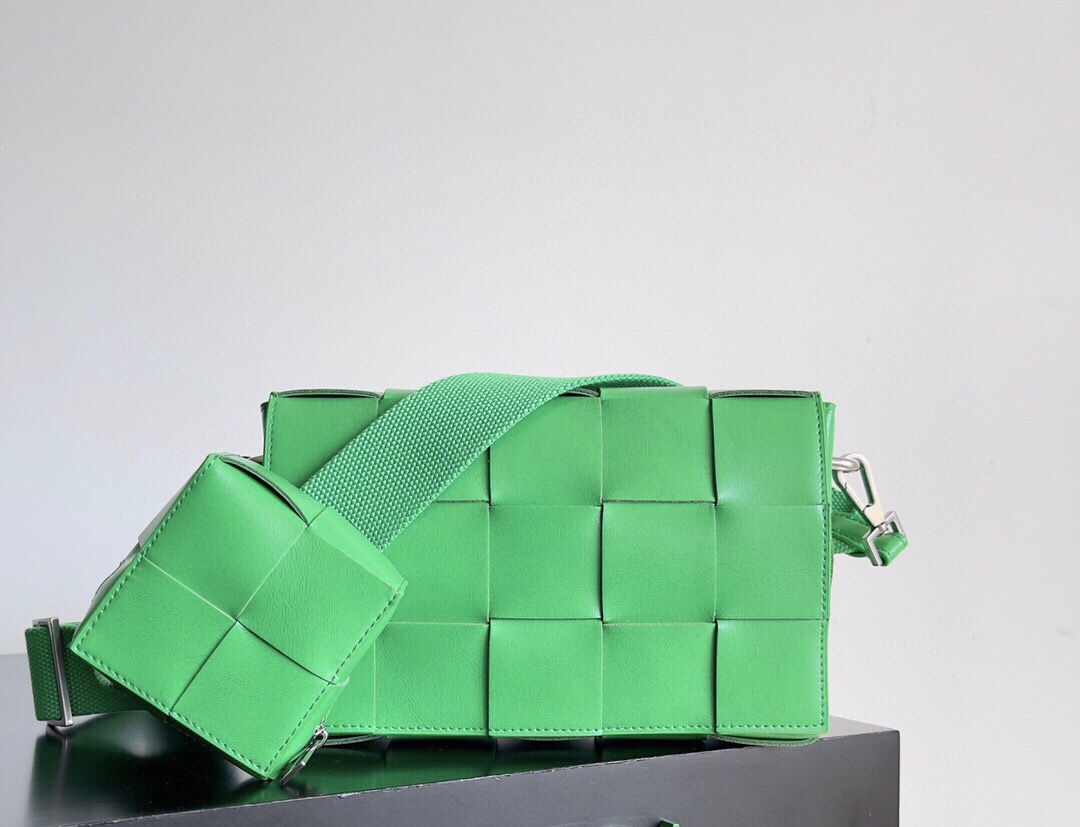 Cумка Cassette через плечо из кожи Intreccio оснащена съемным и регулируемым ремнем, который включает застегивающийся на молнию кожаный чехол для AirPods. Внутри находится один карман на молнии для удобного хранения мелочей. Сумка закрывается магнитной застежкой. Подкладка выполнена из телячьей кожи с узором Intreccio, а фурнитура имеет серебристую отделку.