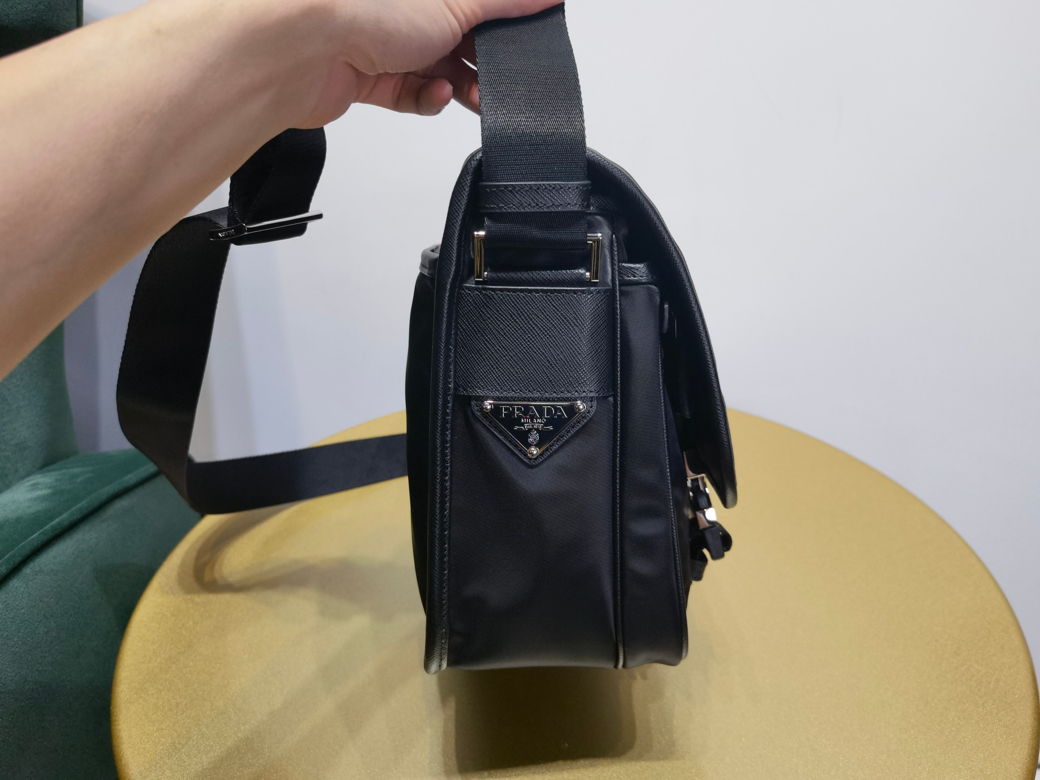 Сумка от Prada, с нейлоновым клапаном и отделкой из кожи Saffiano, является стильным и практичным аксессуаром на каждый день. Нейлоновый материал делает сумку легкой и удобной в использовании, а кожа Saffiano придает ей элегантный вид и обеспечивает долговечность и защиту от царапин.