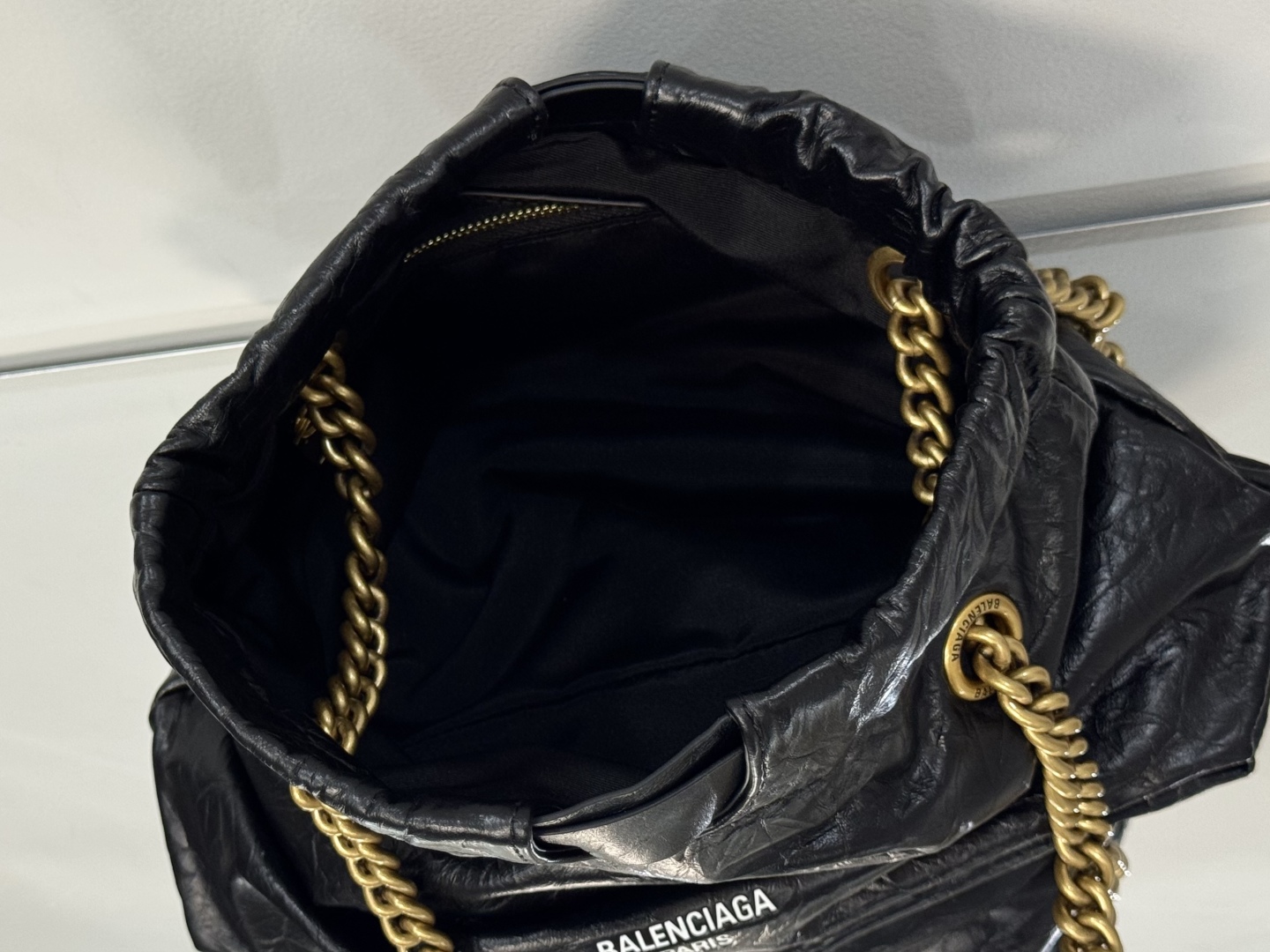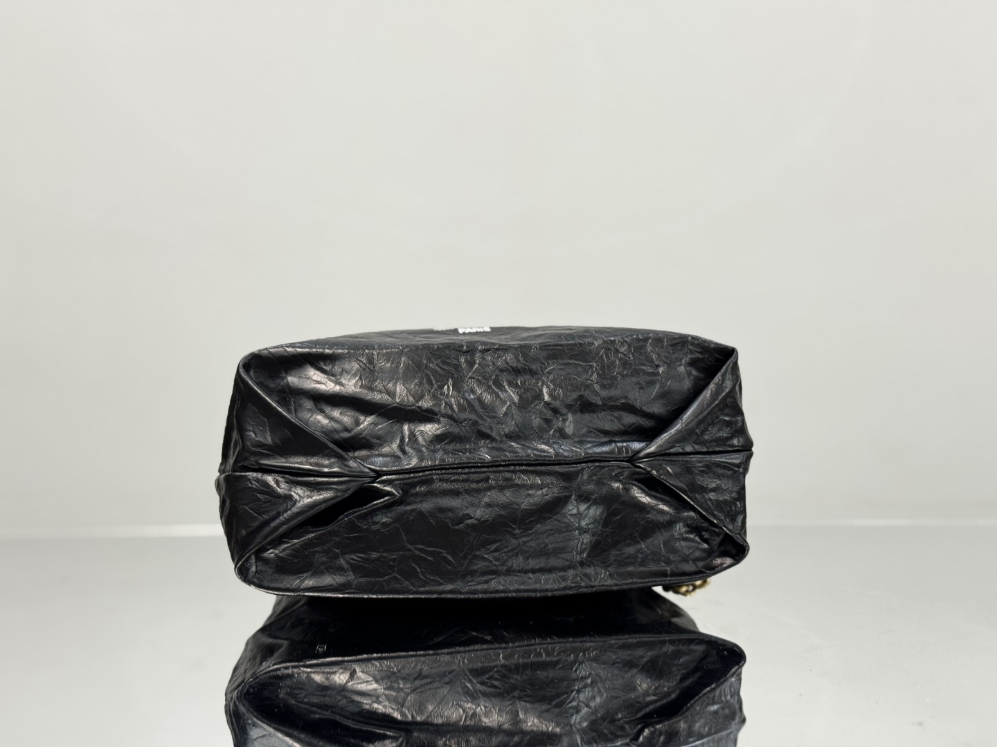 Женская сумка BALENCIAGA Tote — это утончённая эволюта иконической модели Tote, где фирменный дизайн бренда обретает новую глубину в насыщенном чёрном оттенке премиальной текстурированной кожи с рельефным тиснением, идеально подходящая для женщин, ценящих элегантность с ноткой урбанистического бунта и органичной роскоши. Эта лимитированная версия воплощает философию BALENCIAGA: гармоничный баланс между мягкой, обтекаемой формой и структурированной грацией, где каждая деталь подчёркивает динамику современной жизни с ощущением тактильной, матовой изысканности. Компактные пропорции средней сумки обеспечивают идеальный баланс вместительности и лёгкости — достаточно пространства для ежедневных, таких как кошелёк, смартфон, ключи и косметика, но эргономичной для ношения в руке или через плечо, адаптируясь к ритму дня с лёгким, уверенным шармом.