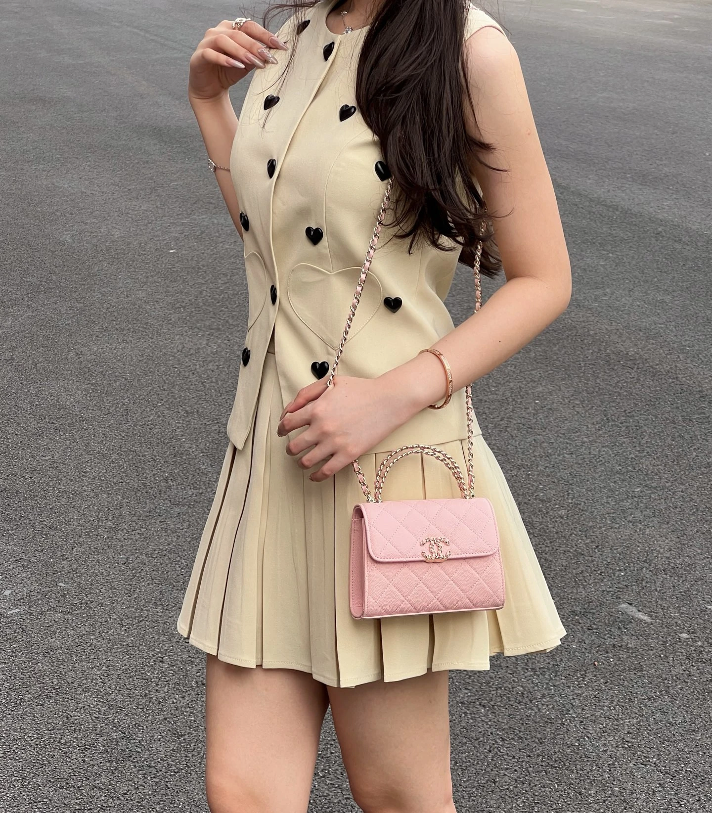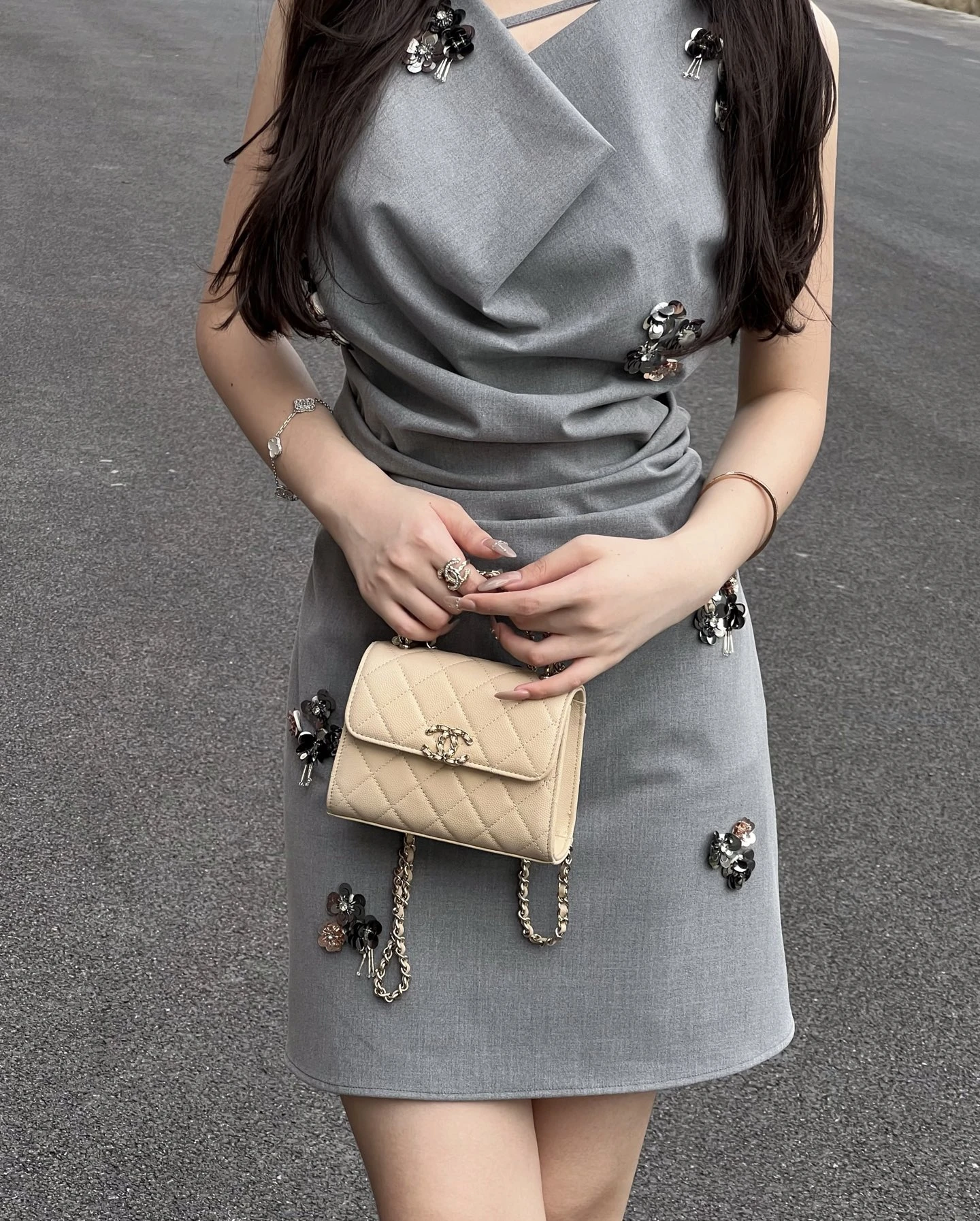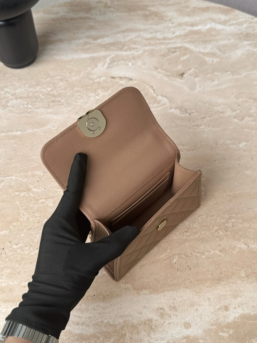 Удобная короткая ручка и длинная цепочка позволяют носить сумку как в руке, так и через плечо, придавая образу изысканность и утонченность. Эта сумка станет украшением любого гардероба, подчёркивая стиль и статус своей обладательницы.