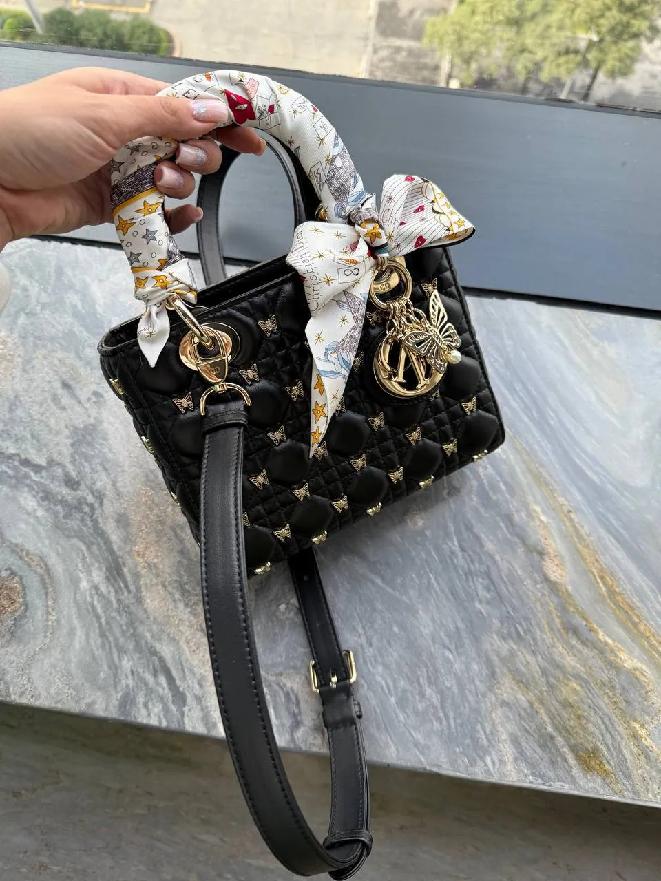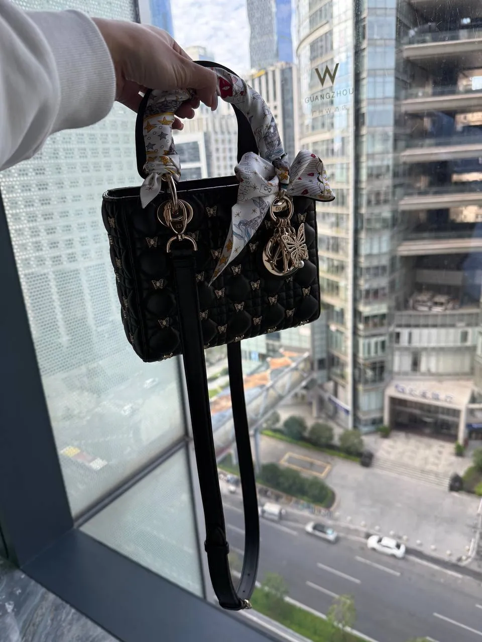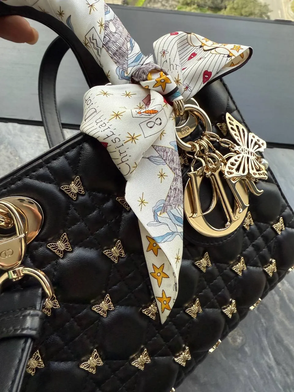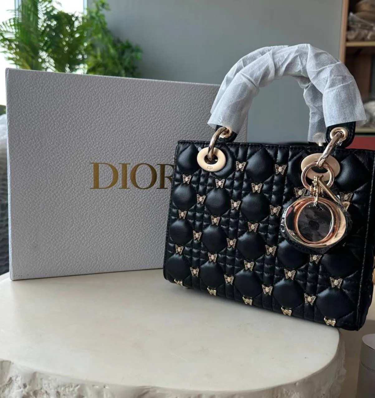 Сумка Lady Dior — это не просто аксессуар, это истинный символ стиля и элегантности. Её изысканный дизайн из белой овчины с характерной строчкой «каннаж» и золотыми заклепками-бабочками подчеркивает безупречный вкус и внимание к деталям. Эта маленькая модель подходит как для повседневного ношения, так и для вечерних выходов, благодаря съемному кожаному ремешку, который позволяет носить сумку на руке или через плечо. Дополнительный внутренний карман на молнии обеспечивает удобство в хранении мелочей.