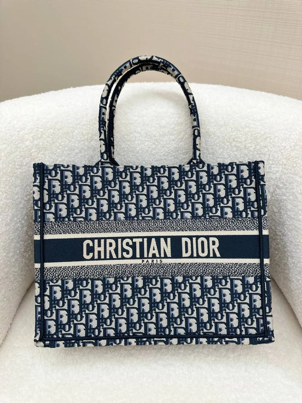 На передней части изделия расположена крупная надпись CHRISTIAN DIOR PARIS, придающая аксессуару особый шарм и статус. Lady Book Tote станет эффектным акцентом образа и подчеркнёт Вашу индивидуальность и безупречный вкус.