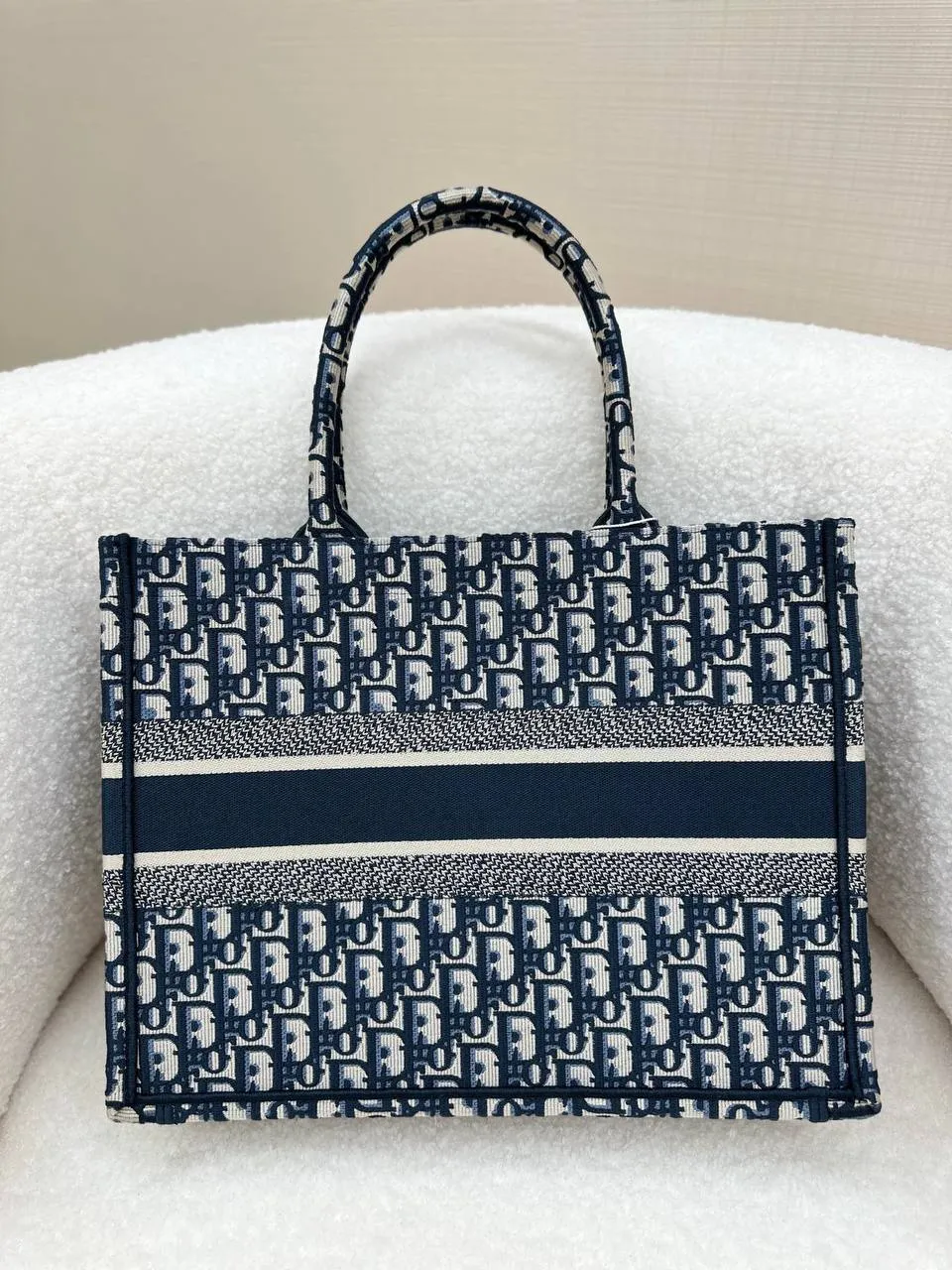 Элегантная женская сумка CHRISTIAN DIOR Lady Book Tote — воплощение стиля и узнаваемого французского шика. Модель выполнена из прочного жаккарда с фирменным узором Dior Oblique в синих тонах.