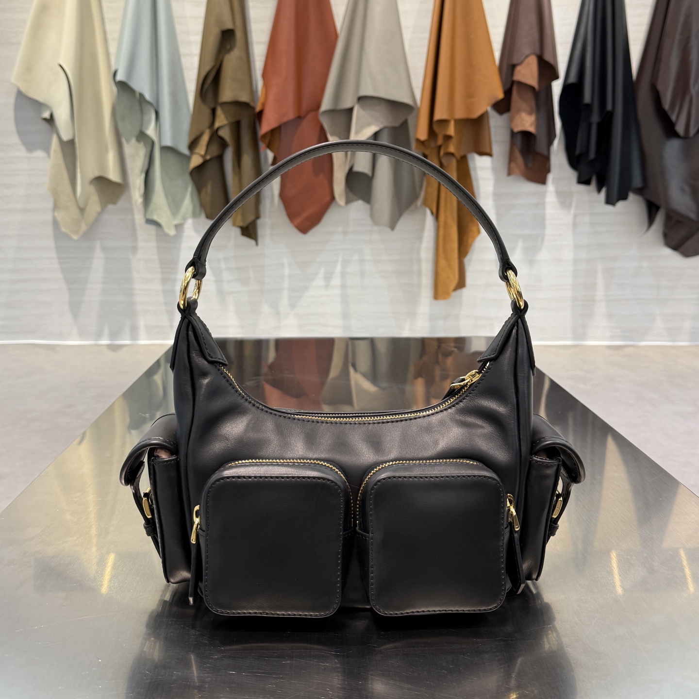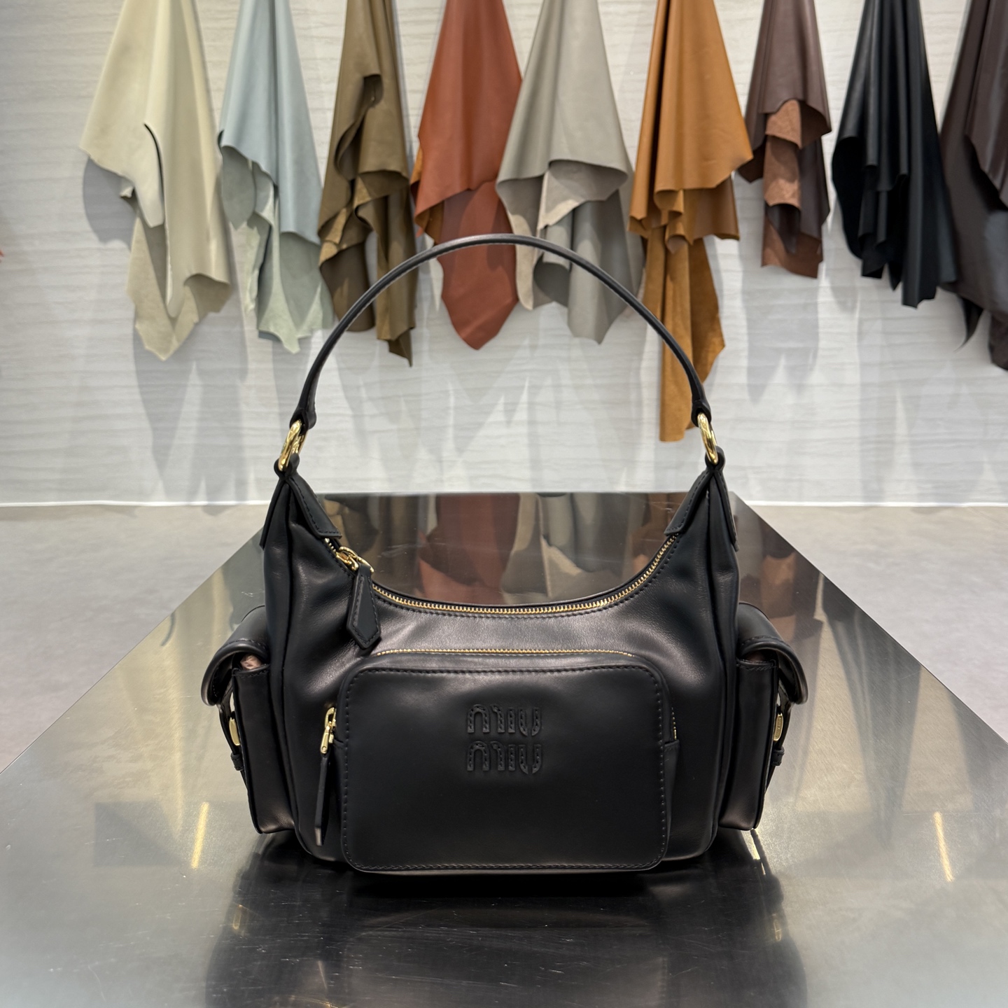 Элегантная женская сумка MIU MIU Pocket Nappa в классическом черном цвете — компактная и в то же время вместительная модель из мягкой наппа-кожи с эффектом «слоу», подчёркнутая золотистой фурнитурой. Идеальна для ежедневного образа: сочетает утончённость и практичность.