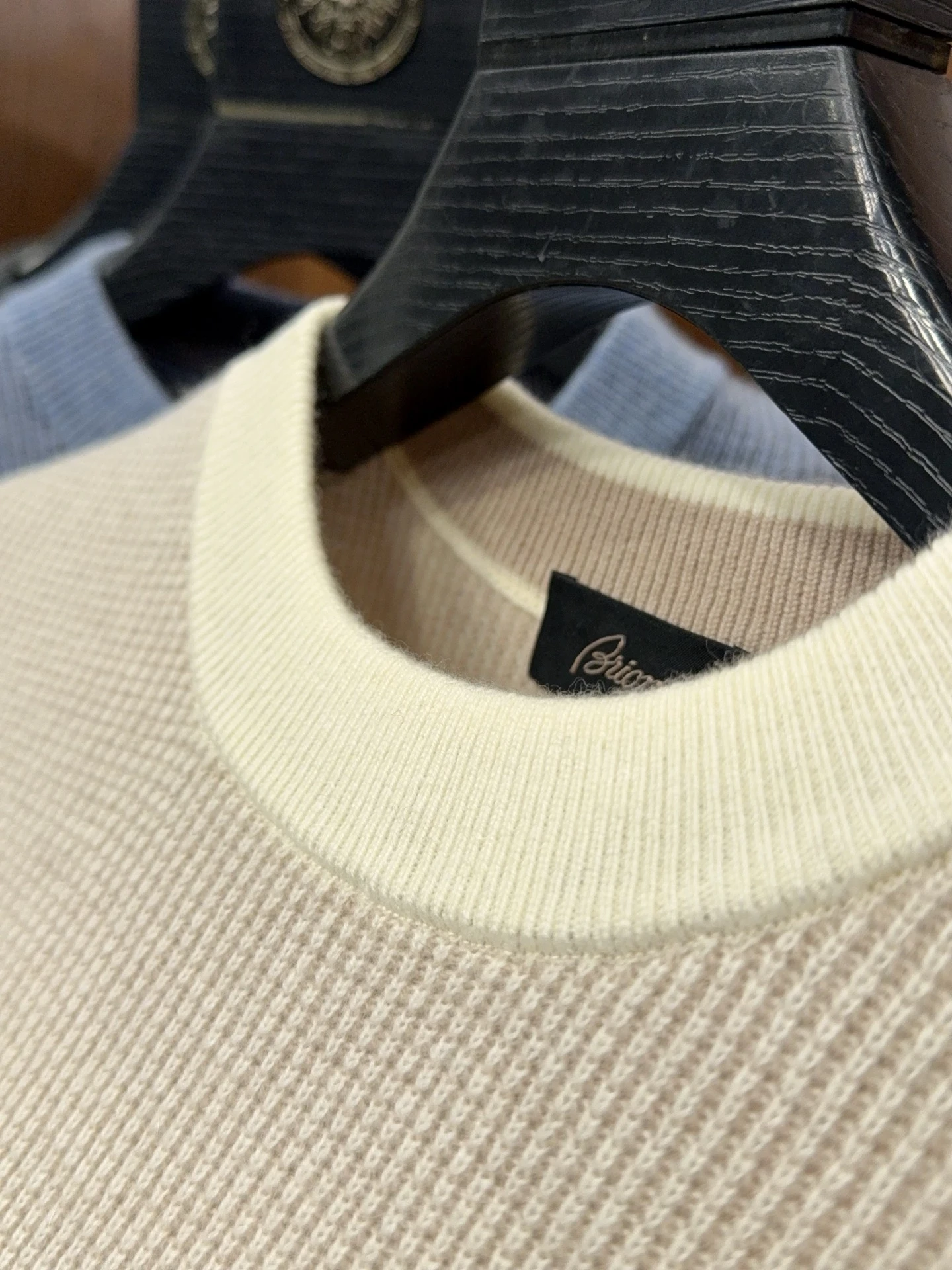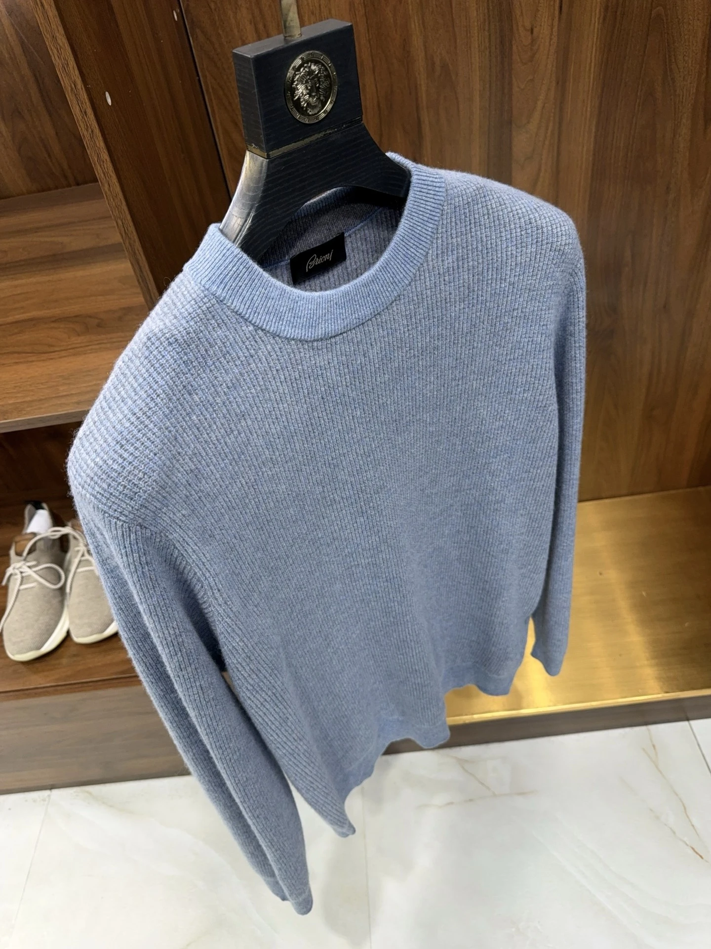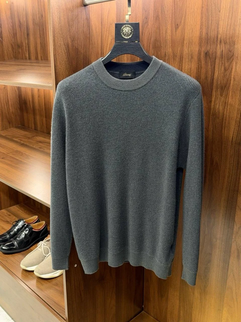 Элегантный мужской свитер от BRIONI выполнен из высококачественного материала, который гарантирует комфорт и безупречный внешний вид. Модель представлена в нескольких сдержанных оттенках: кремовом, небесно-голубом и графитово-сером цвете. Свитер имеет классический прямой крой, круглый ворот и эластичные манжеты с нижней кромкой, что обеспечивает отличную посадку. Мелкая текстурированная вязка придаёт изделию особый шарм и актуальность в сезоне. Идеальный выбор как для повседневных образов, так и для деловых сочетаний.