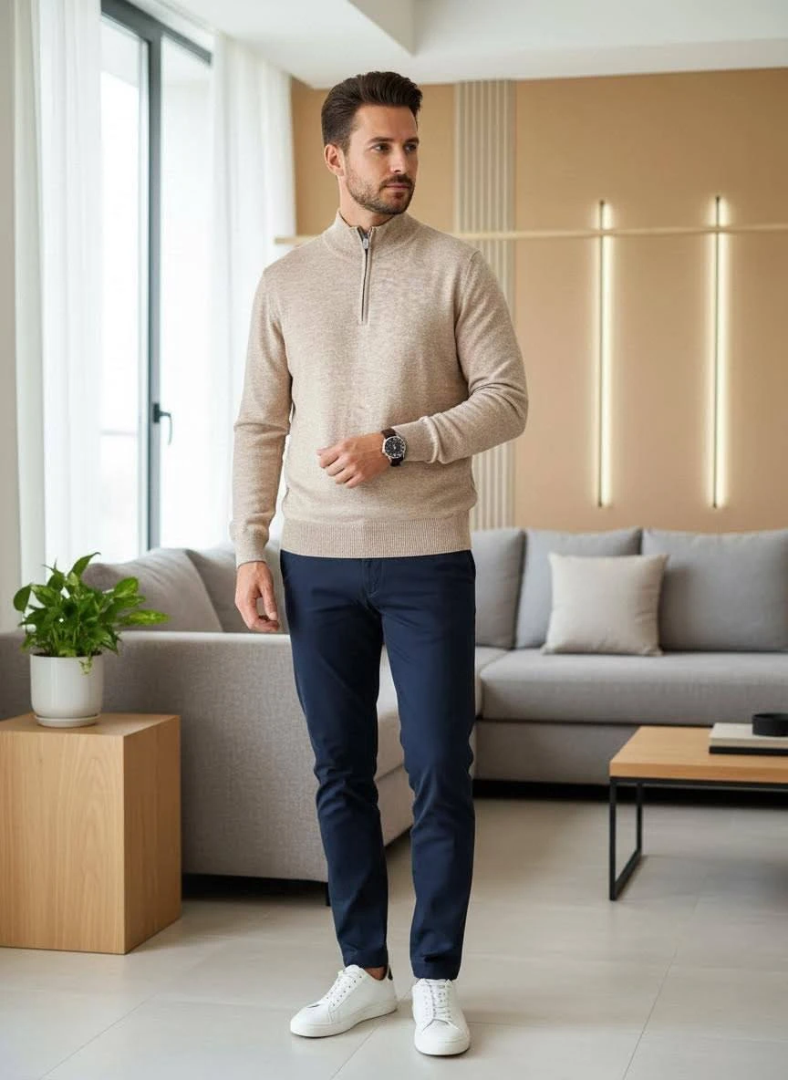 • Модель: легкий джемпер с воротником-стойкой на короткой молнии (half-zip).