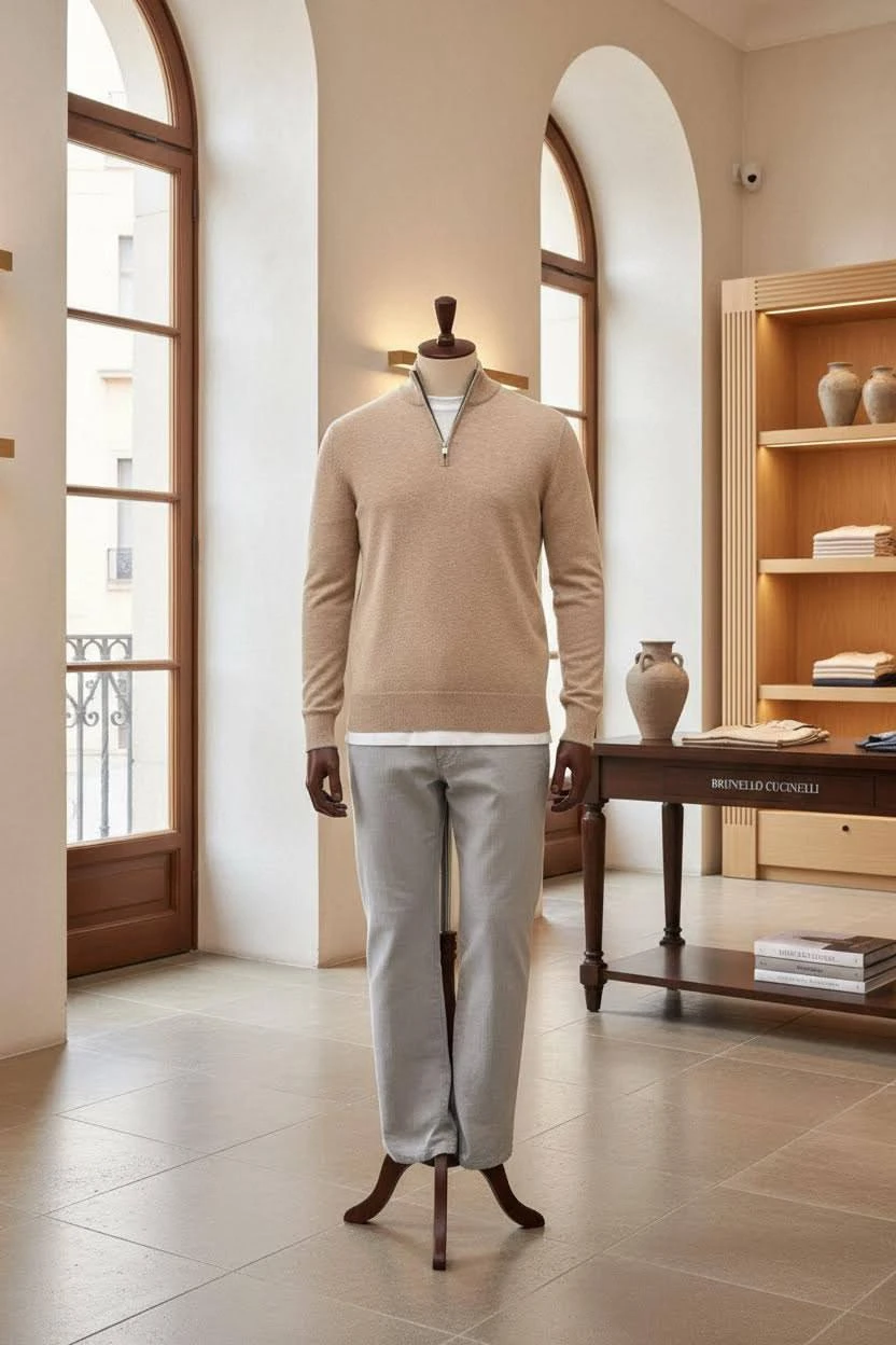 Мужской джемпер из кашемира Brunello Cucinelli — сдержанная элегантность и исключительный комфорт, которые легко впишутся в базовый гардероб современного мужчины.