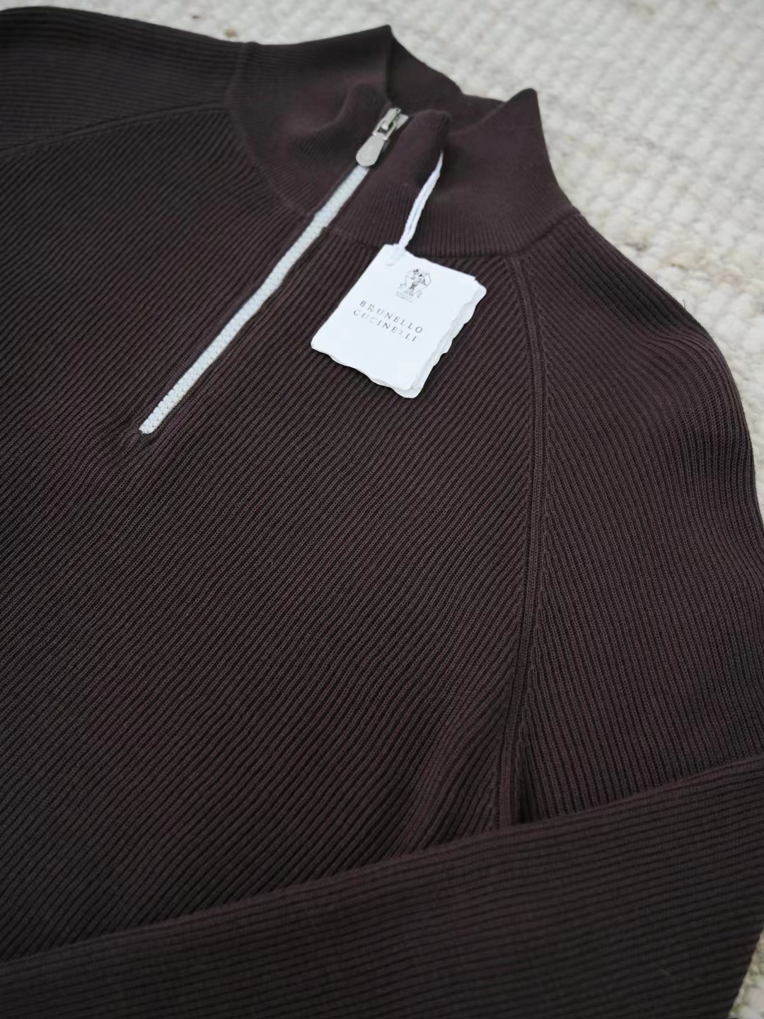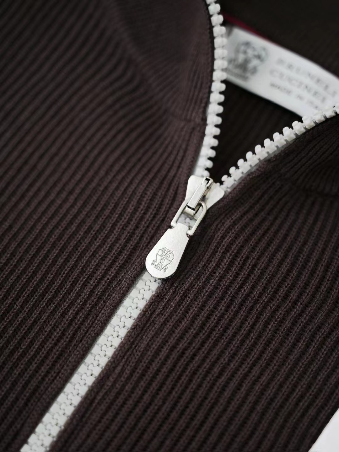 • Детали: тонкая контрастная отделка у края манжет и вдоль молнии подчёркивает минималистичную эстетику изделия; фирменная бирка BRUNELLO CUCINELLI на горловине.