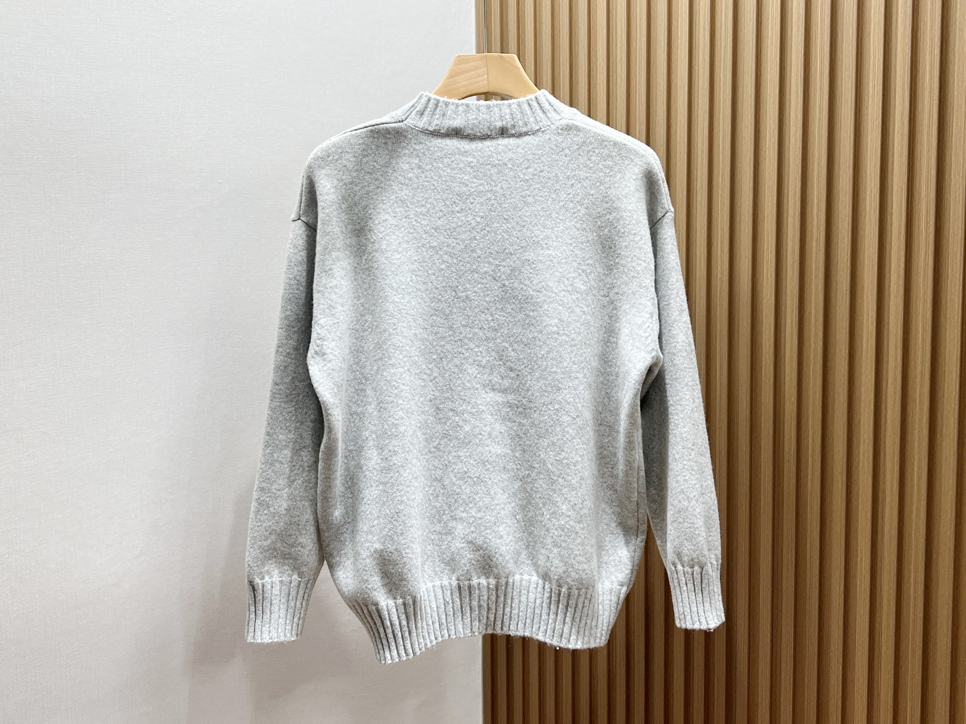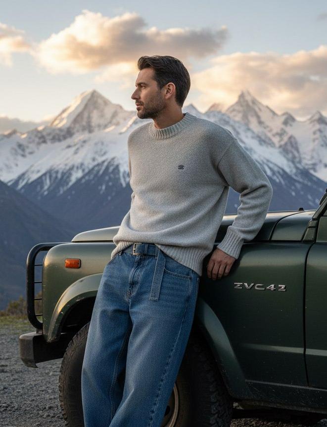 Мужской свитер CELINE из шерсти — лаконичная и универсальная модель, выполненная в чистой, минималистичной эстетике бренда. Структура изделия подчёркивает аккуратные пропорции и внимание к деталям: ровный круглый вырез с широкой ребристой планкой, удлинённые манжеты и широкий ребристый пояс, которые сохраняют форму и придают изделию завершённый вид. Текстура средней плотности с едва заметной ворсинкой обеспечивает приятное тактильное ощущение и хорошую теплоизоляцию при умеренном весе.