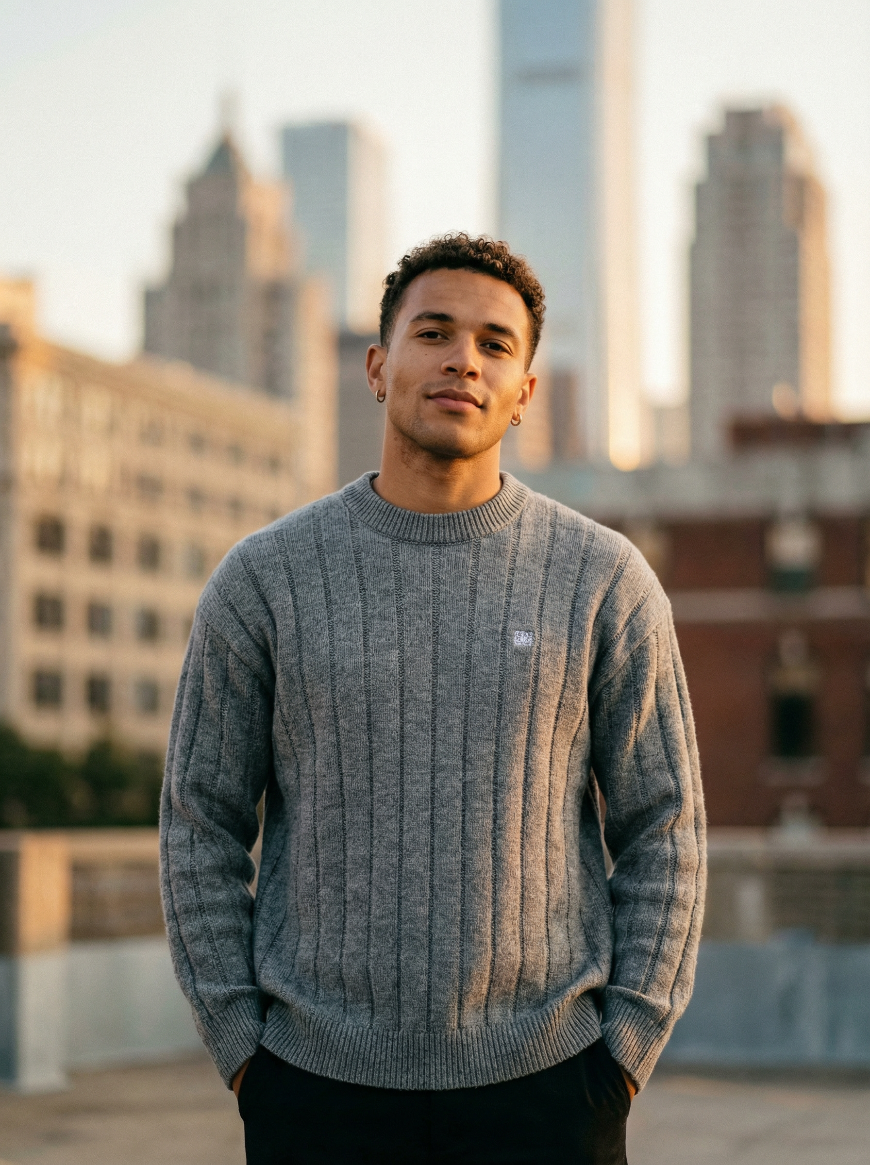Свитер имеет слегка свободную посадку. Для более приталенного силуэта рекомендуем выбирать на размер меньше обычного; если предпочитаете оверсайз — ваш привычный размер или на размер больше.