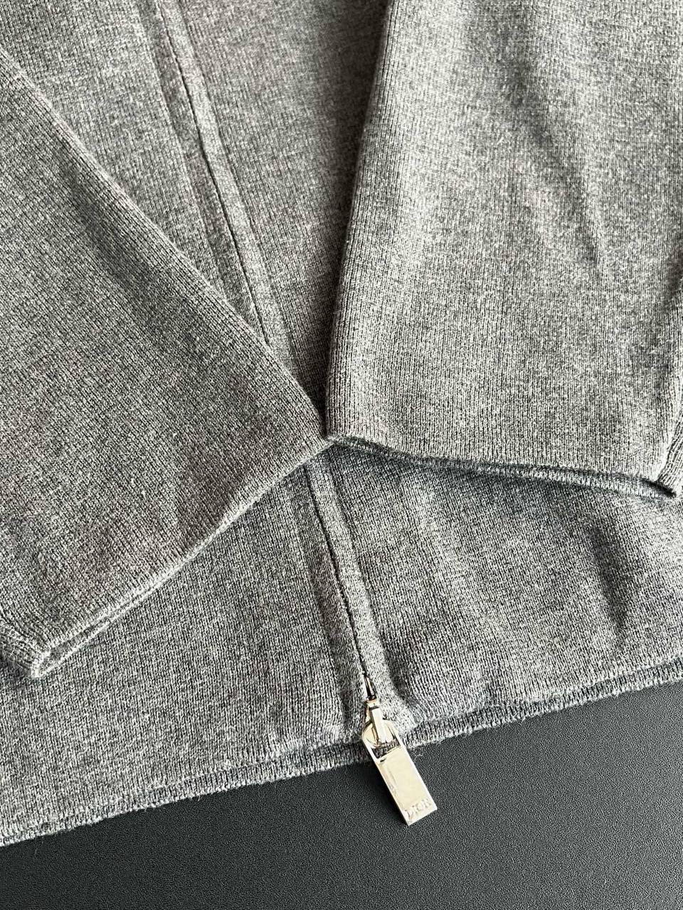 Christian Dior славится безупречным качеством, и этот свитер не стал исключением. Основной материал — премиум-кашемир высшего сорта, натуральный, с долей мериносовой шерсти для дополнительной эластичности и тепла. Ткань имеет плотность около, что обеспечивает легкость и превосходную теплоизоляцию без объема. Структура — гладкий трикотаж с ровными петлями; края обработаны для предотвращения растяжения.
