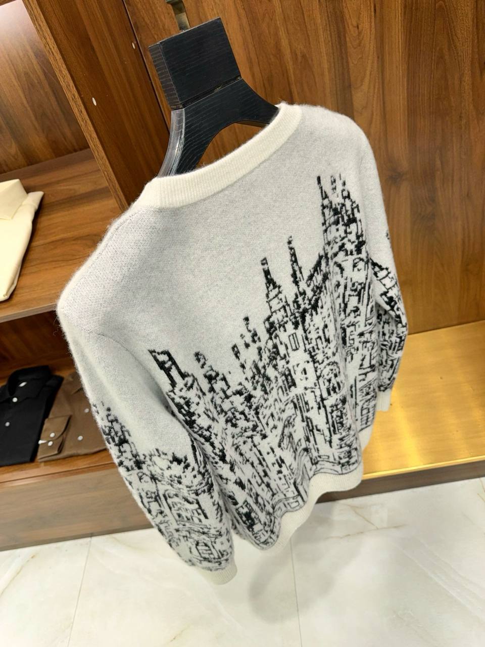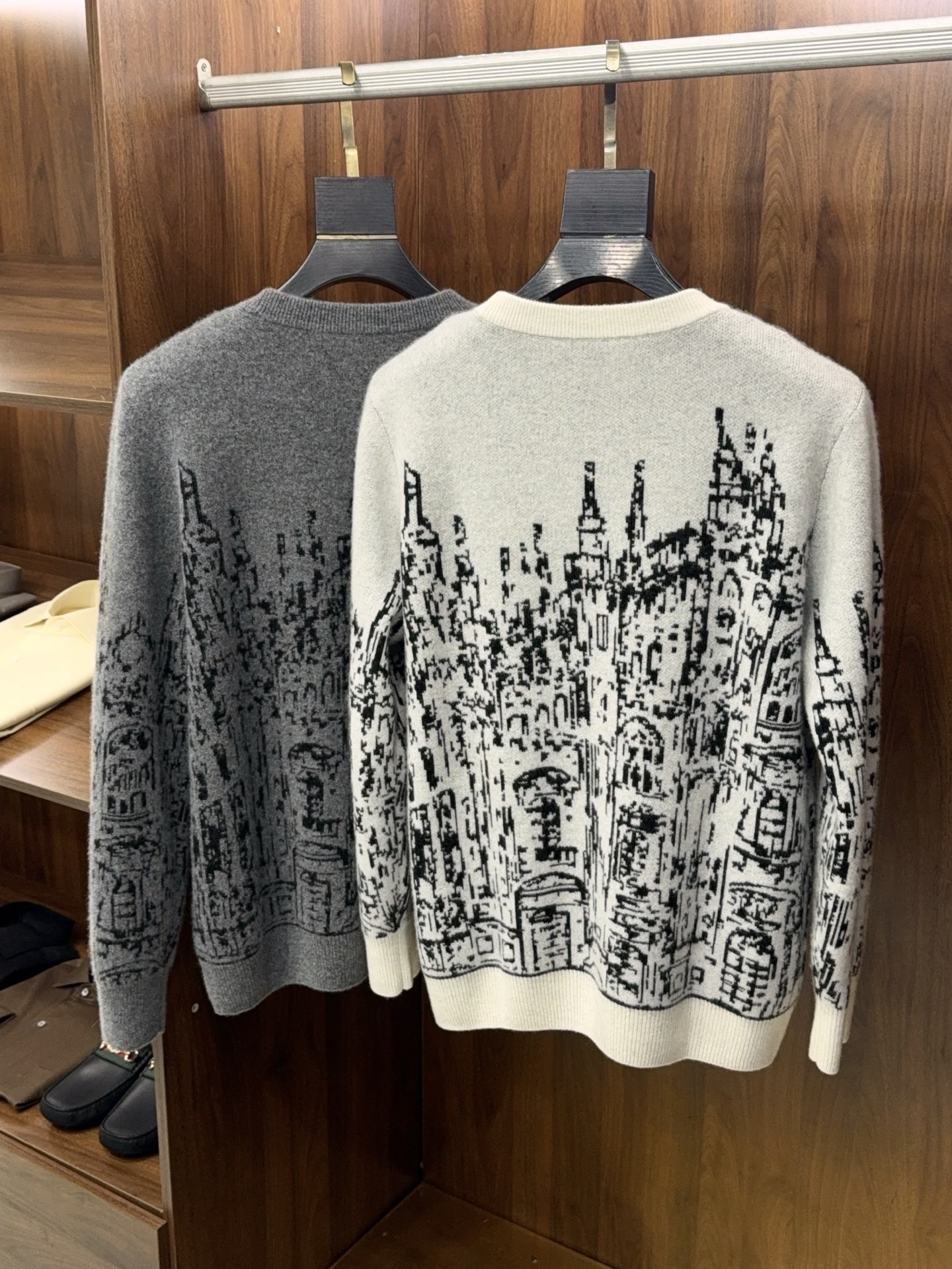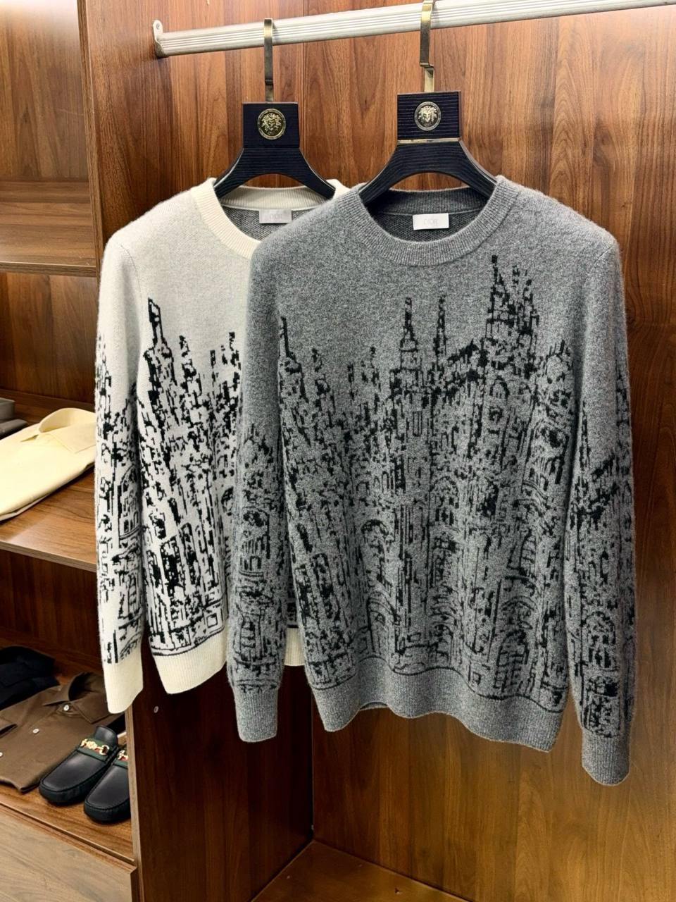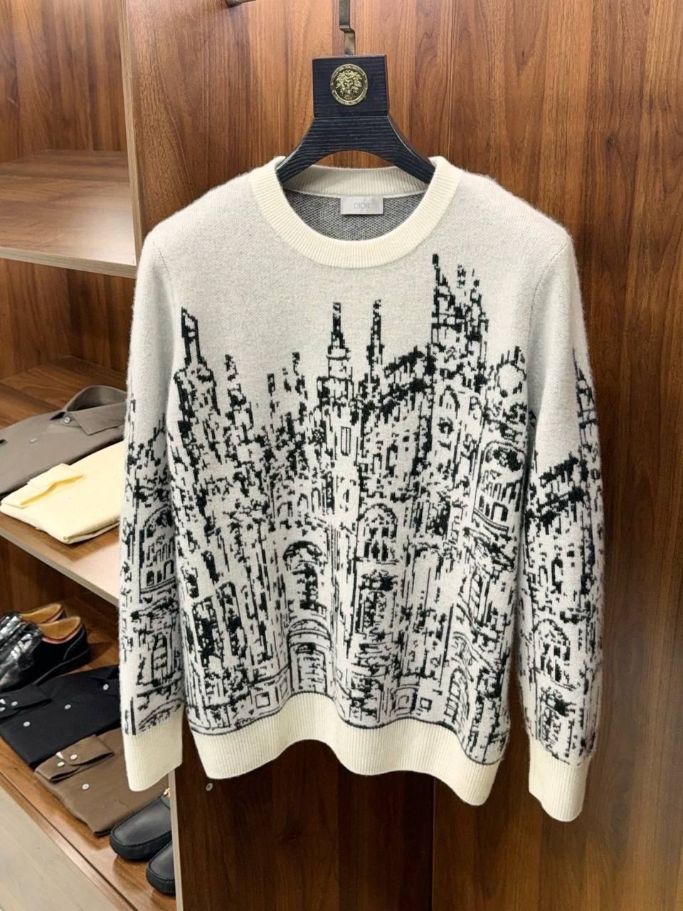 Мужской свитер CHRISTIAN DIOR — элегантная версия повседневной роскоши, выполненная в минималистической цветовой гамме с выразительным архитектурным узором.