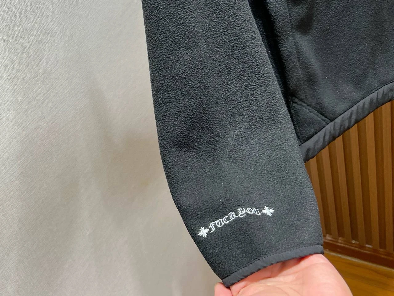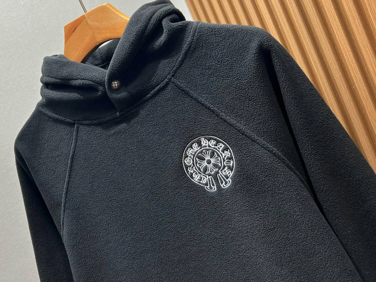 • Вышивка: На груди расположена фирменная вышивка с логотипом CHROME HEARTS в контрастном белом цвете. Этот элемент подчеркивает уникальность и статус бренда, привлекая внимание к деталям.