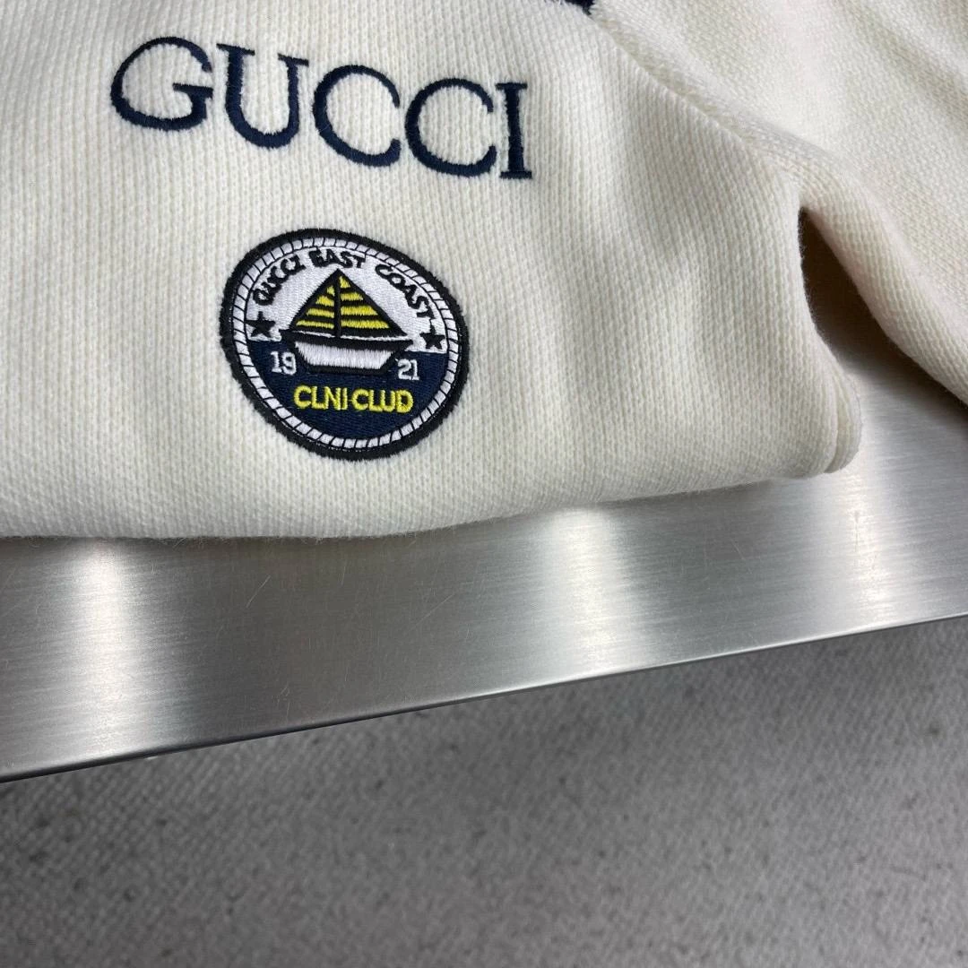 • Декор: вышитый логотип GUCCI на левой стороне груди и круглая нашивная эмблема с контрастным дизайном, придающая модели фирменный характер.