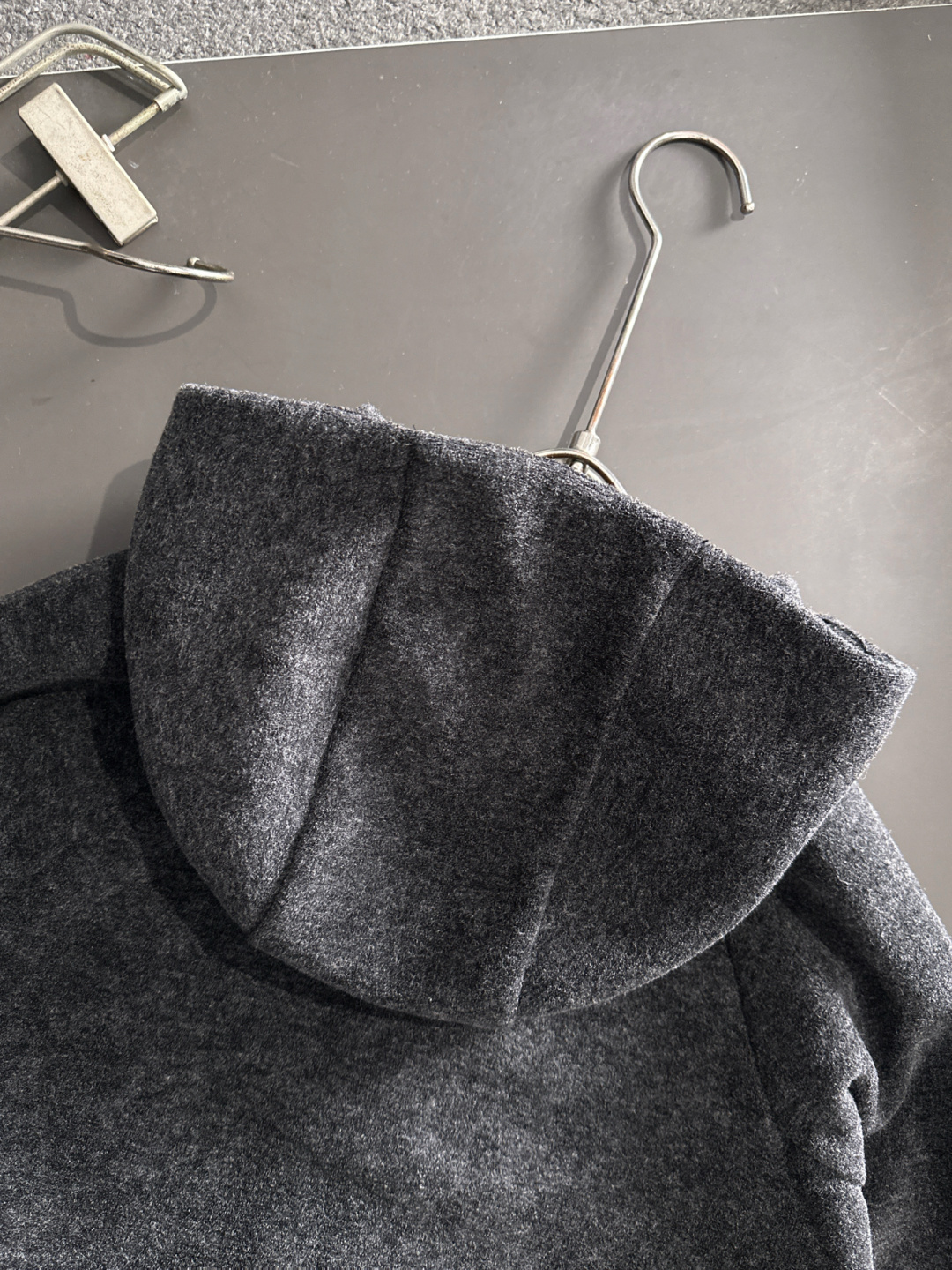 • Фасон: полупуловер с капюшоном и центральной короткой молнией, свободная, слегка боксовая посадка.