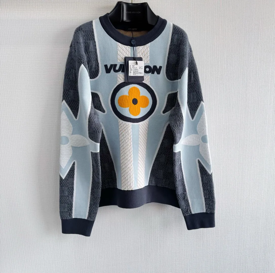 Лыжный жаккардовый свитер LV — это стильная и функциональная вещь, идеально подходящая для зимних видов спорта и активного образа жизни. Изготовлен из высококачественных материалов, и украшены характерными узорами, которые могут напоминать лыжные мотивы, снежинки или геометрические фигуры.