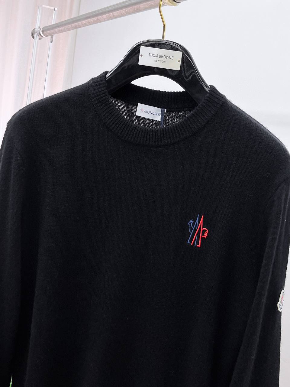 • Декор: малая эмблема/вышивка в красно‑синей гамме на груди и фирменная нашивка Moncler на левом рукаве — ненавязчивый фирменный акцент.