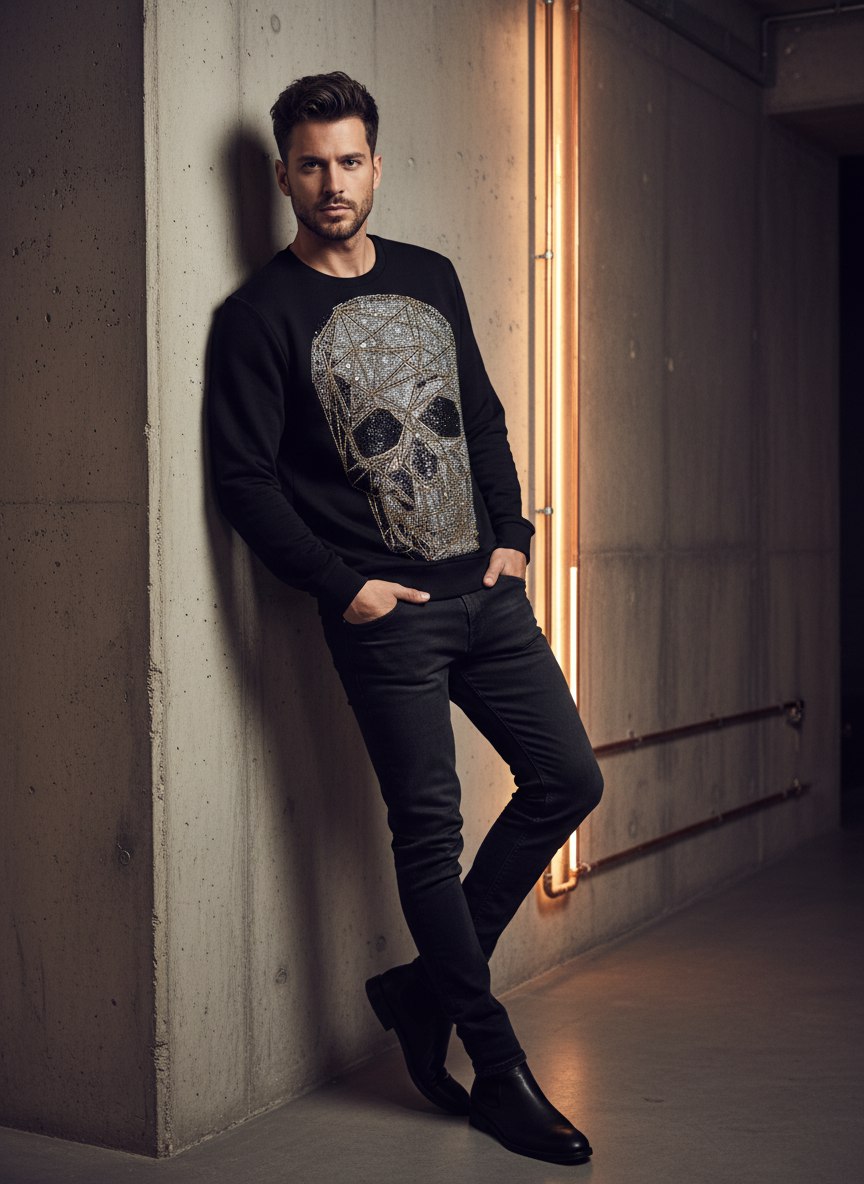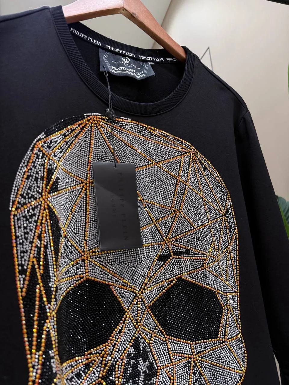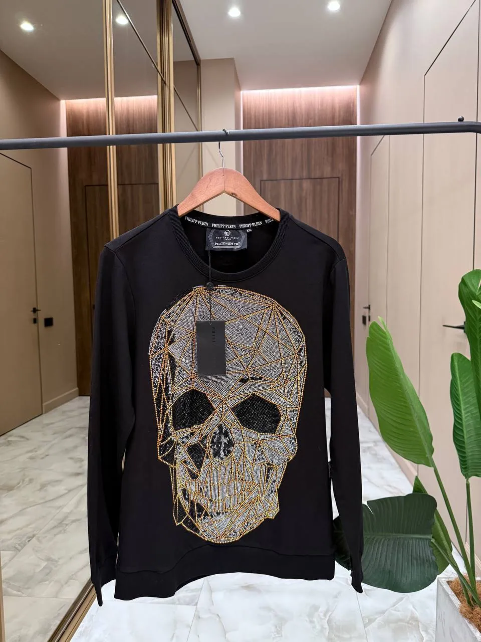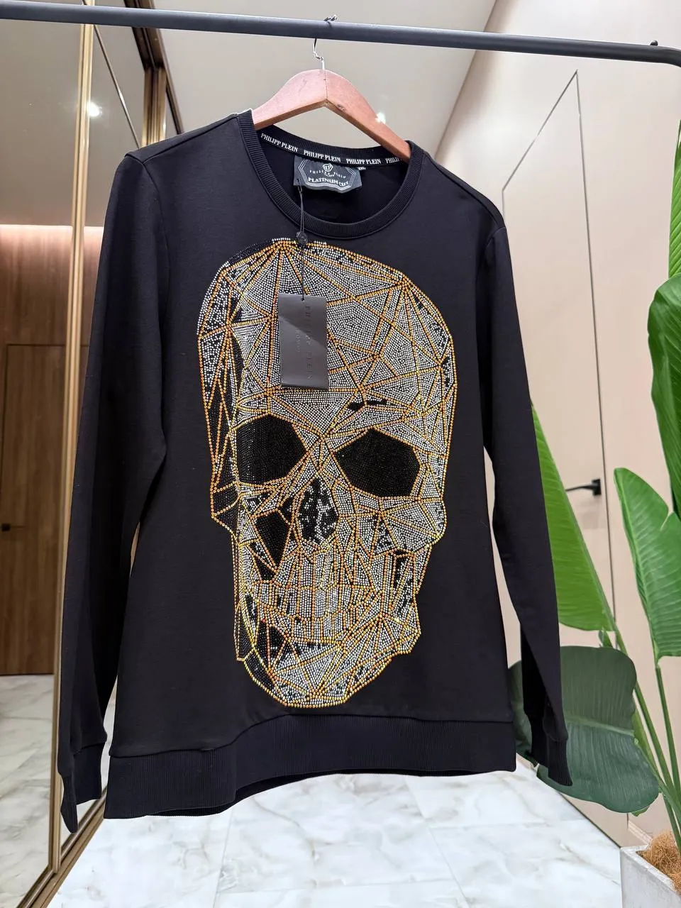 Этот мужской свитшот от PHILIPP PLEIN — эффектное сочетание дерзкого дизайна и комфорта. Главной особенностью свитшота выступает его крупная аппликация из страз в виде черепа. Эта особенность придает модели узнаваемость и брутальность. Свитшот имеет смелый и дерзкий дизайн, характерный для бренда PHILIPP PLEIN. Он отлично подходит для создания модных и запоминающихся образов и станет ярким акцентом в вашем гардеробе, подчеркивая вашу индивидуальность.