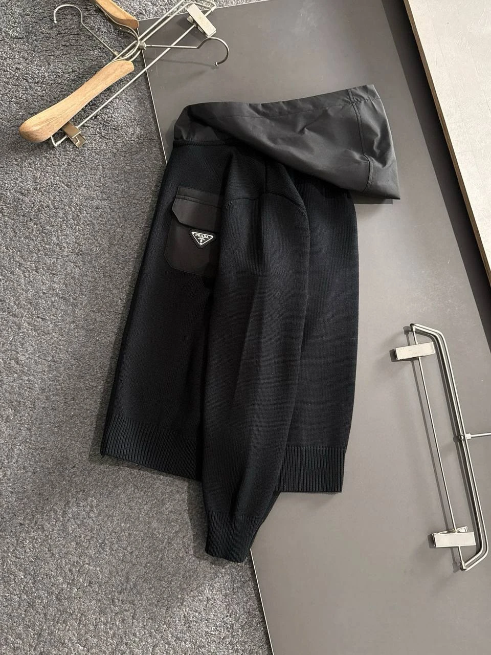 - Фирменный карман с логотипом Prada — подчёркивает статус и узнаваемость бренда