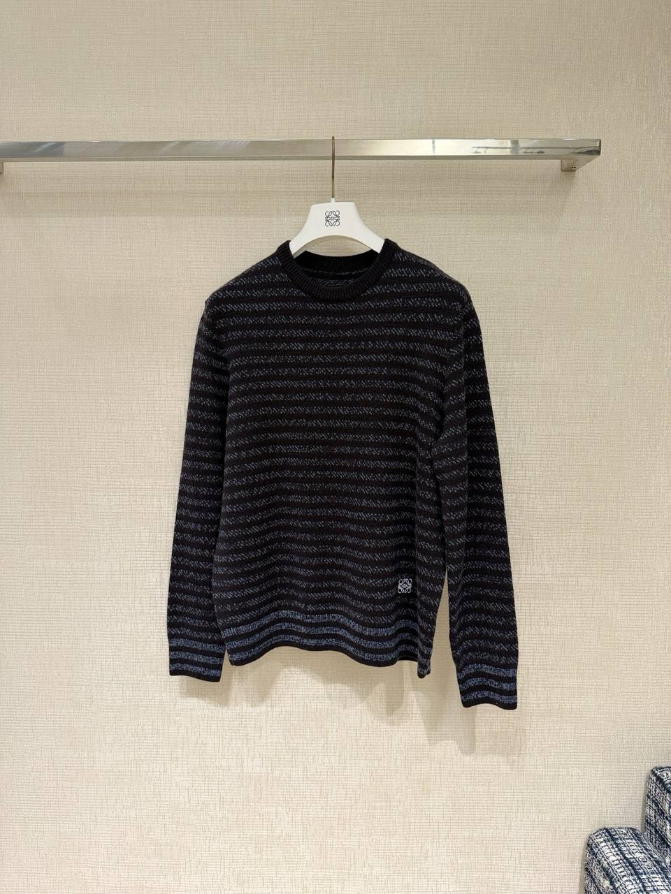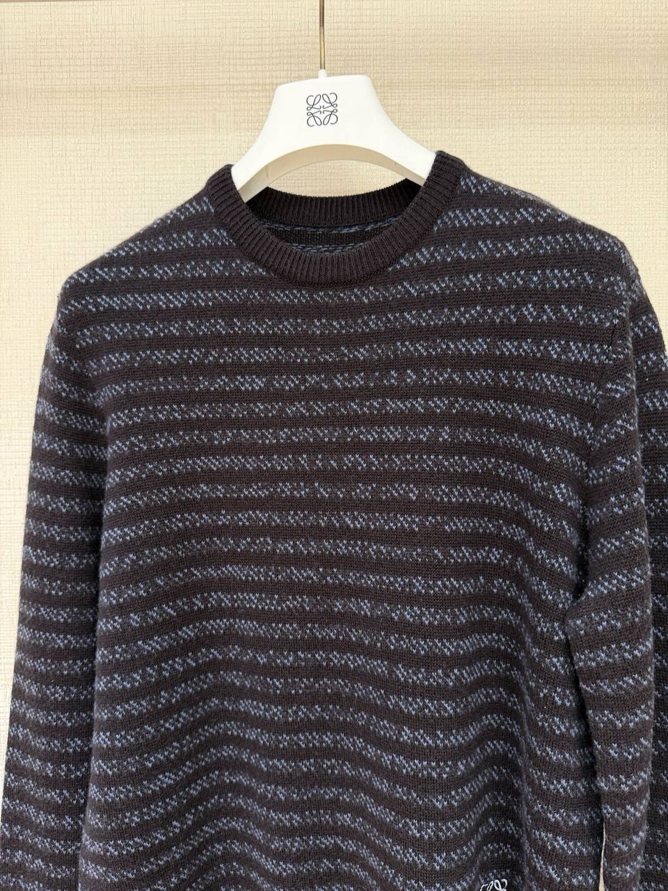 Элегантный женский свитер LOEWE, выполненный из мягкого премиального кашемира. Сдержанная палитра глубокого темно‑меланжа и тонких горизонтальных полос придаёт изделию современную лаконичность, а аккуратные детали отделки подчёркивают люксовую посадку и универсальность в образах.
