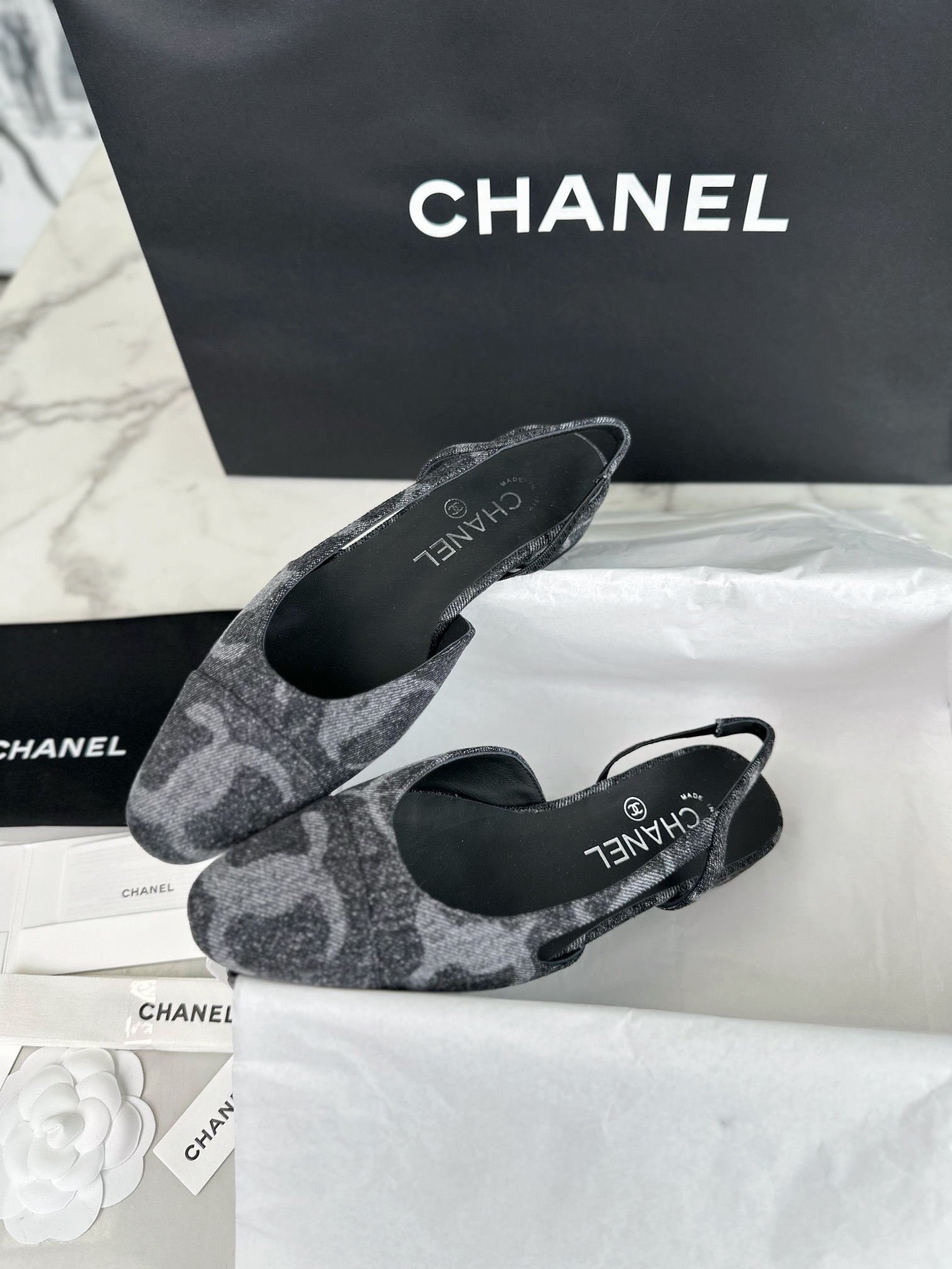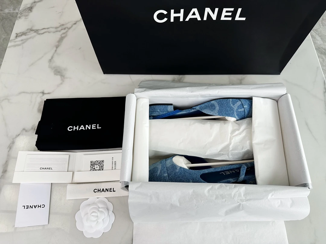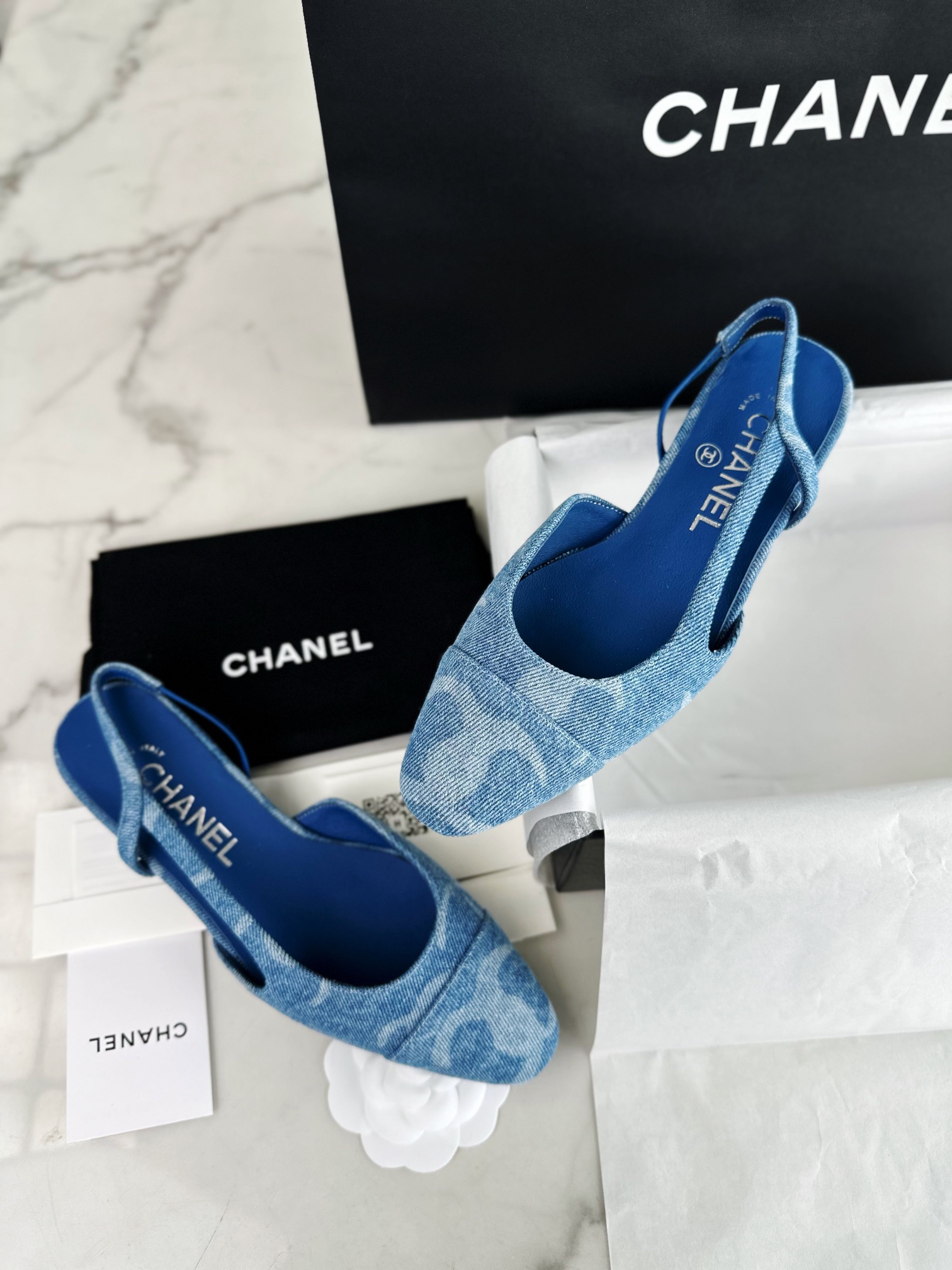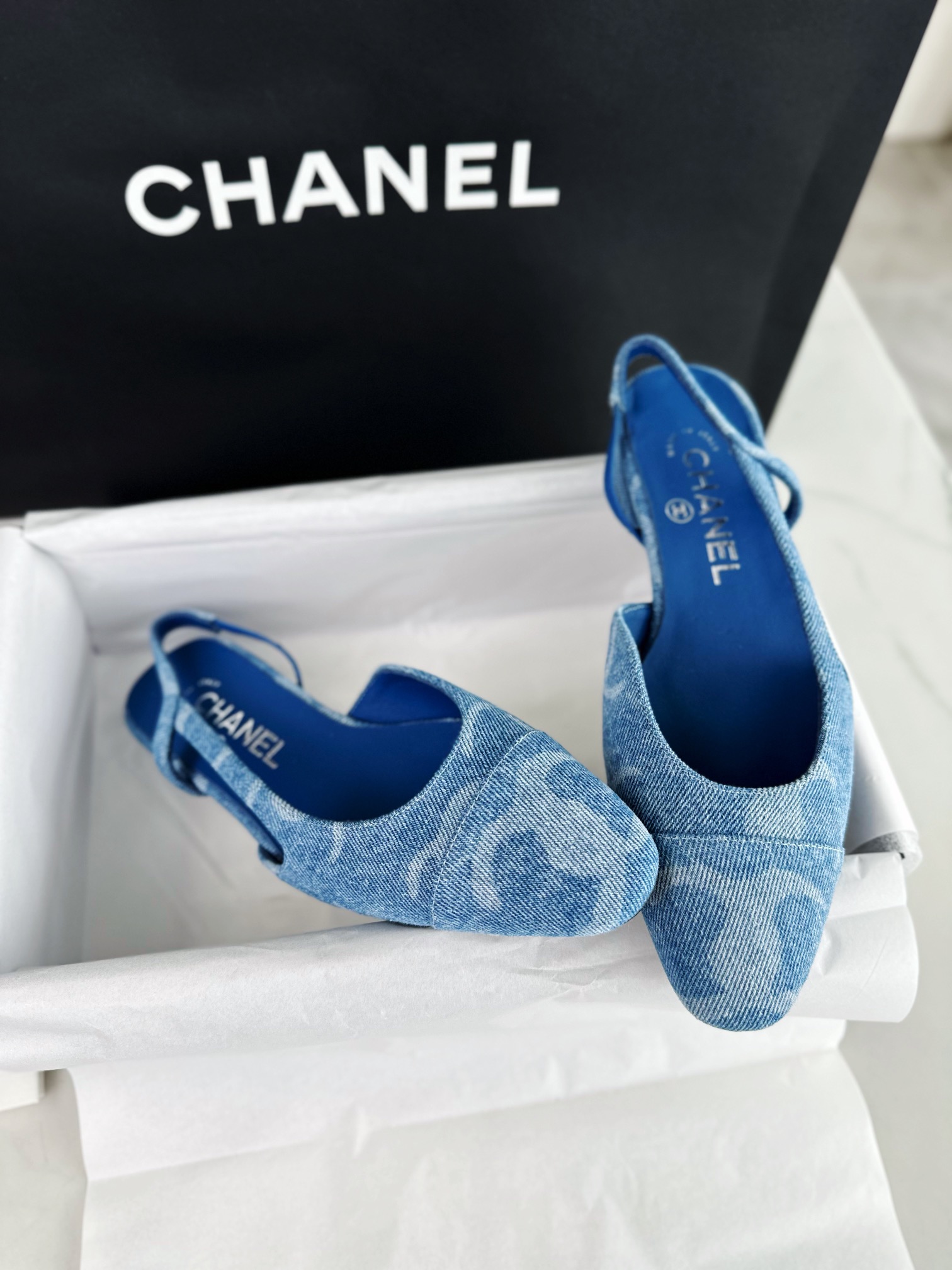 Классический дизайн в стиле Chanel: деним, фирменный мыс и элегантный ремешок на пятке делают эти туфли идеальным выбором для деловых встреч, светских мероприятий и ежедневных образов. Устойчивый каблук плоский или средней высоты обеспечивает удобство при длительном ношении.