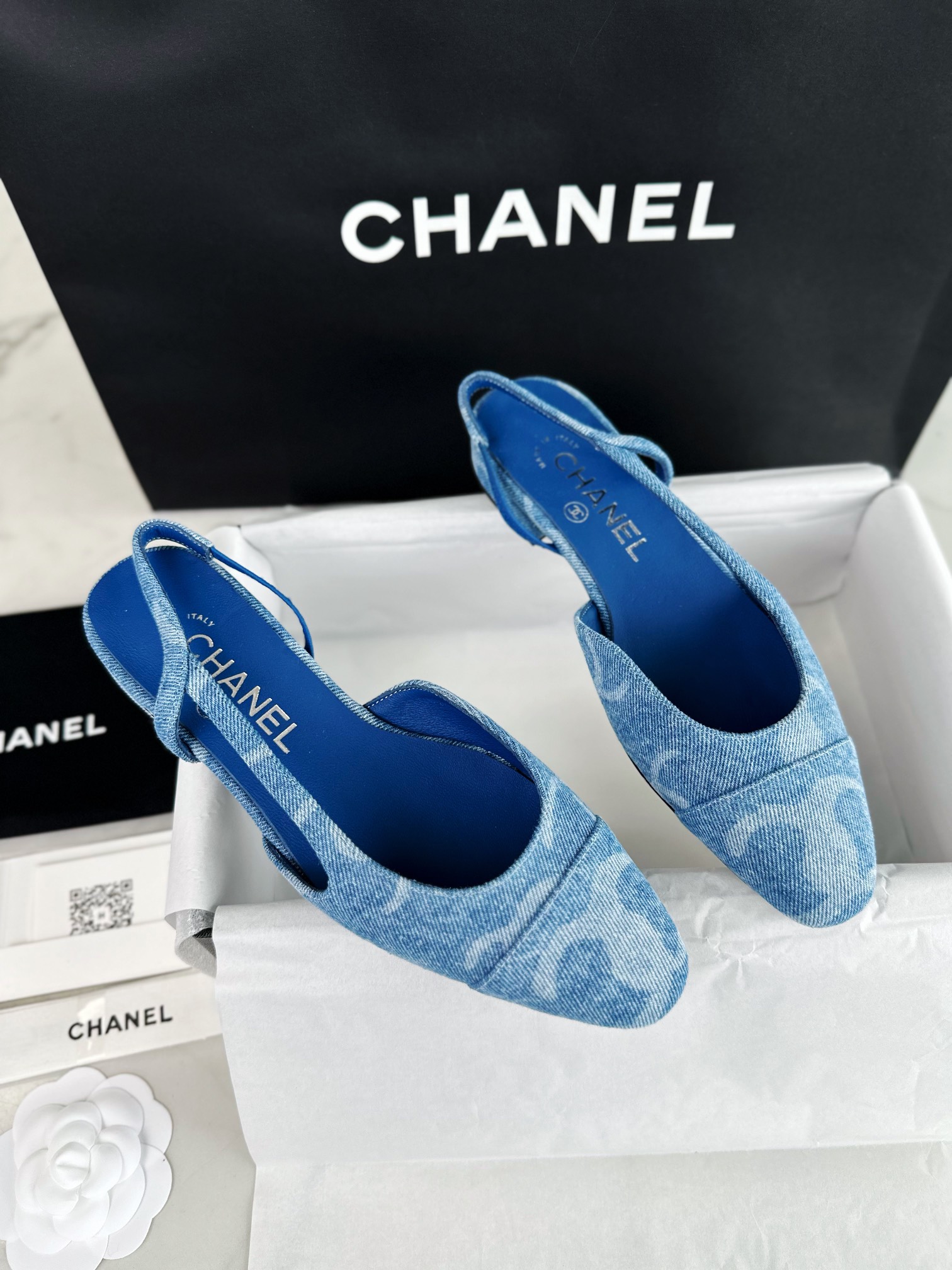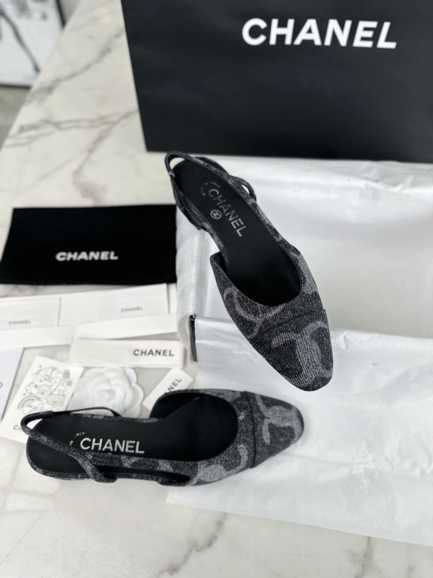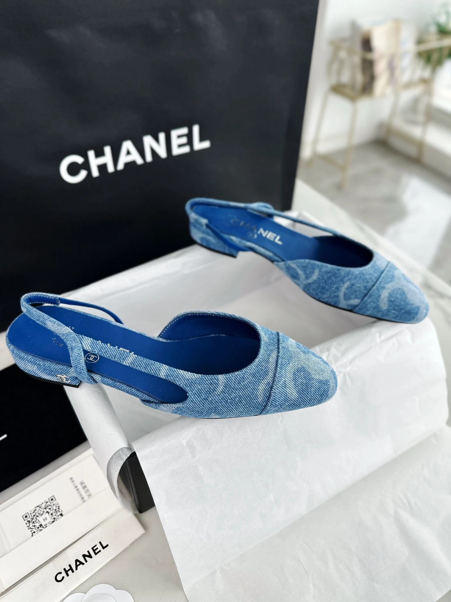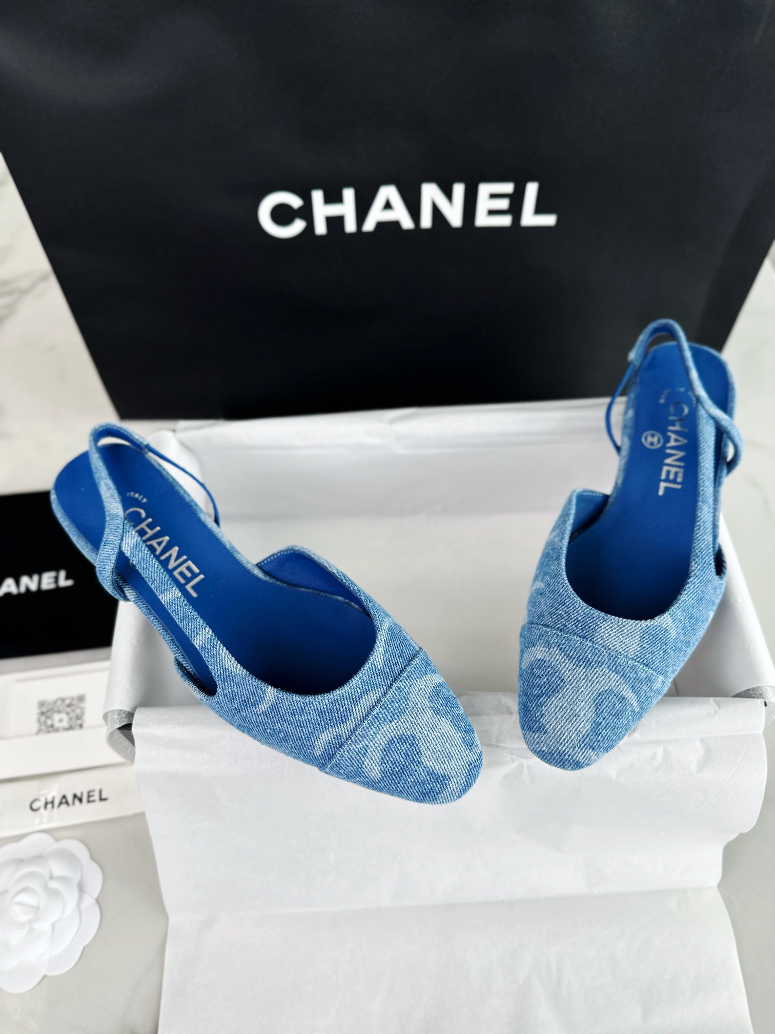 Классический дизайн в стиле Chanel: деним, фирменный мыс и элегантный ремешок на пятке делают эти туфли идеальным выбором для деловых встреч, светских мероприятий и ежедневных образов. Устойчивый каблук плоский или средней высоты обеспечивает удобство при длительном ношении.