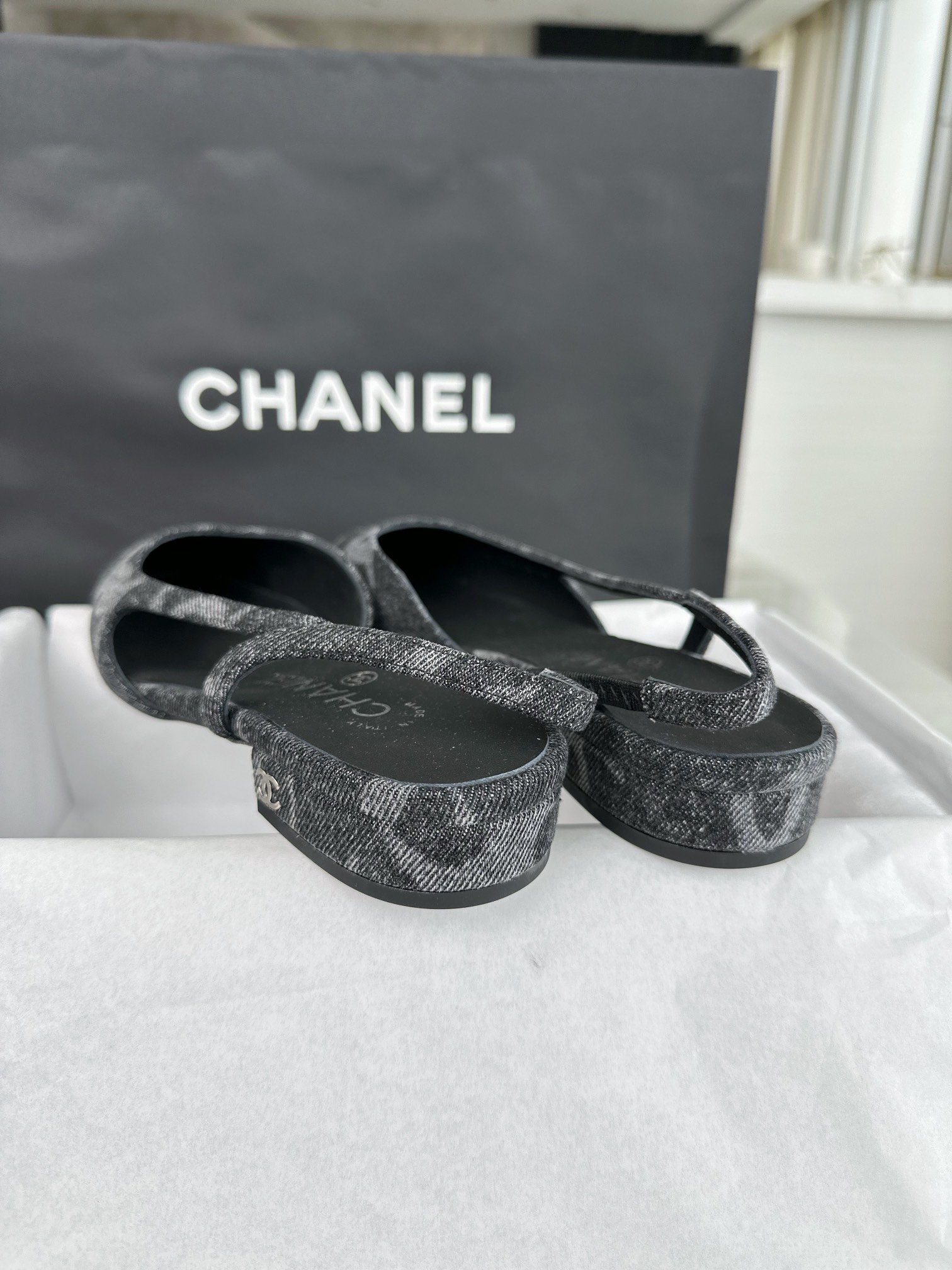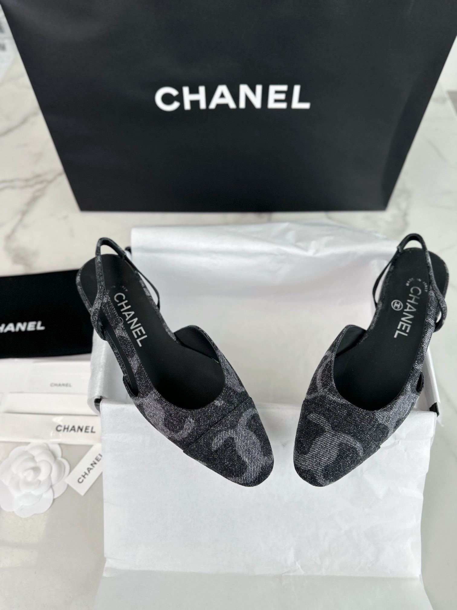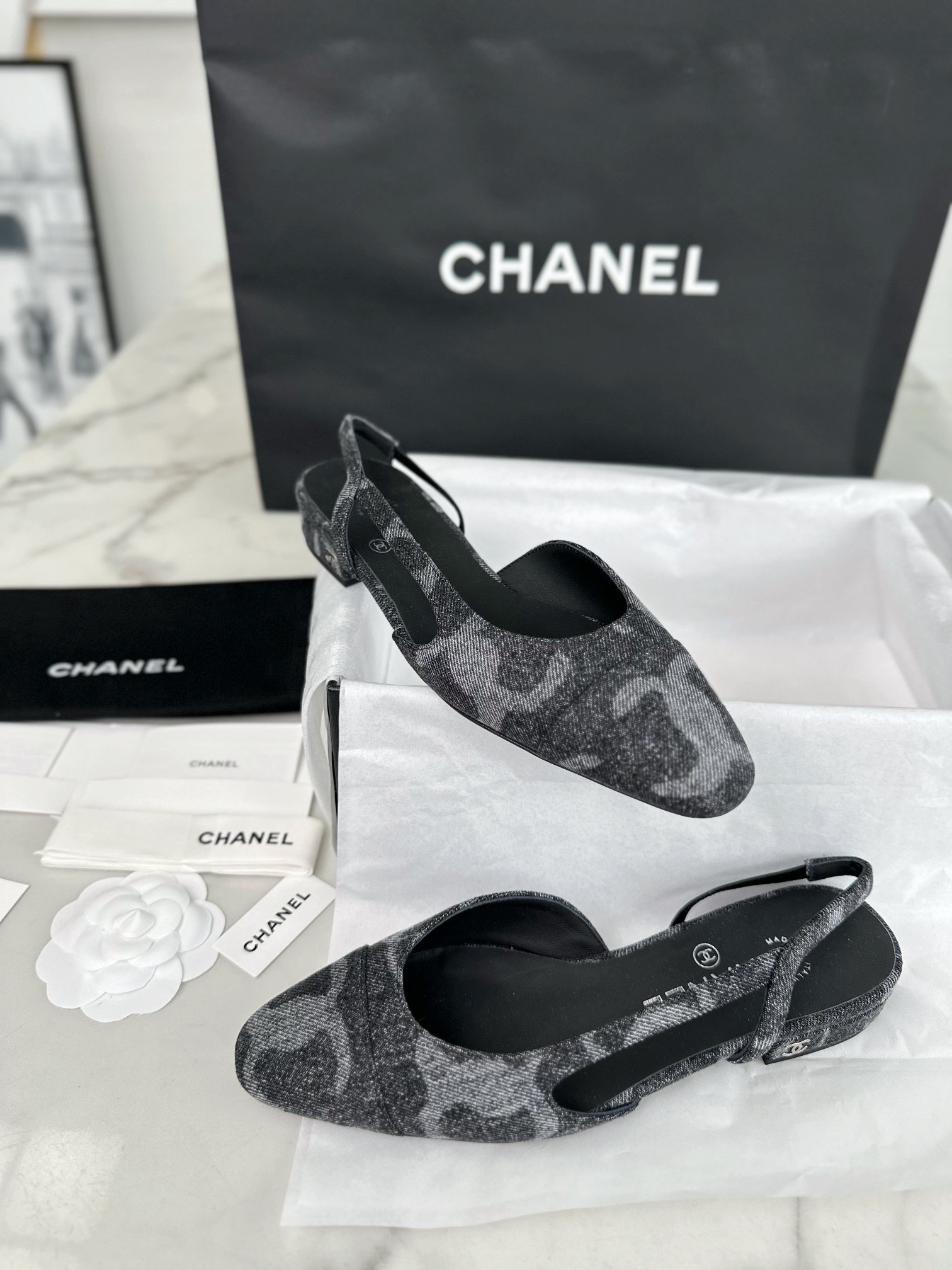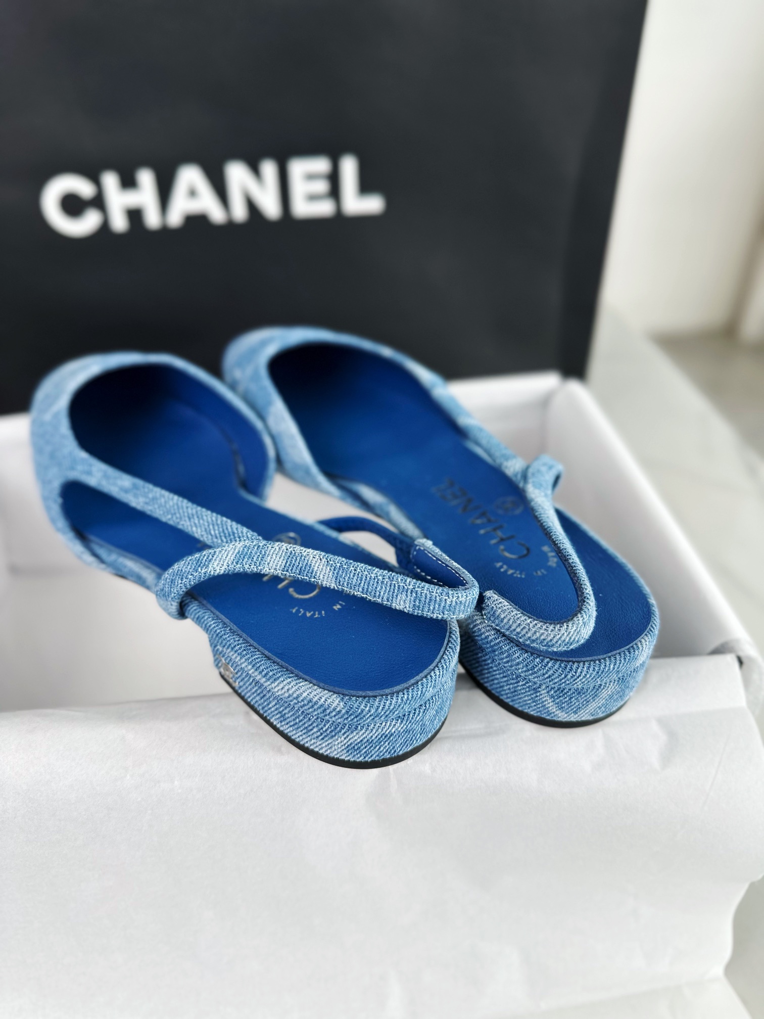 Классический дизайн в стиле Chanel: деним, фирменный мыс и элегантный ремешок на пятке делают эти туфли идеальным выбором для деловых встреч, светских мероприятий и ежедневных образов. Устойчивый каблук плоский или средней высоты обеспечивает удобство при длительном ношении.