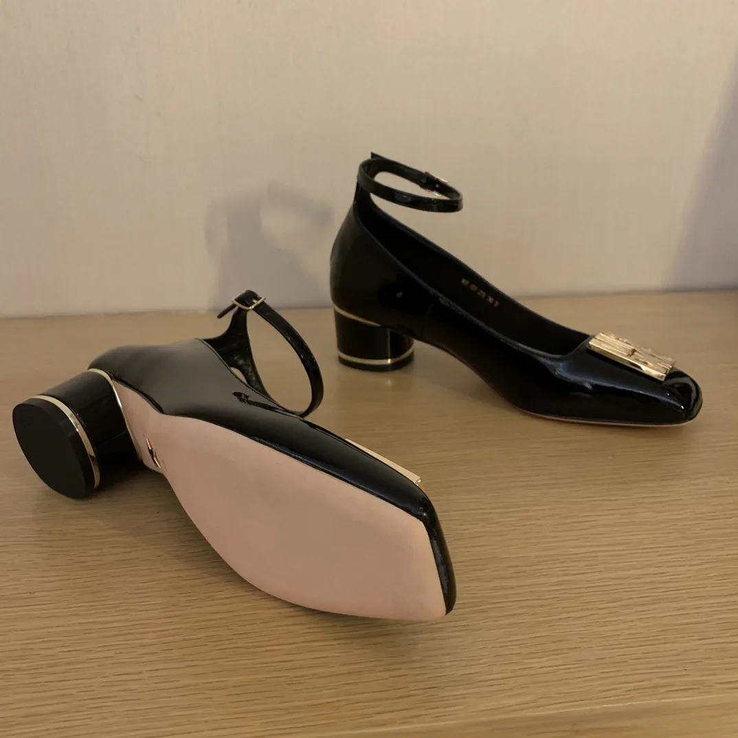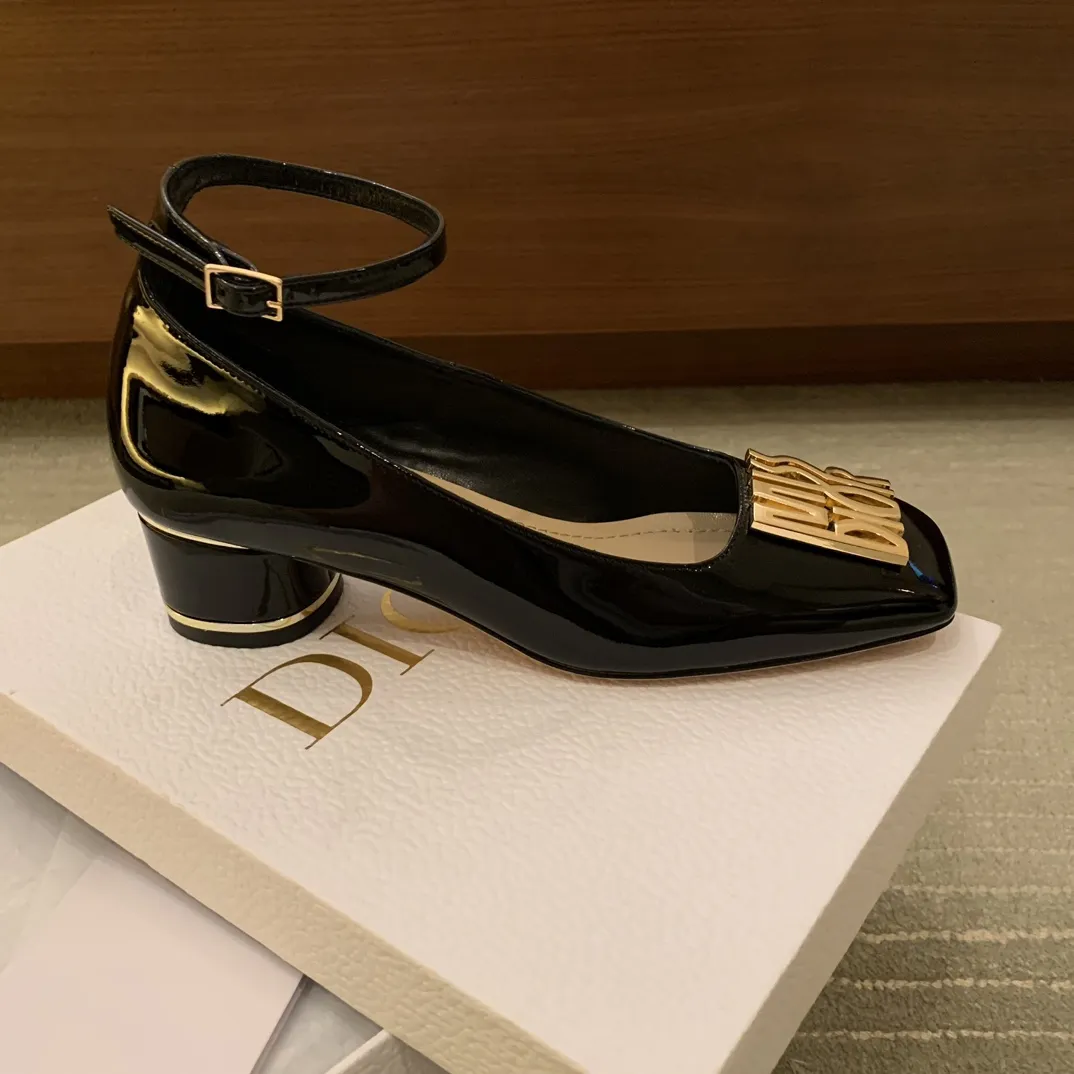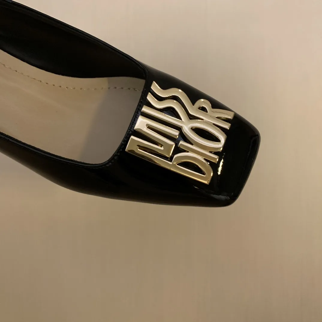 Новые туфли на высоком каблуке Miss Dior, представленные на показе осенне-зимней коллекции Dior 2024 – это воплощение ретро-стиля. Верх из черной лакированной кожи украшен классическим золотым логотипом Miss Dior, а дизайн передней части вдохновлен работами Марка Бохана. Высота каблука 4 см.