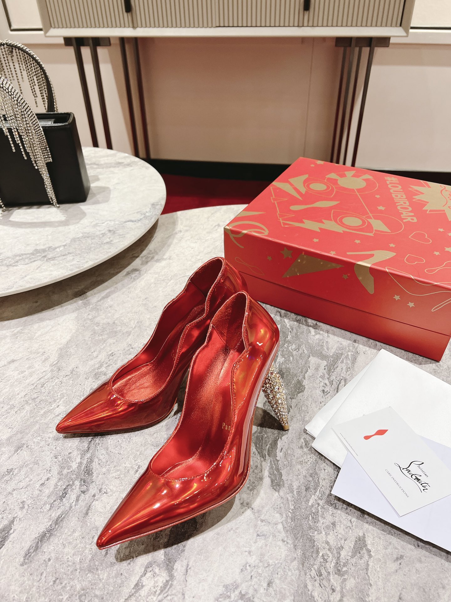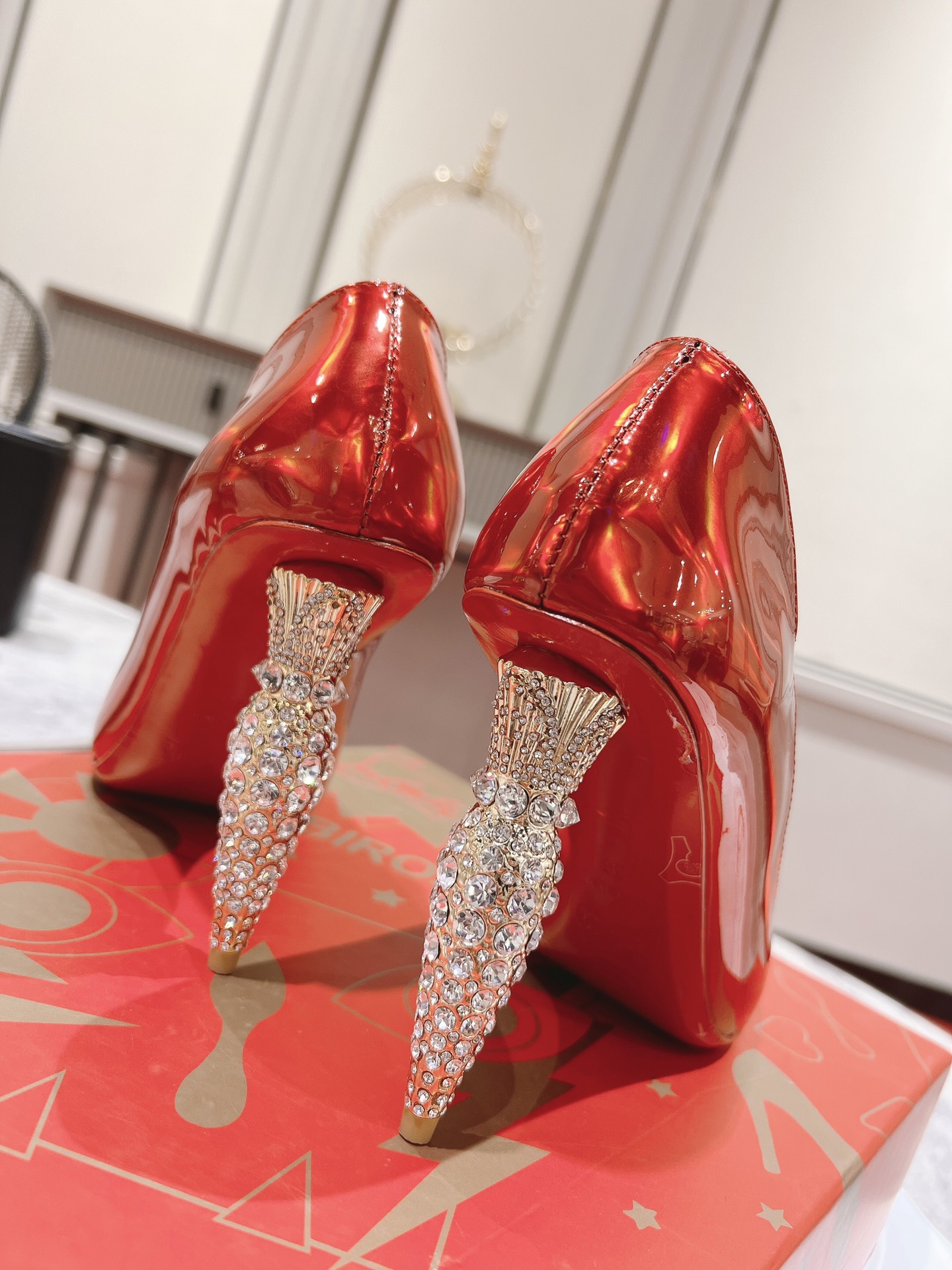 Туфли CL Queen's Scepter – это воплощение роскоши и изысканности. Уникальный каблук высотой 10 см выполнен из золота и украшен вручную австрийскими стразами, создавая впечатление драгоценного бриллианта. Инновационное исполнение каблука, напоминающее фирменную красную помаду Maison Christian Louboutin, вдохновлено элегантностью египетских колонн. Эти туфли – не просто обувь, а произведение искусства, которое добавит блеска и уверенности в себе каждой обладательнице.