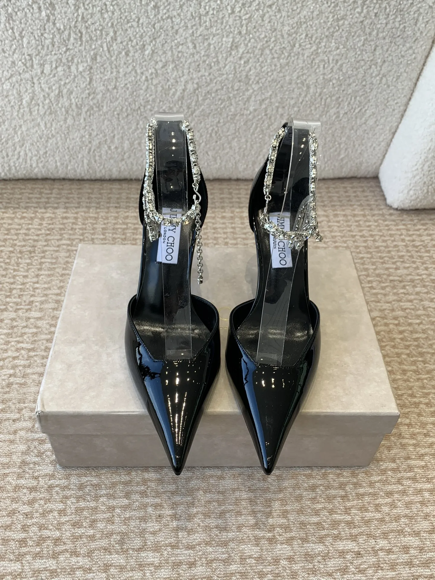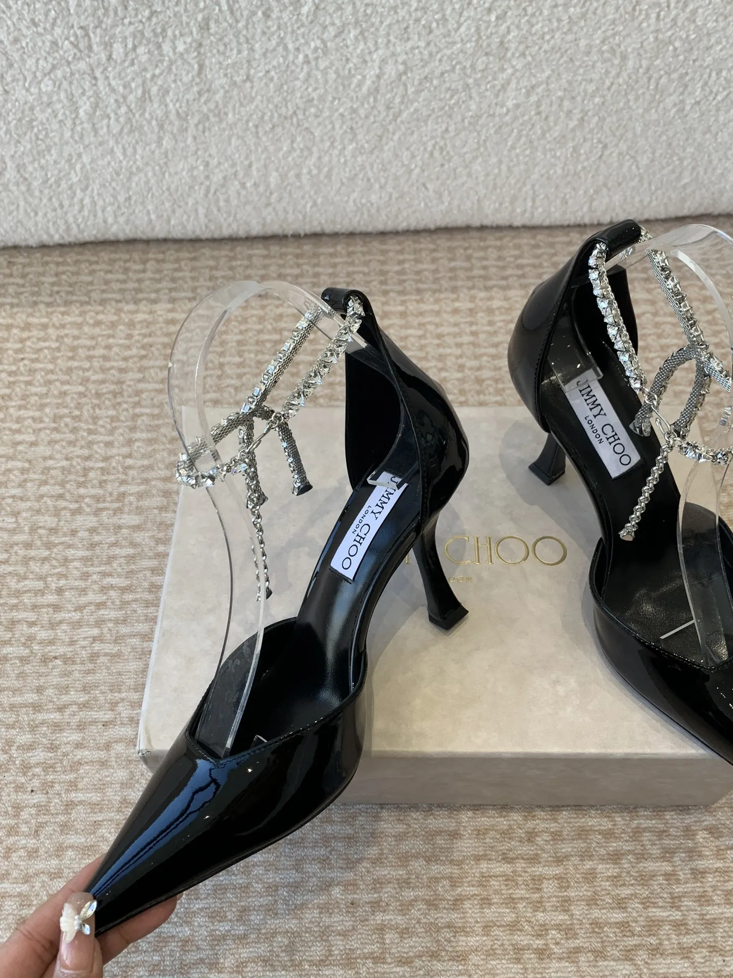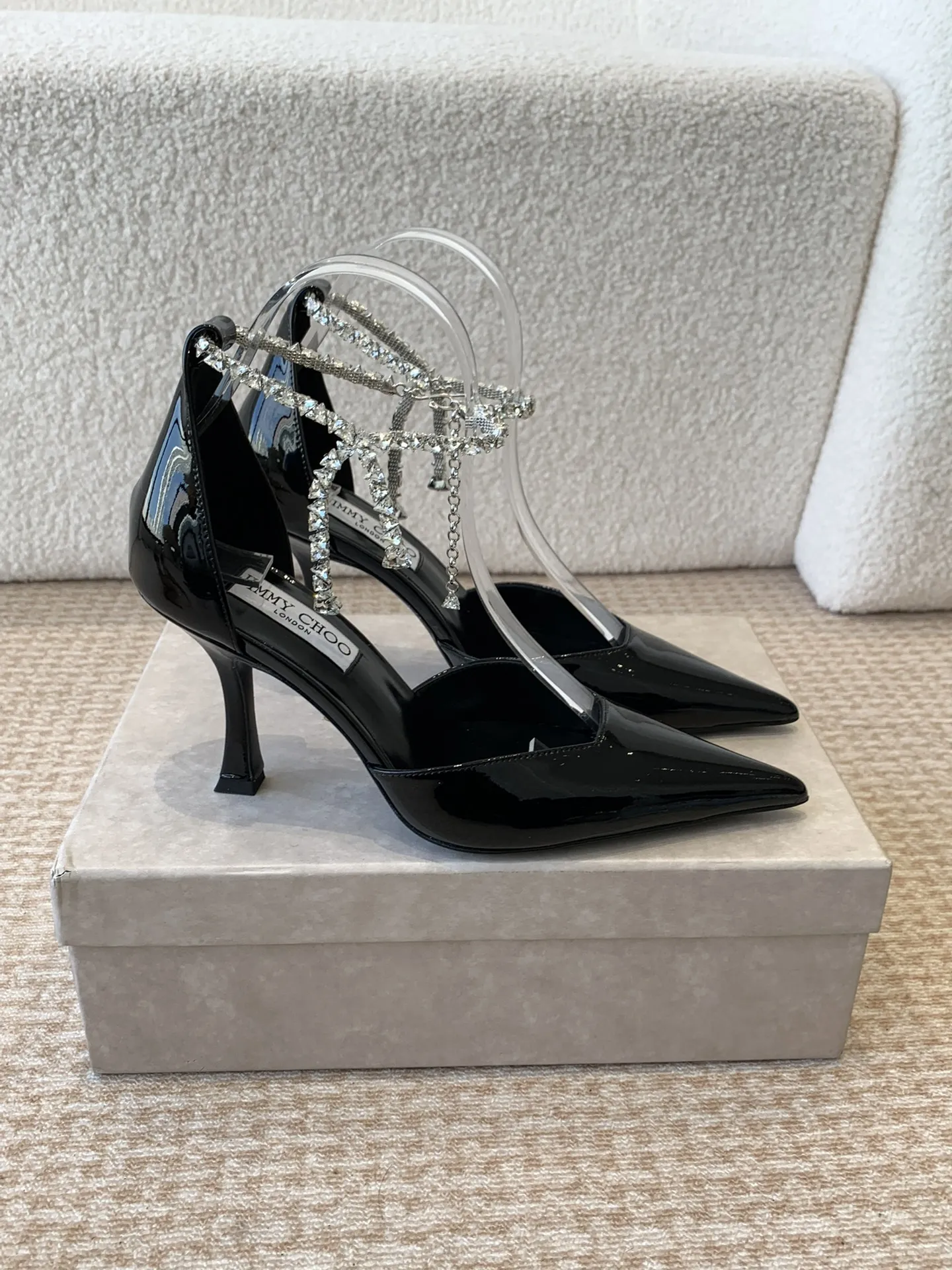 Jimmy Choo — это не просто бренд, а символ роскошного модного образа жизни. Стразы обладают уникальным шармом, который сочетает в себе элегантность и футуристические нотки. Это обувь, способная мгновенно преобразить любой наряд, добавляя ему изысканности и игривости. Пара этих туфель на высоком каблуке — 8,5 см — станет не только стильным аксессуаром, но и отличным выражением индивидуальности.