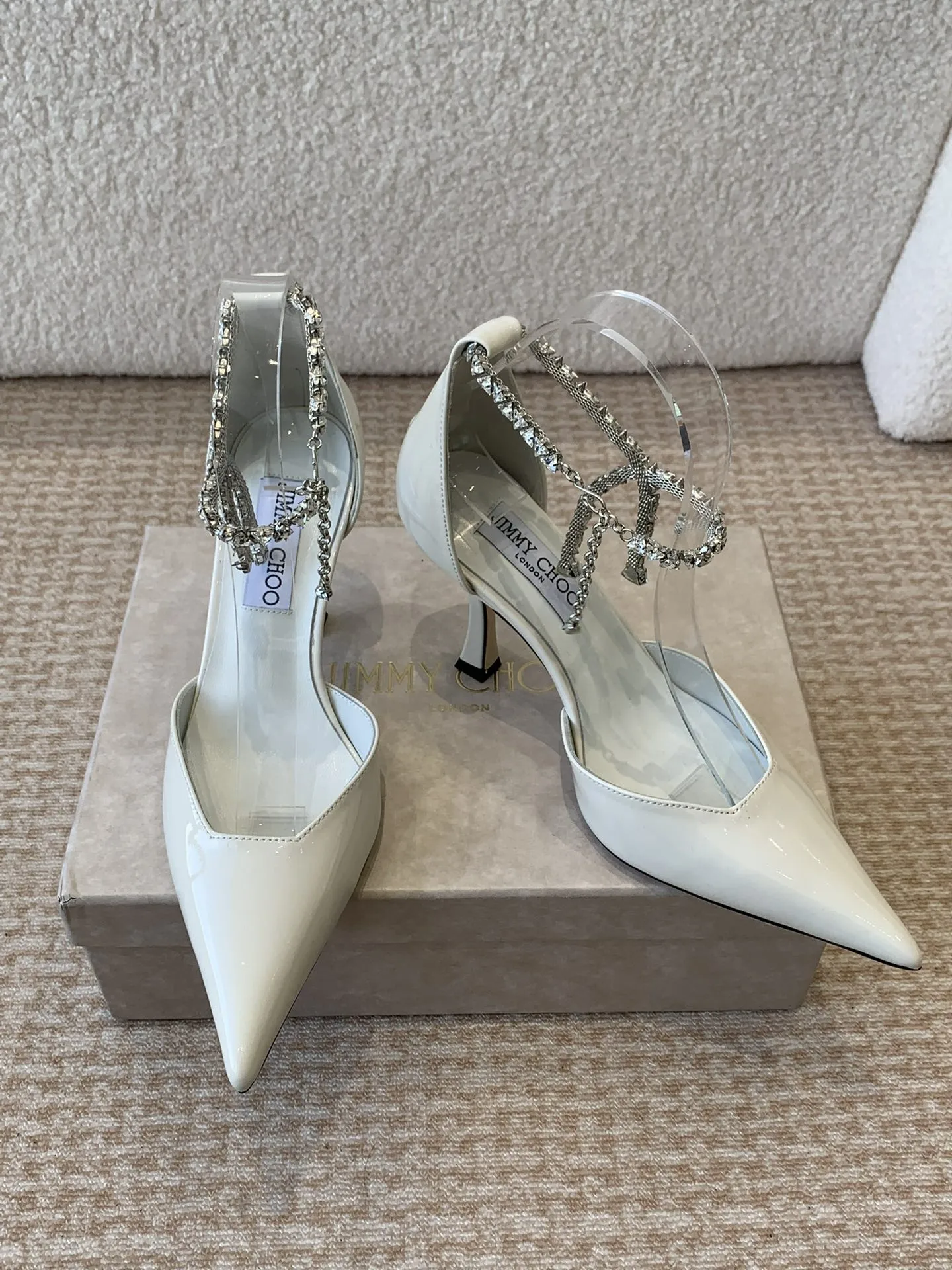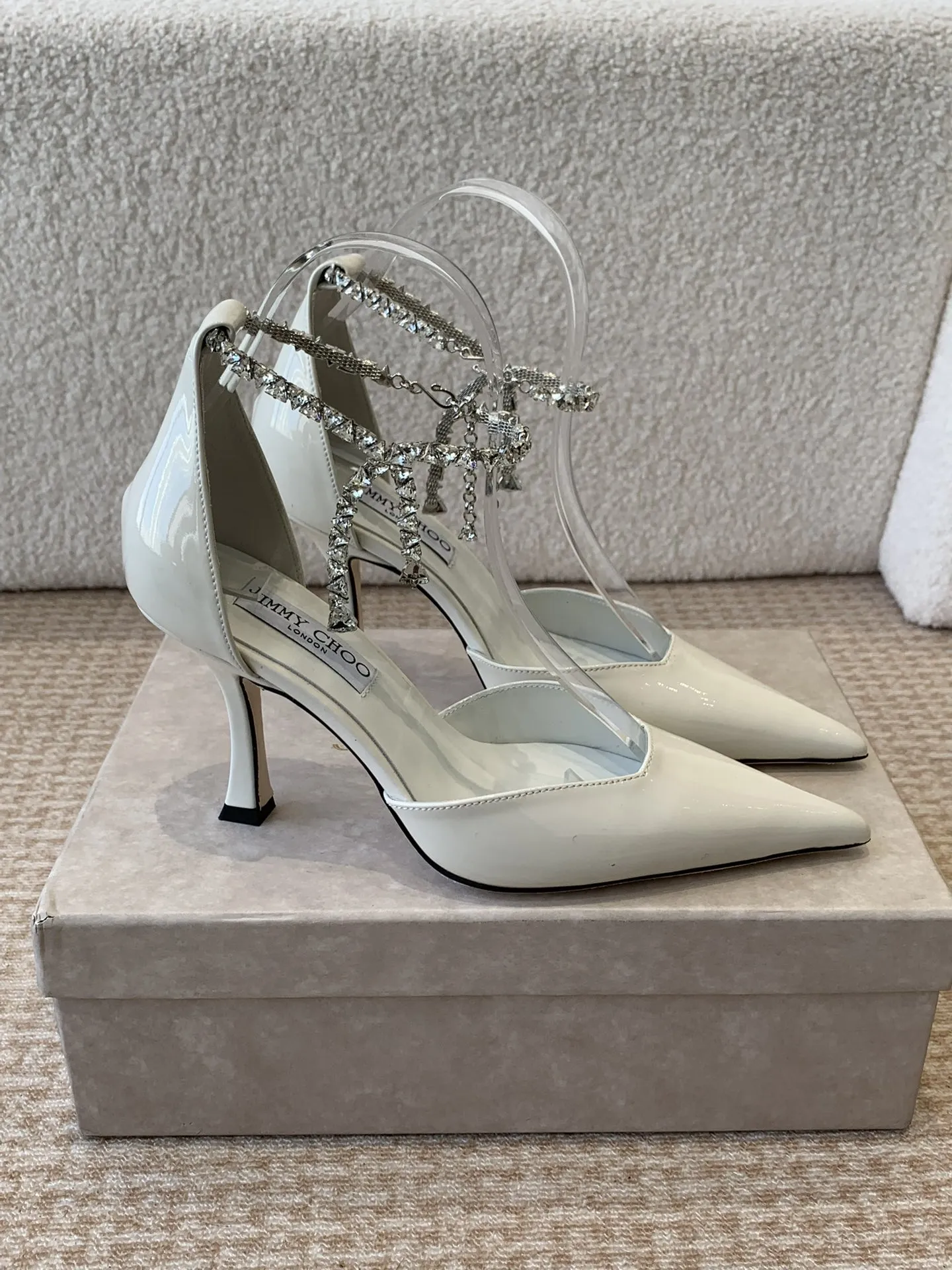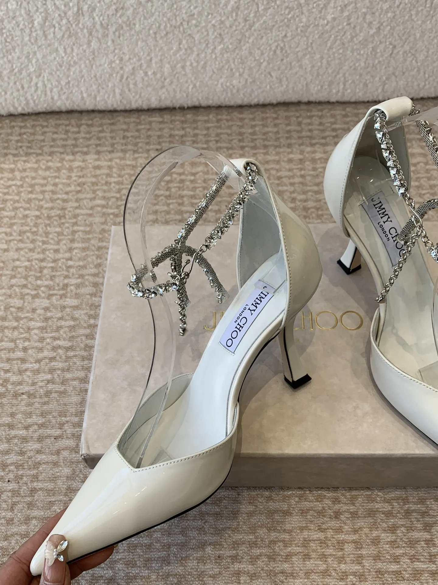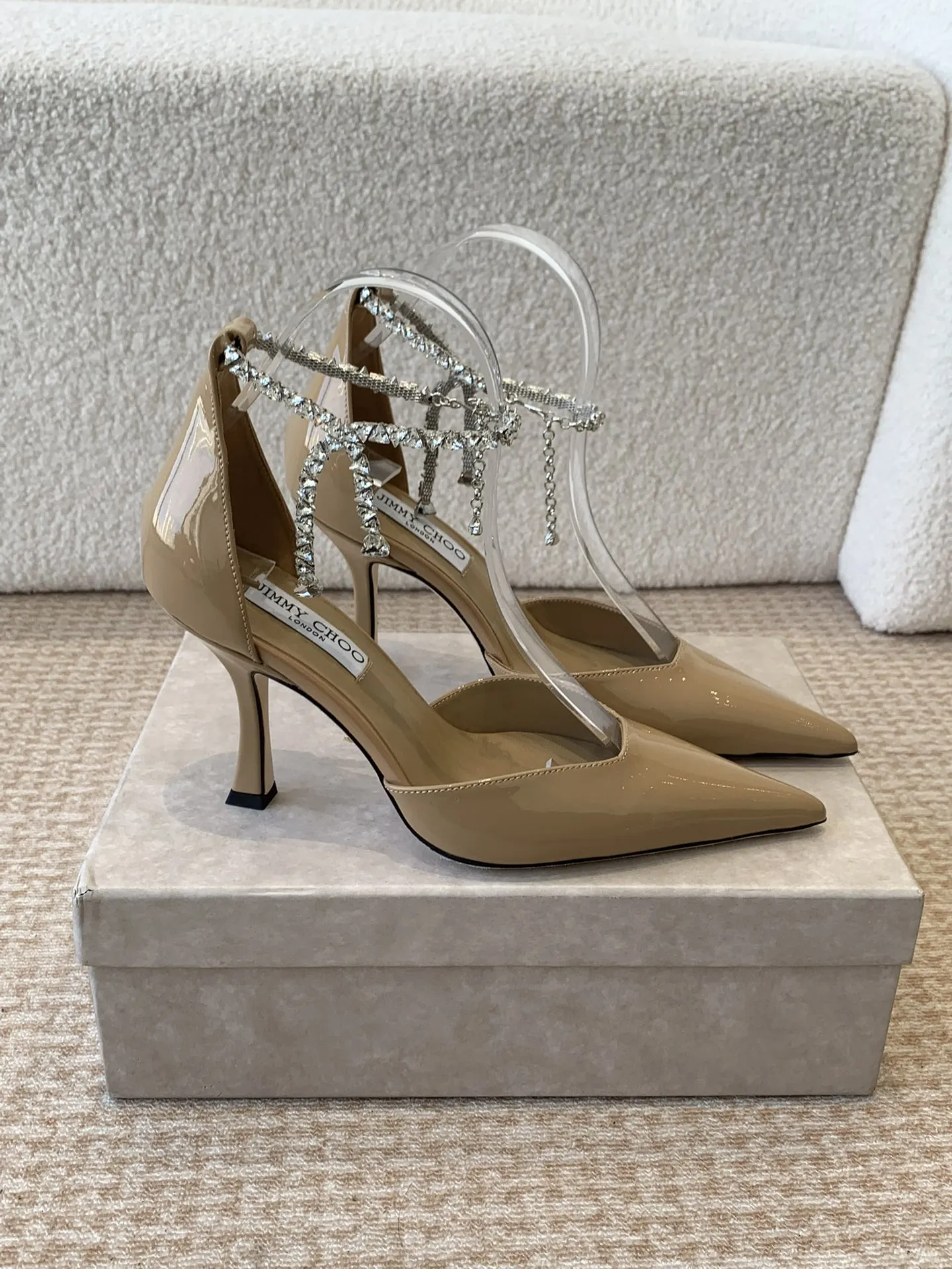 Jimmy Choo — это не просто бренд, а символ роскошного модного образа жизни. Стразы обладают уникальным шармом, который сочетает в себе элегантность и футуристические нотки. Это обувь, способная мгновенно преобразить любой наряд, добавляя ему изысканности и игривости. Пара этих туфель на высоком каблуке — 8,5 см — станет не только стильным аксессуаром, но и отличным выражением индивидуальности.