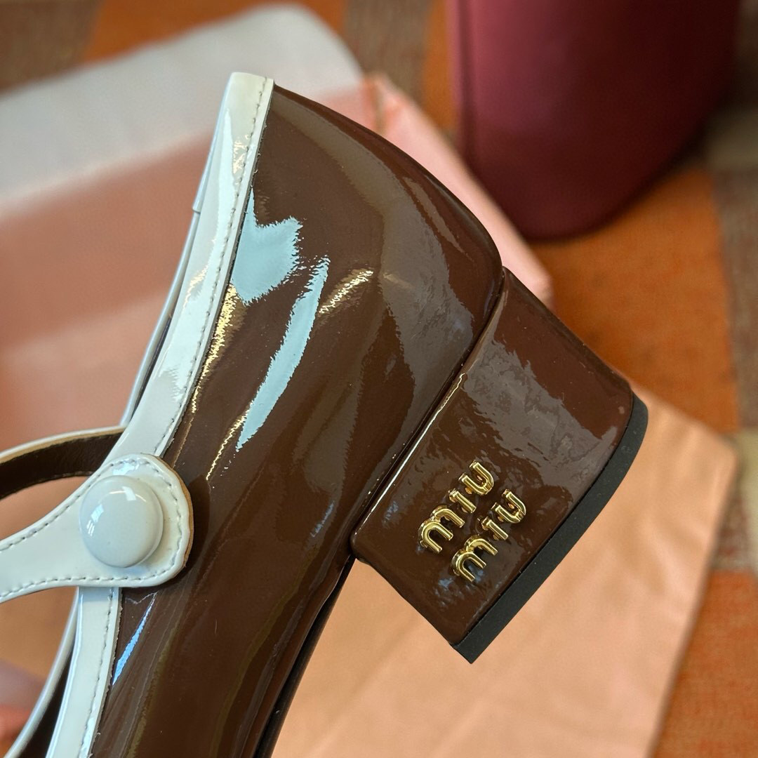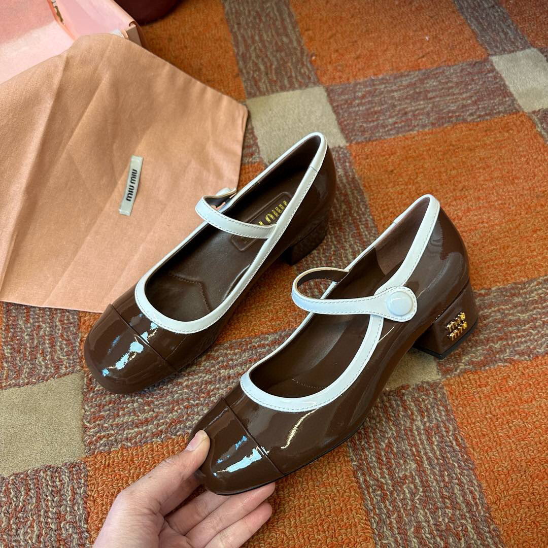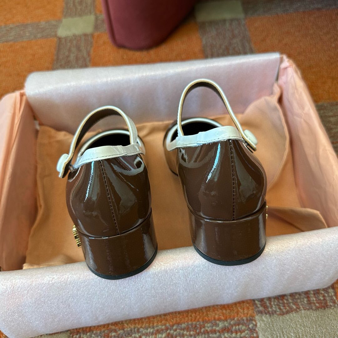 Встречайте безупречное сочетание ретро-шика и современной элегантности в новых туфлях Мэри Джейн от Miu Miu. Эти стильные и универсальные туфли станут вашим любимым аксессуаром на весенне-летний сезон. Выполненные в классической палитре – глубоком черном и благородном коричневом – они легко впишутся в любой гардероб. Блестящая, лакированная коровья кожа, придающая туфлям элегантный вид.