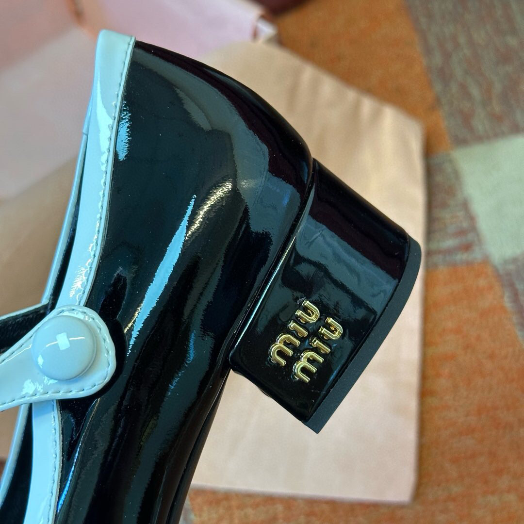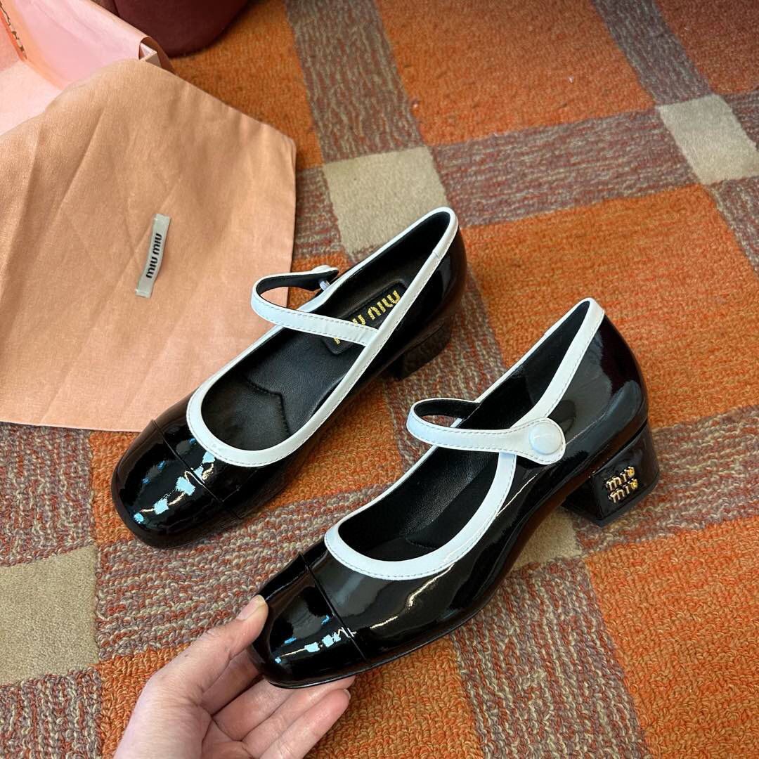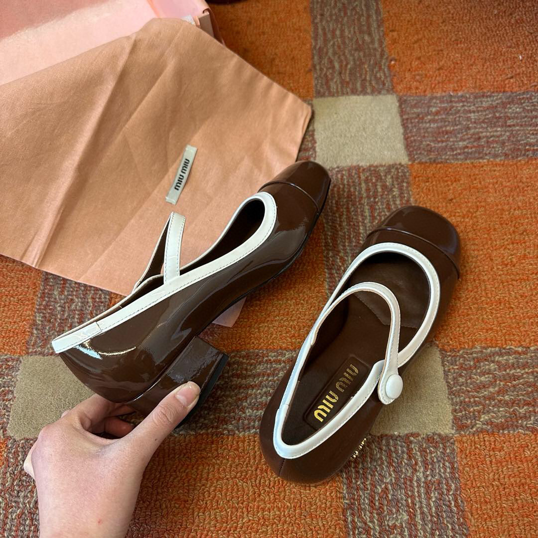 Встречайте безупречное сочетание ретро-шика и современной элегантности в новых туфлях Мэри Джейн от Miu Miu. Эти стильные и универсальные туфли станут вашим любимым аксессуаром на весенне-летний сезон. Выполненные в классической палитре – глубоком черном и благородном коричневом – они легко впишутся в любой гардероб. Блестящая, лакированная коровья кожа, придающая туфлям элегантный вид.