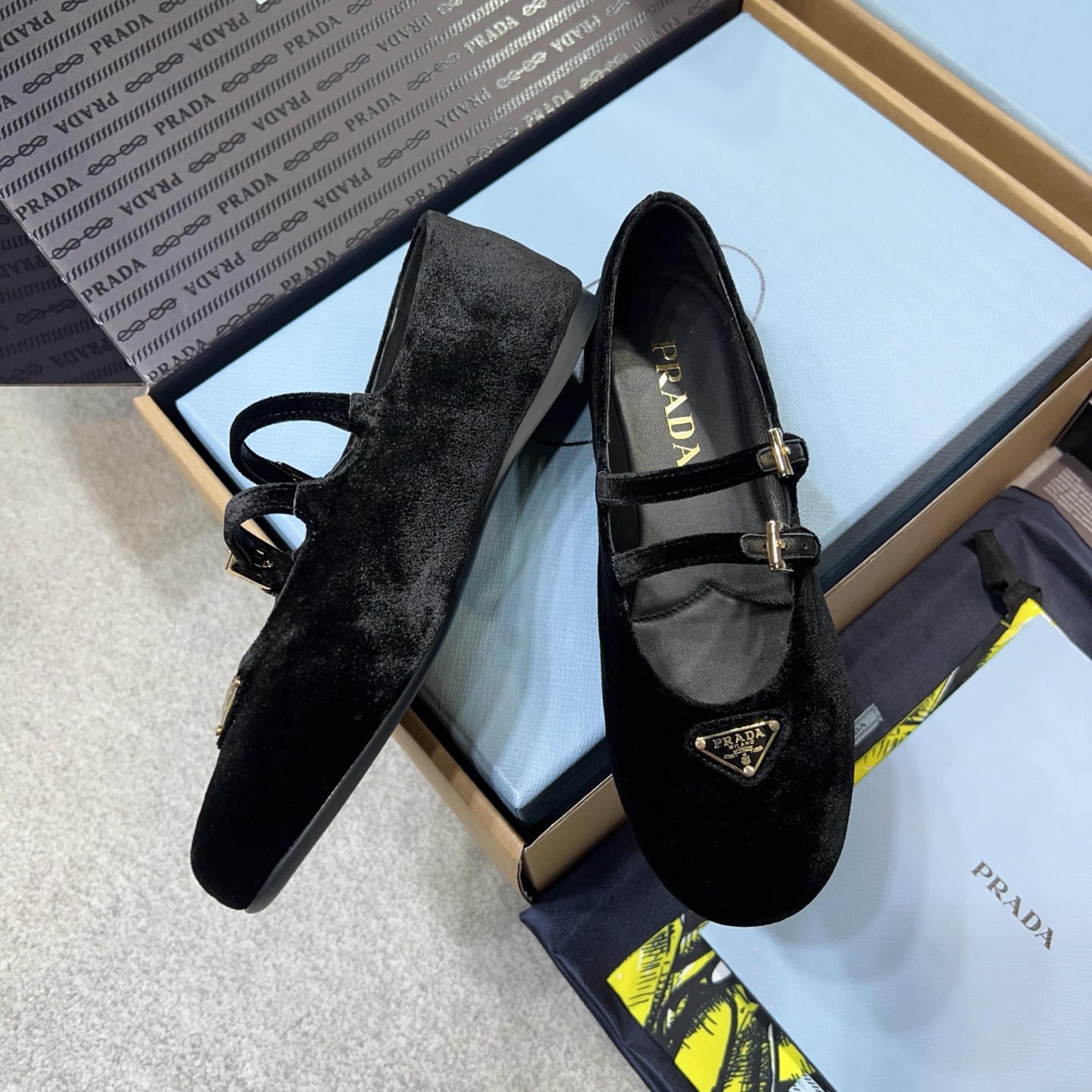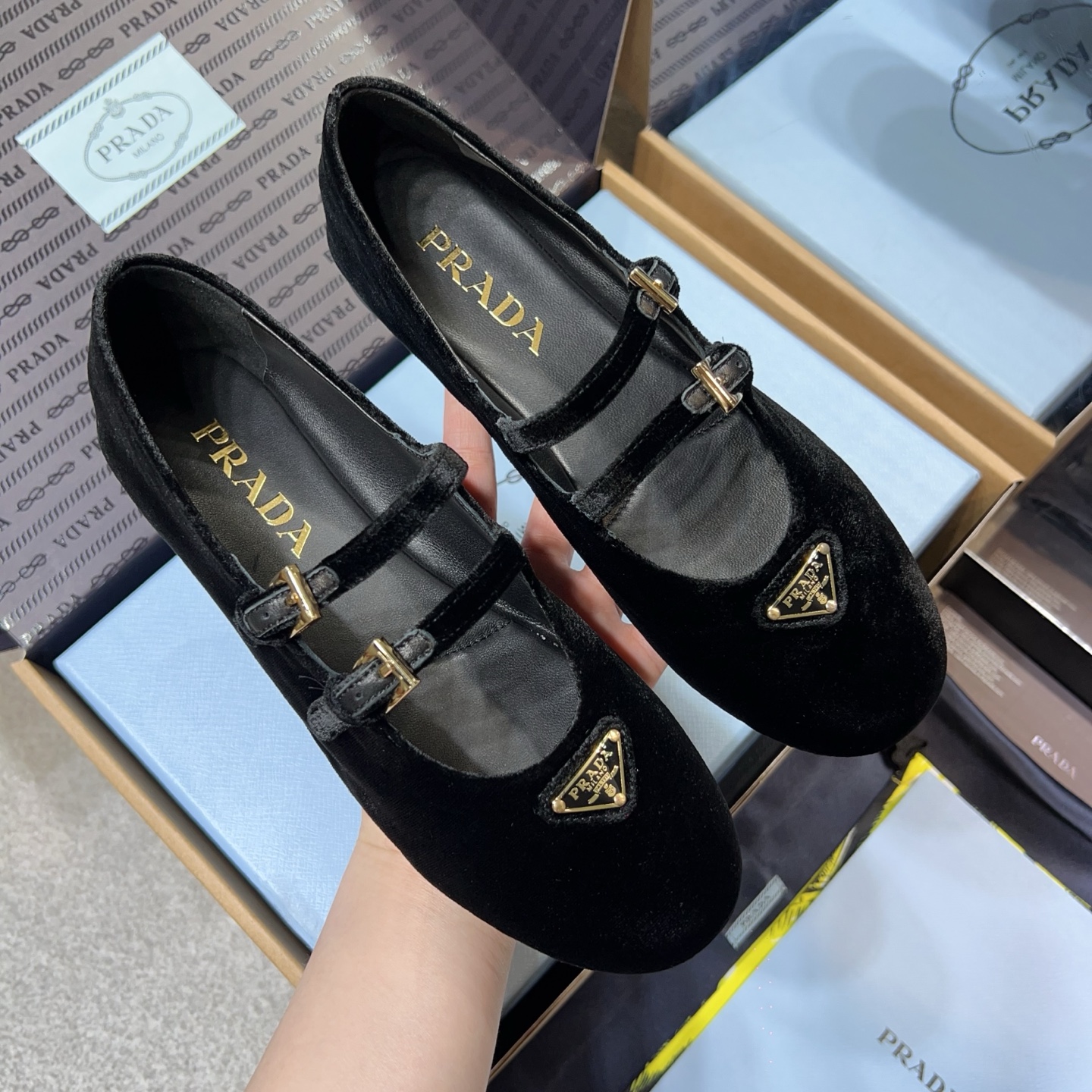 Элегантные женские туфли от PRADA выполнены из бархата и кожи черного цвета. Модель с актуальным круглым носом и закрытой пяткой с перемычкой. Минималистичный дизайн, лаконичный силуэт и блестящая фактура придают обуви премиальный и утончённый вид. Внутренняя отделка из мягкой кожи обеспечивает комфорт при носке. Отличный выбор для стильных образов на каждый день или особого случая.