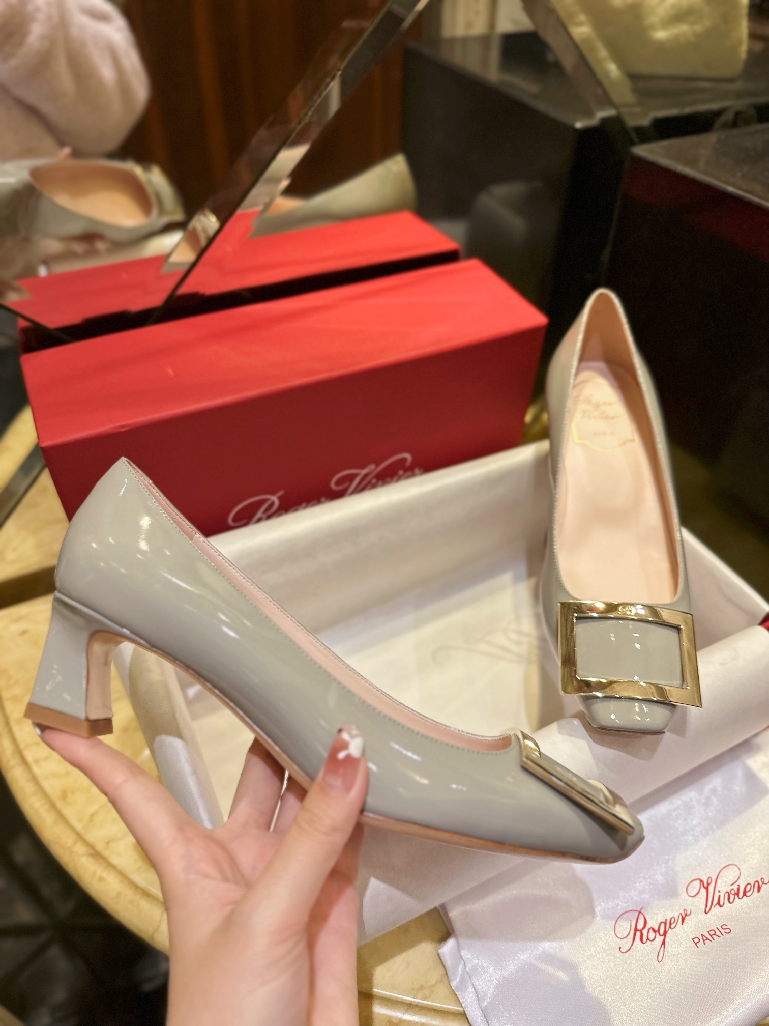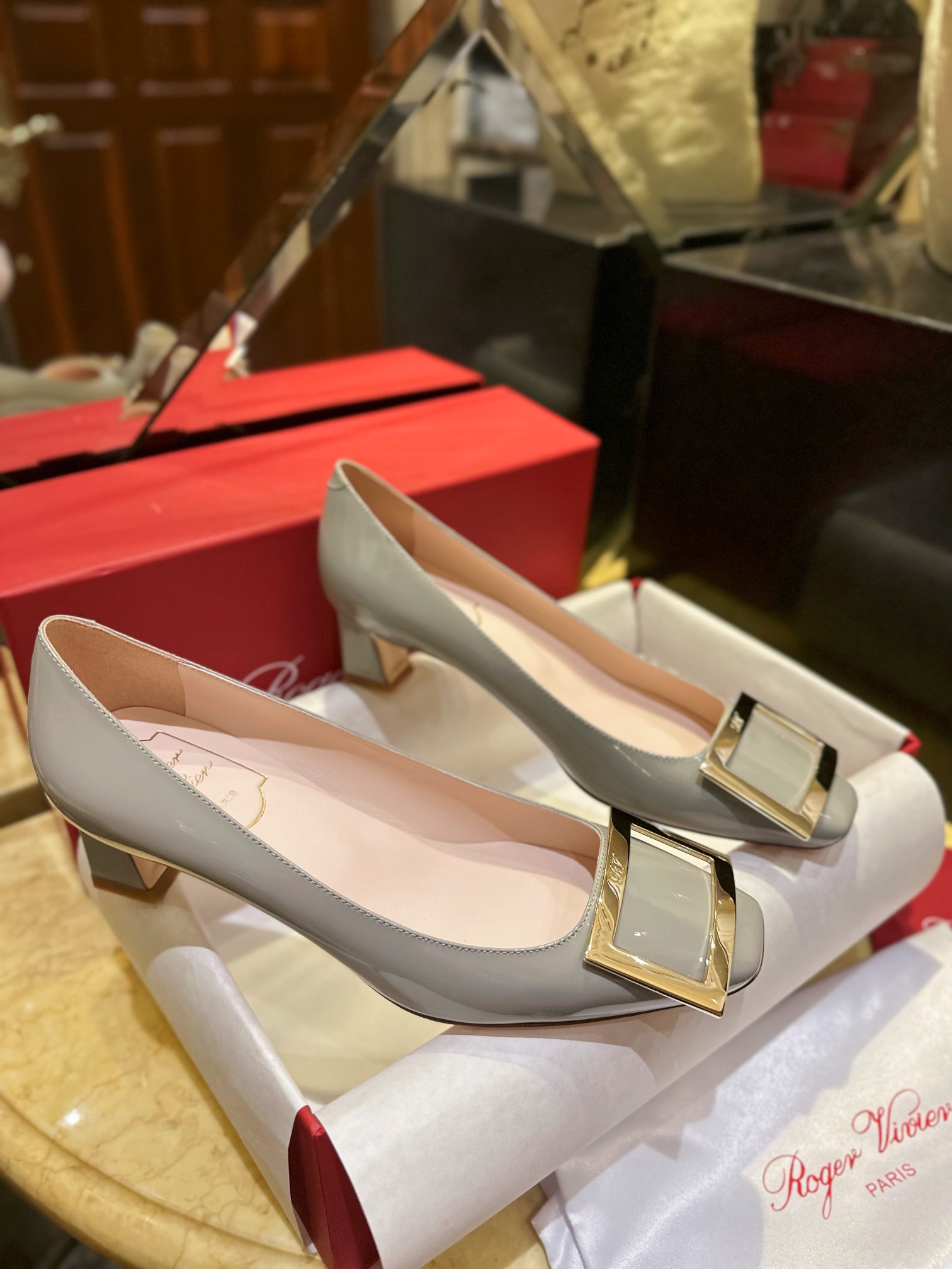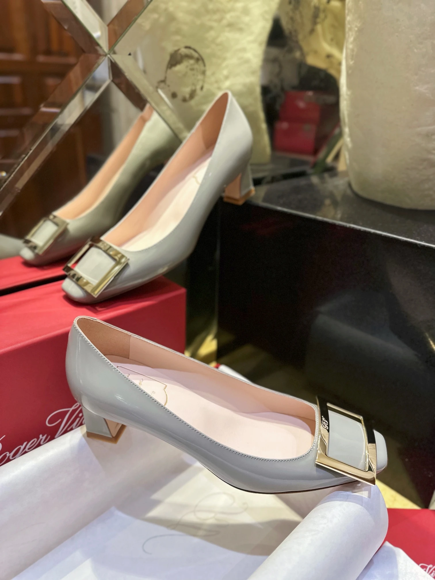 Элегантные туфли от знаменитого французского бренда Roger Vivier — идеальный выбор для утончённого и стильного образа. Модель выполнена из глянцевой лакированной кожи нежного серого оттенка, который добавит свежести и шика вашему гардеробу. Мягкий внутренний слой обеспечивает комфорт на протяжении всего дня.