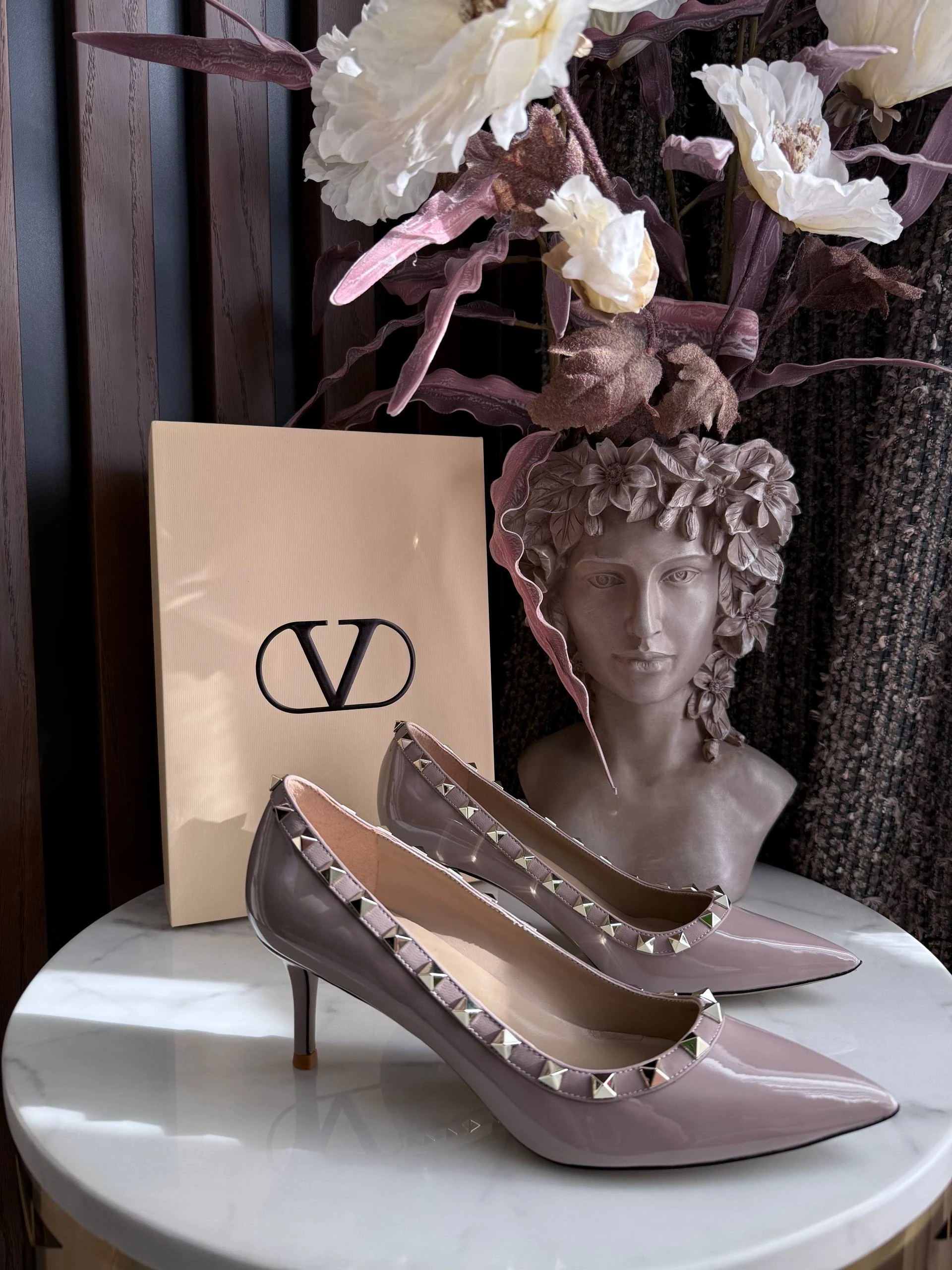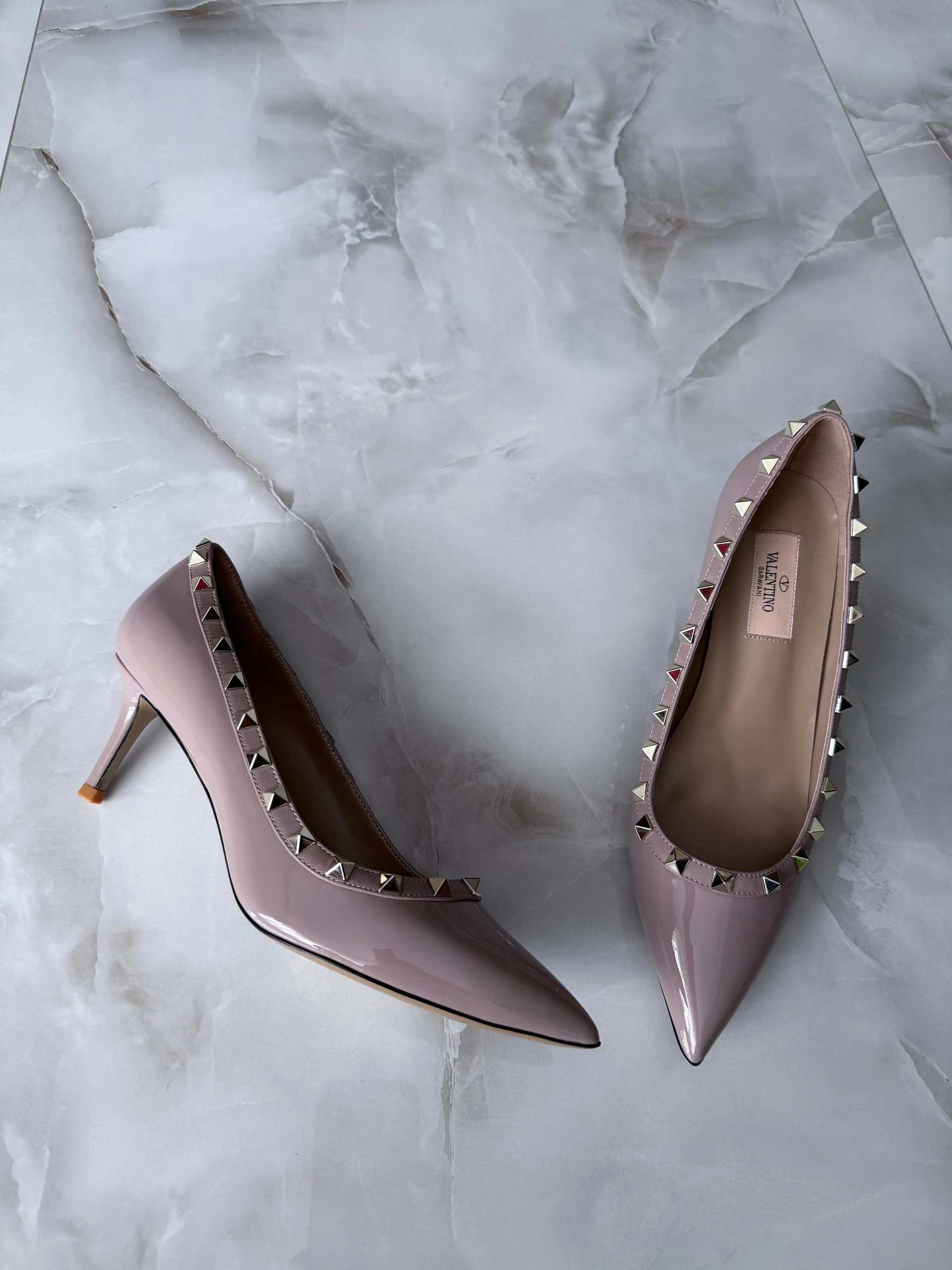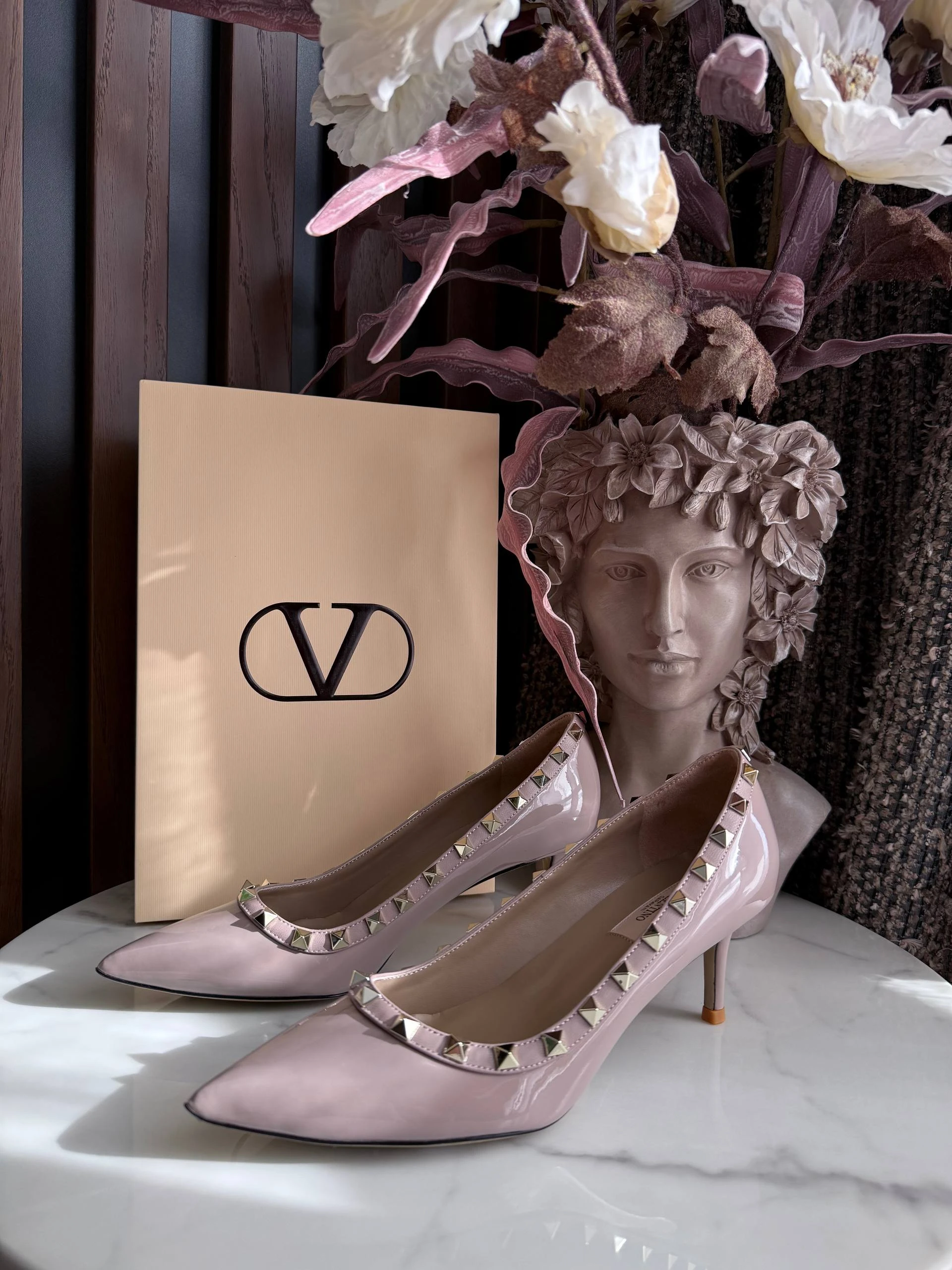 Фирменные металлические заклёпки вдоль линии выреза придают обуви характерный акцент, подчеркивая индивидуальность и дерзость бренда Valentino. Эти детали делают туфли не просто обувью, а настоящим произведением искусства, которое привлекает внимание и восхищение.