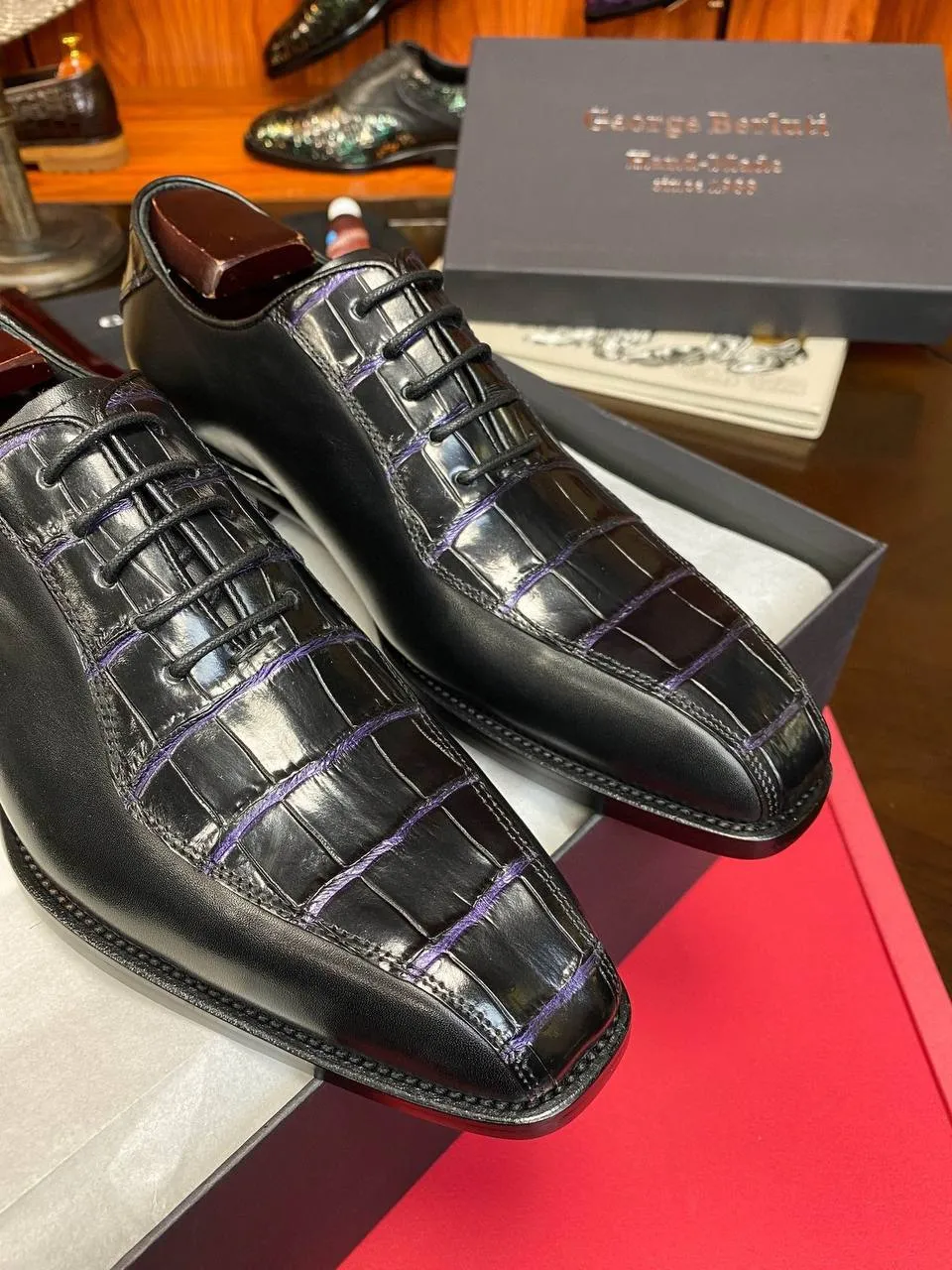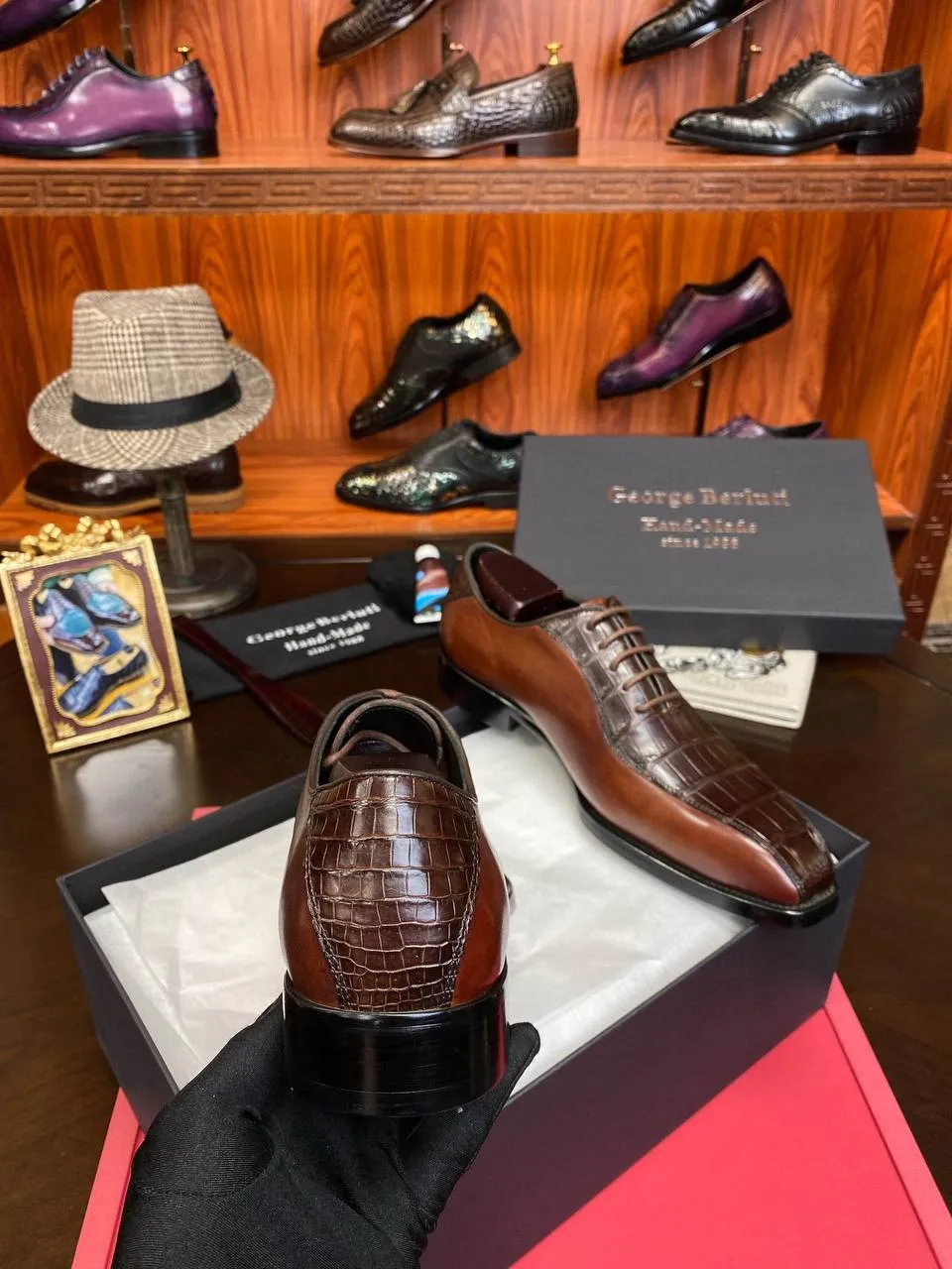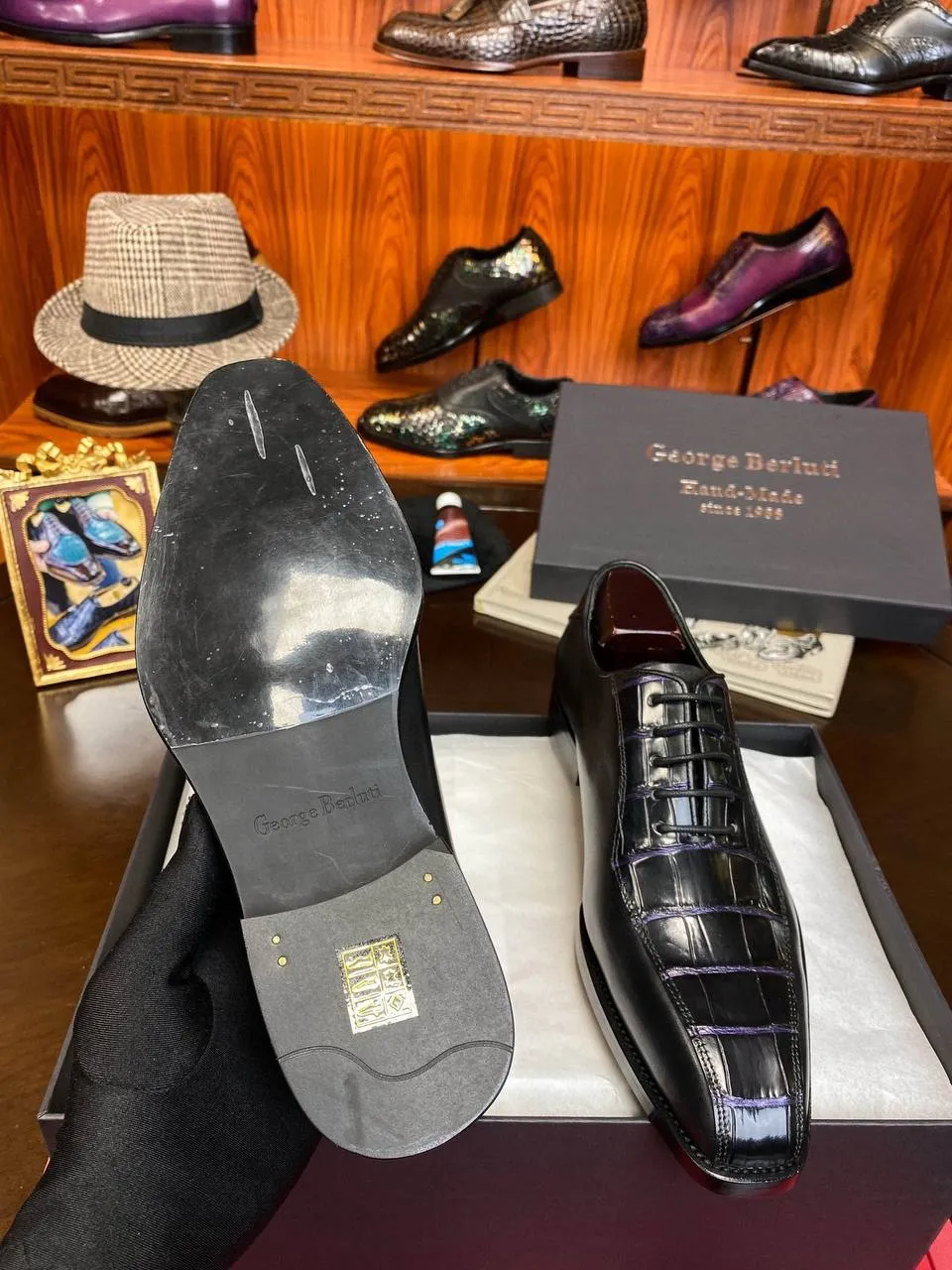 Погрузитесь в мир истинной роскоши с мужскими туфлями BERLUTI, созданных для ценителей стиля и комфорта. Эти эксклюзивные туфли изготовлены из высококачественных материалов. Каждая пара представляет собой произведение искусства благодаря вставкам из кожи сиамского крокодила. Уникальная форма делает эту обувь безупречной, а ручная работа гарантирует долговечность и комфорт при каждой носке. Выразите свою индивидуальность с туфлями, созданными для истинных ценителей моды.
