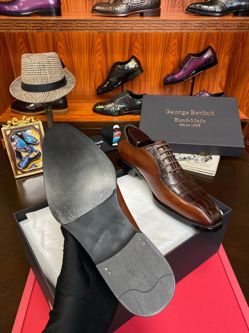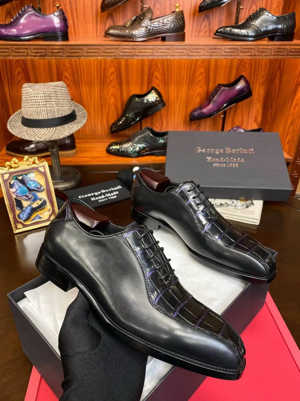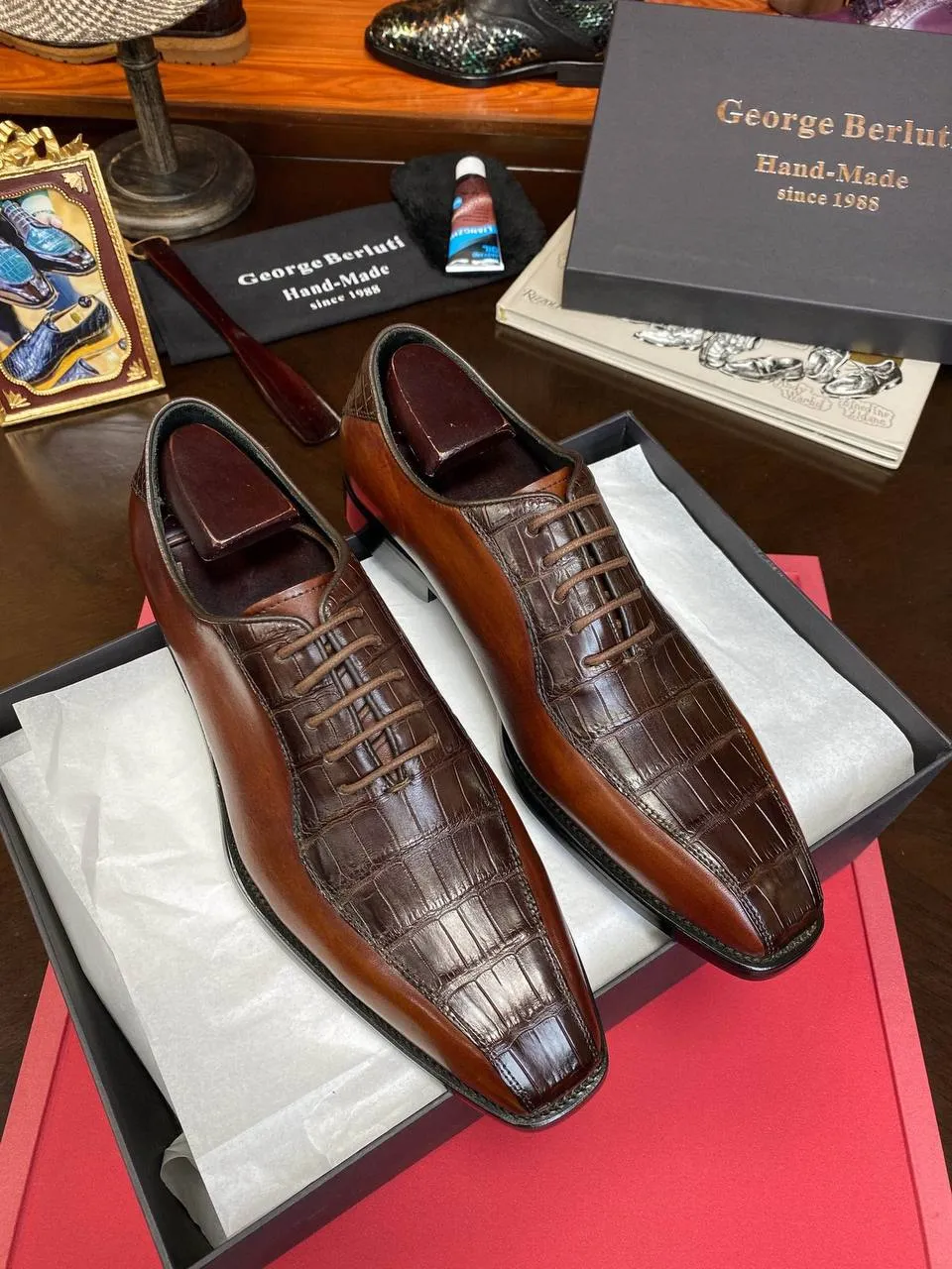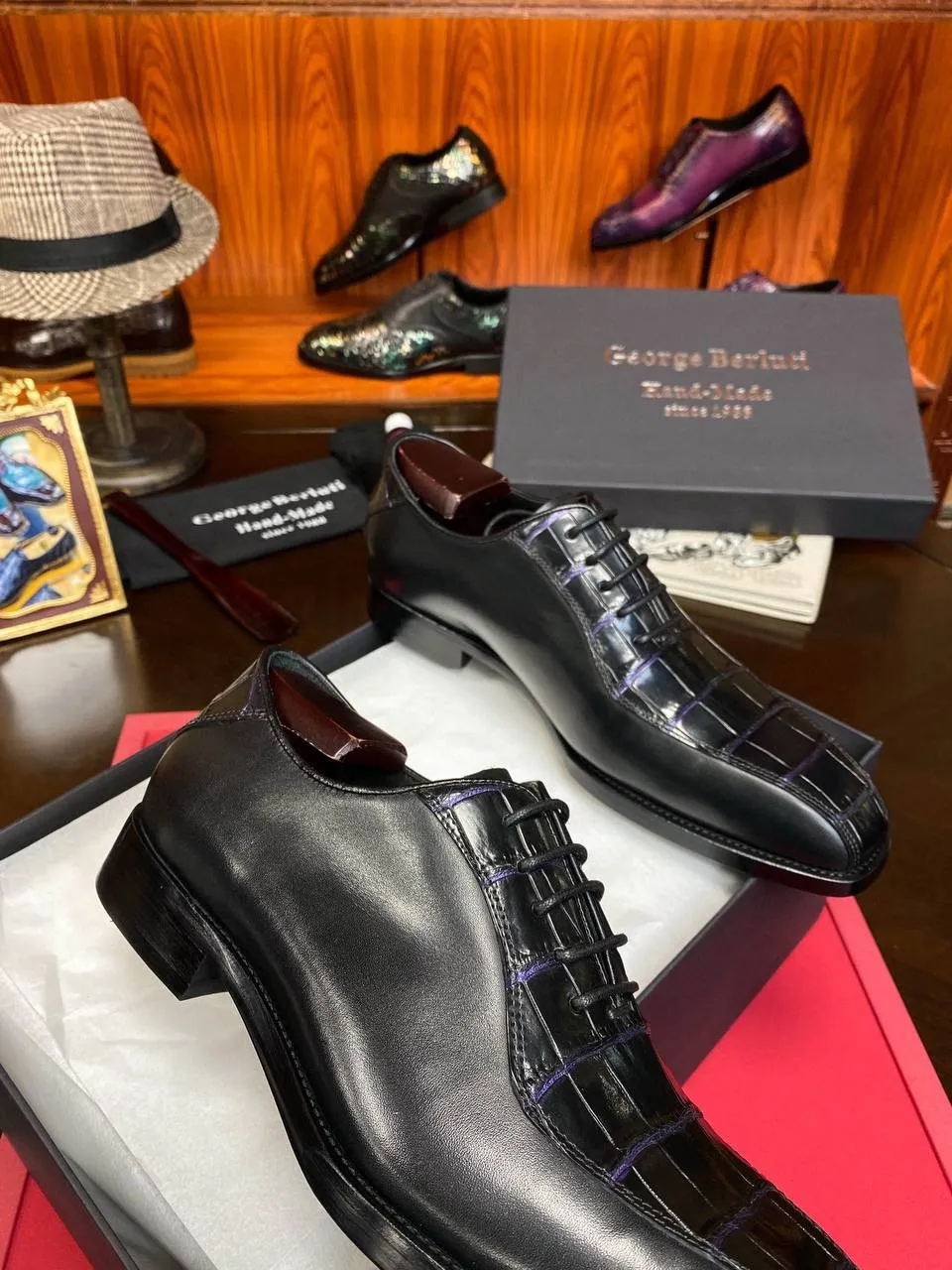 Погрузитесь в мир истинной роскоши с мужскими туфлями BERLUTI, созданных для ценителей стиля и комфорта. Эти эксклюзивные туфли изготовлены из высококачественных материалов. Каждая пара представляет собой произведение искусства благодаря вставкам из кожи сиамского крокодила. Уникальная форма делает эту обувь безупречной, а ручная работа гарантирует долговечность и комфорт при каждой носке. Выразите свою индивидуальность с туфлями, созданными для истинных ценителей моды.