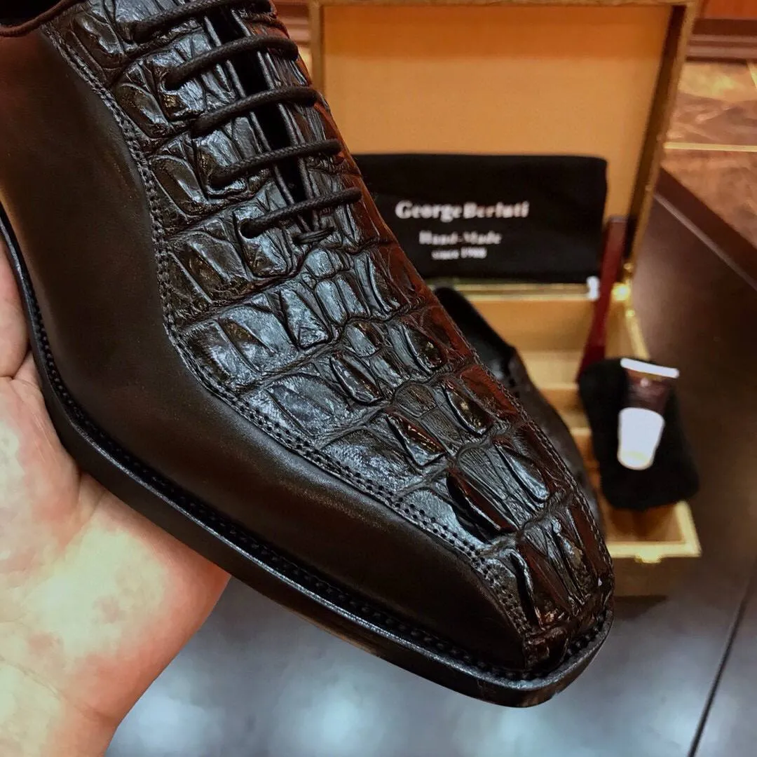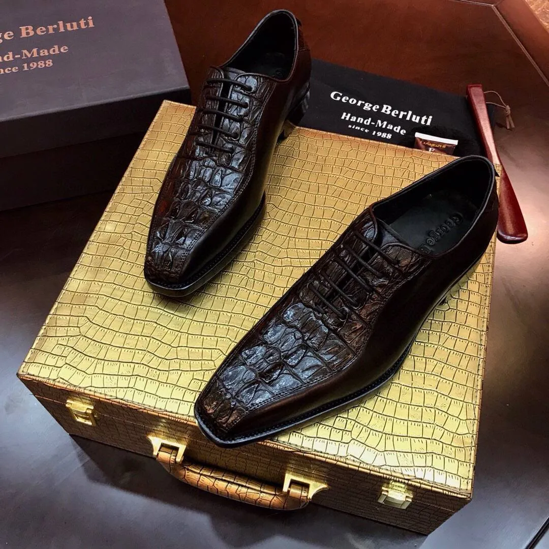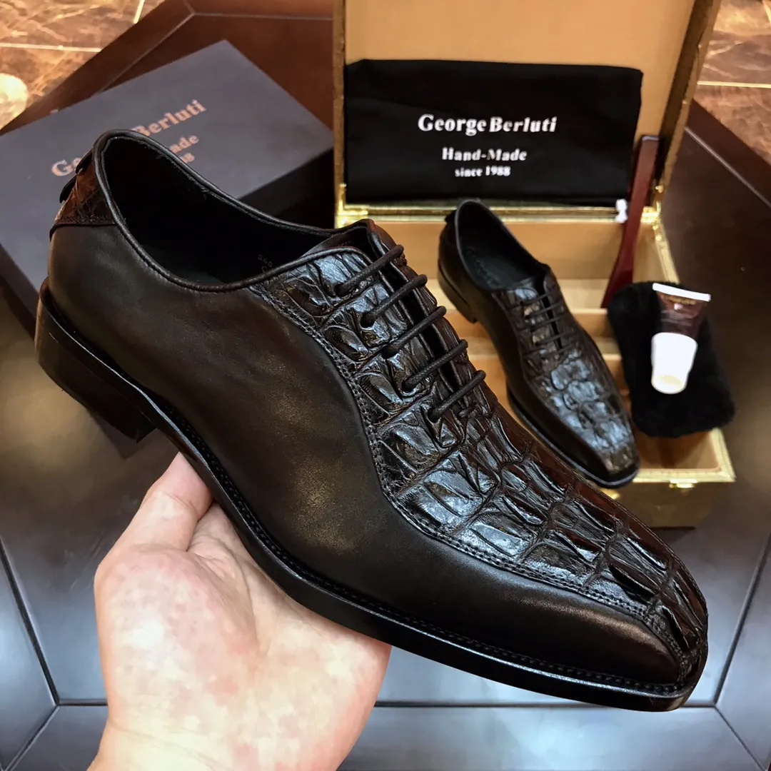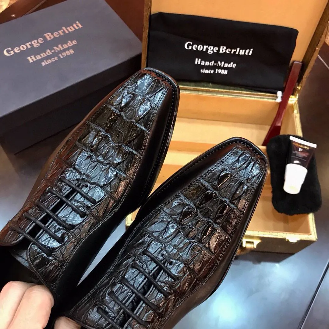 Эти уникальные мужские туфли от BERLUTI из высококачественной крокодиловой кожи — настоящая находка для ценителей роскошной обуви. Каждый элемент оксфордов свидетельствует о безупречном мастерстве и профессионализме. Уникальная форма и изысканный дизайн создают идеальный баланс между классикой и современными тенденциями. Эти туфли станут прекрасным дополнением к любому вашему образу, отражая стиль и изящество истинного джентльмена. Выберите BERLUTI — и ваши шаги будут наполнены уверенностью и стилем.