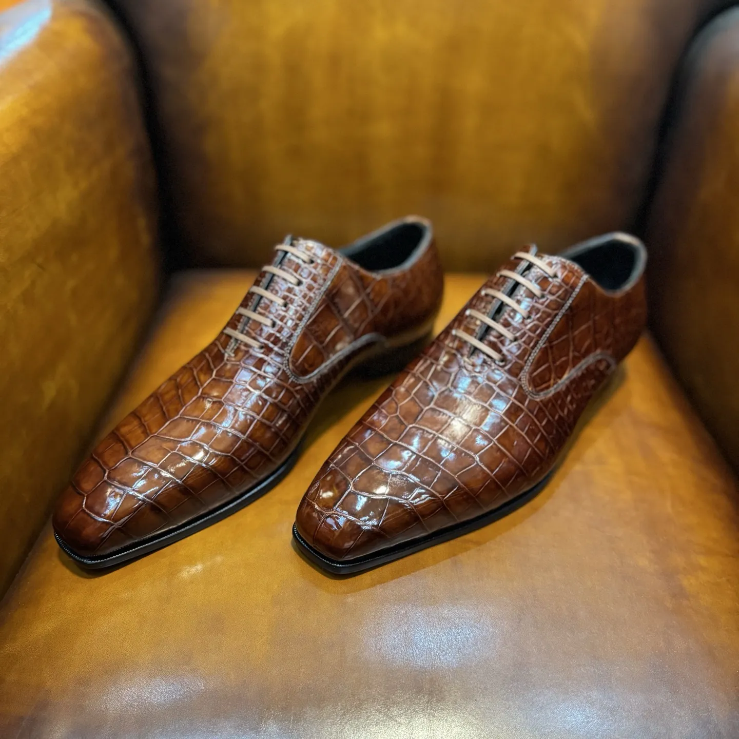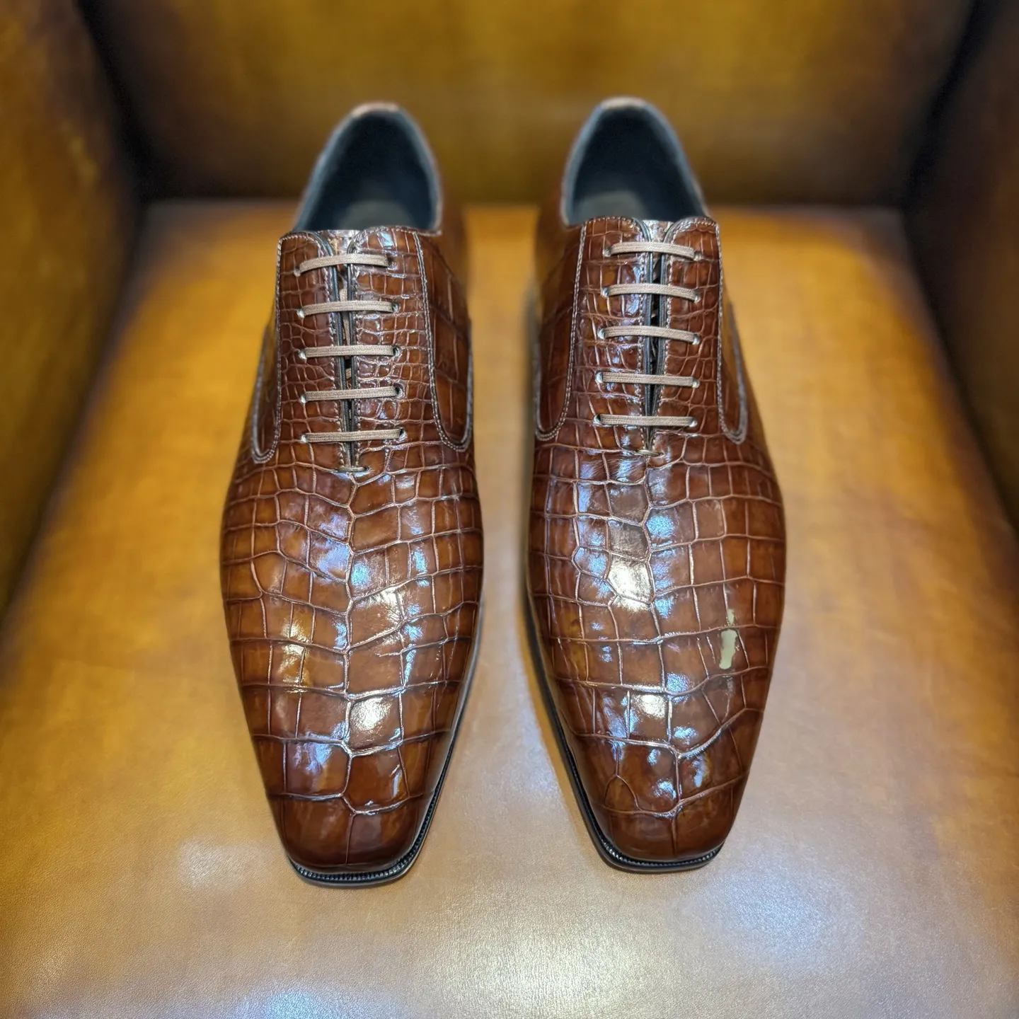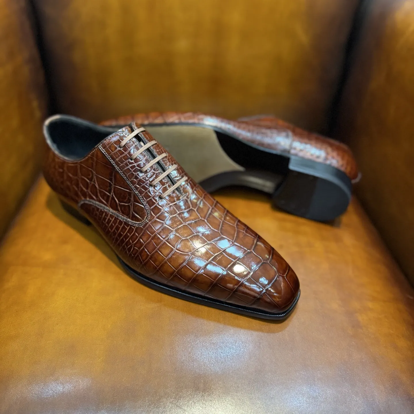 BERLUTI Мужские туфли из кожи крокодила коричневого оттенка