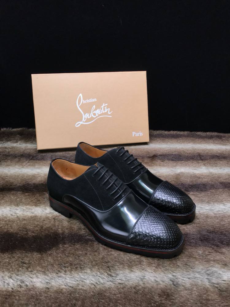 Мужские туфли-ботинки Christian Louboutin — элегантная комбинация классики и современного акцента. Идеально подходят для тех, кто ценит утончённую отделку и необычные фактуры.
