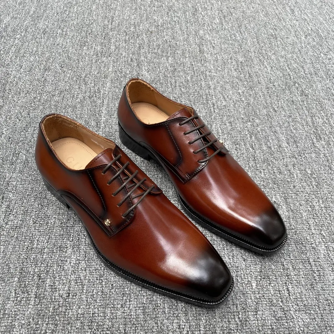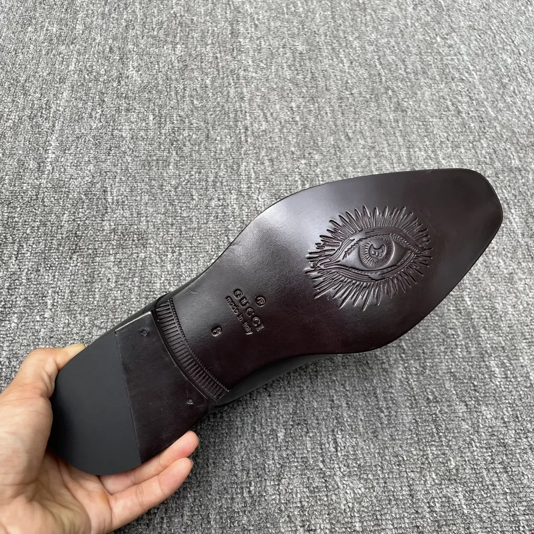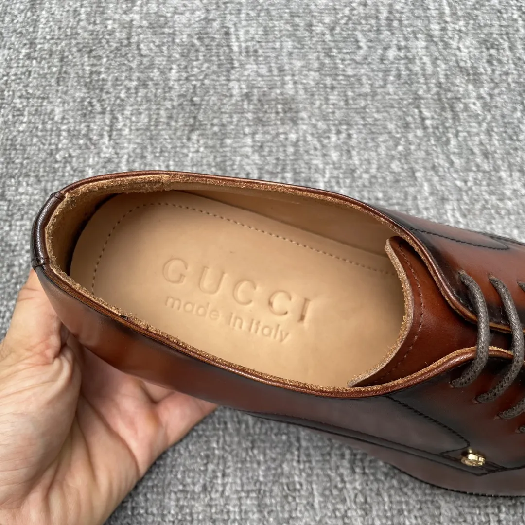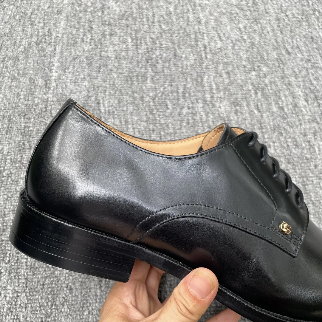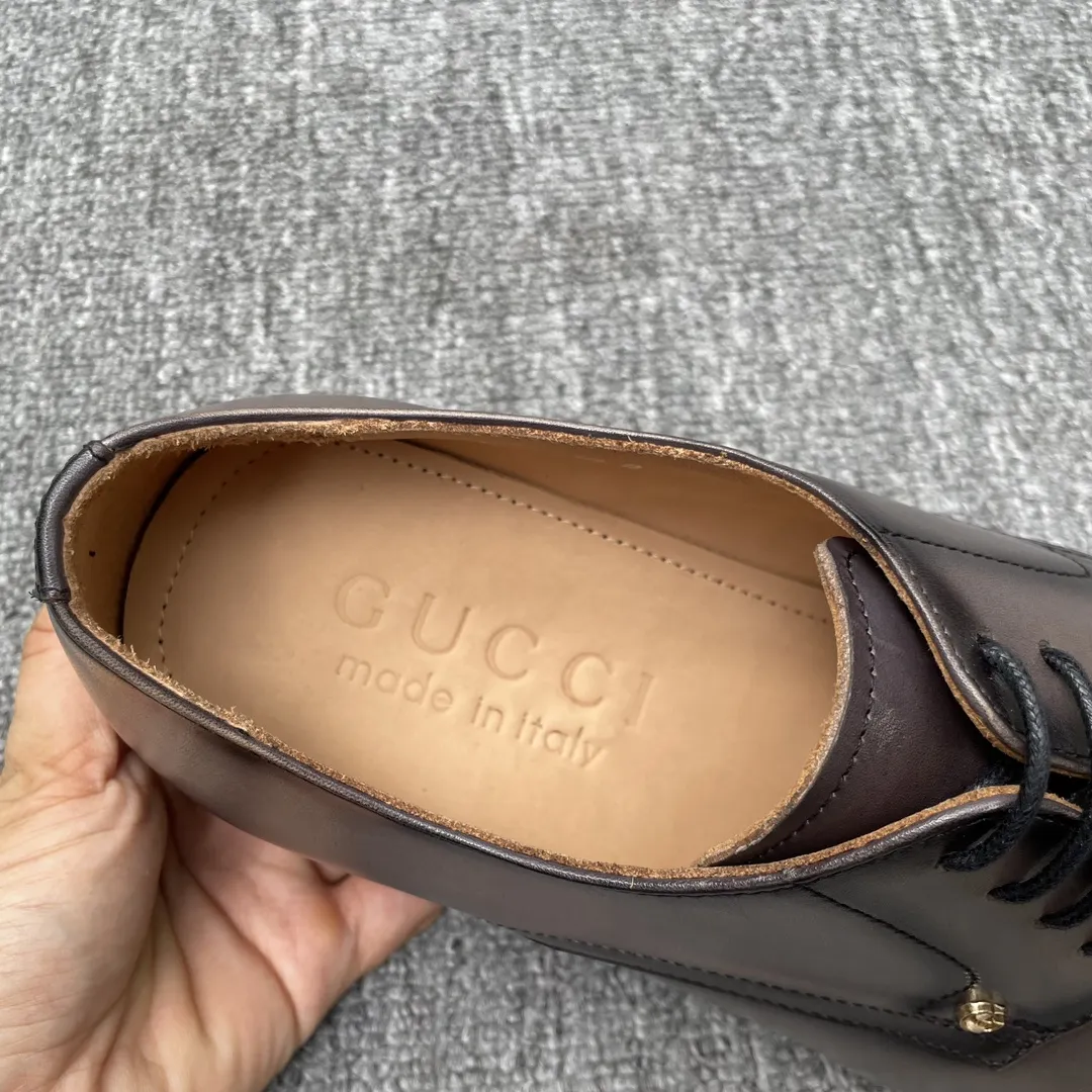 Туфли Gucci изготовлены из высококачественной телячьей кожи, что обеспечивает прочность и изысканный внешний вид. Их классический дизайн придает им элегантность и универсальность, что делает их подходящими как для официальных мероприятий, так и для повседневной носки. Туфли на шнуровке добавляют стиля и позволяют регулировать посадку, обеспечивая комфорт и поддержку.