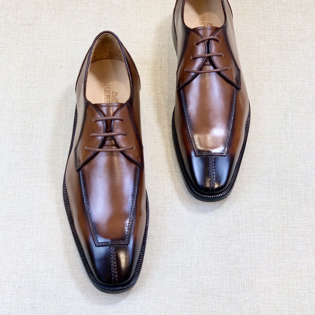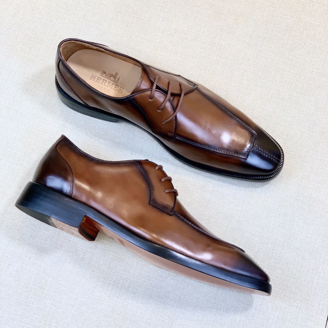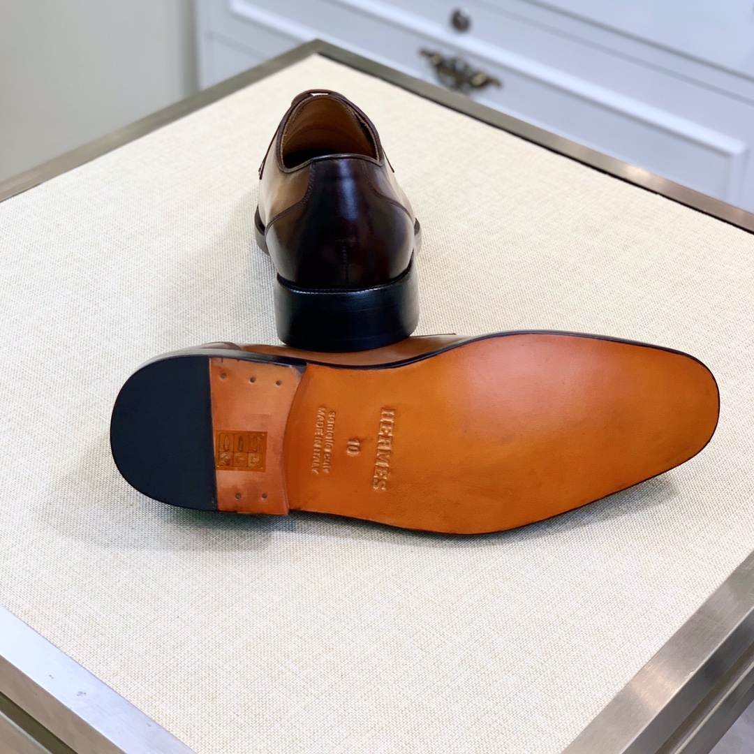 Туфли Hermes - воплощение классики и ретро-шика. Верх из импортной коровьей кожи. Безупречное мастерство и благородные материалы, включая внутреннюю отделку из коровьей кожи и фирменную кожаную подошву, подчеркивают безупречный вкус джентльмена.