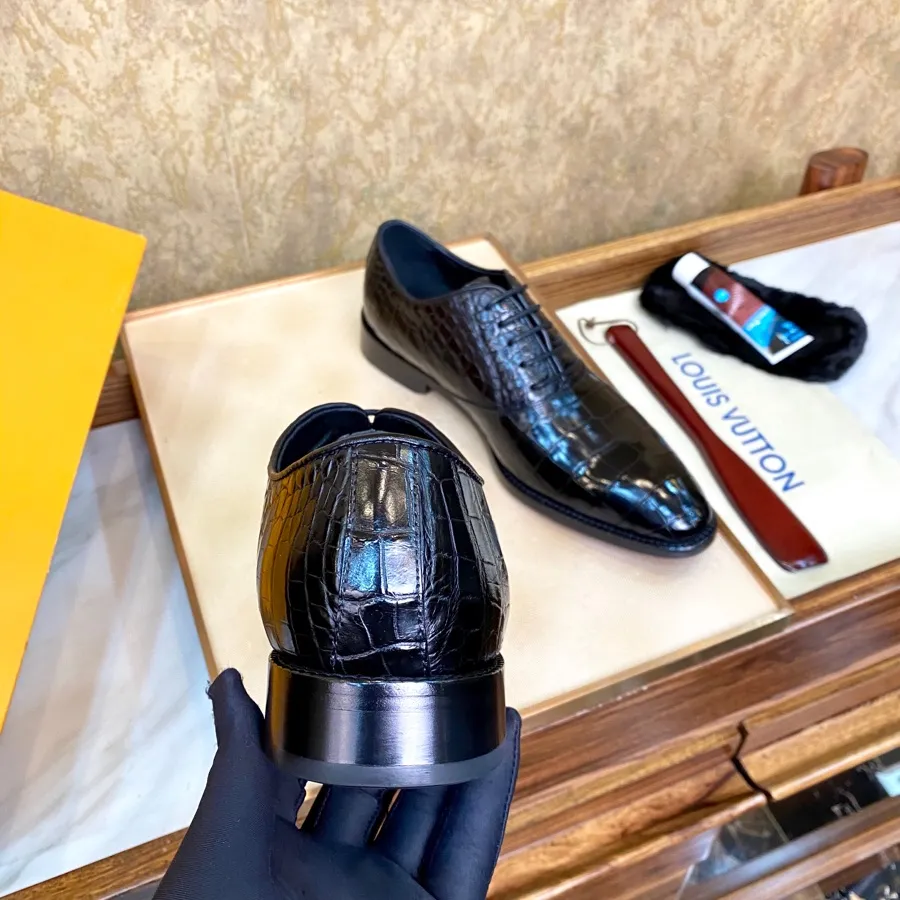LOUIS VUITTON Мужские туфли кожа крокодила черные