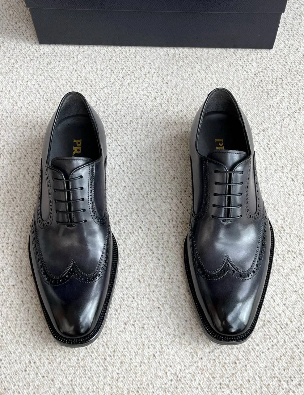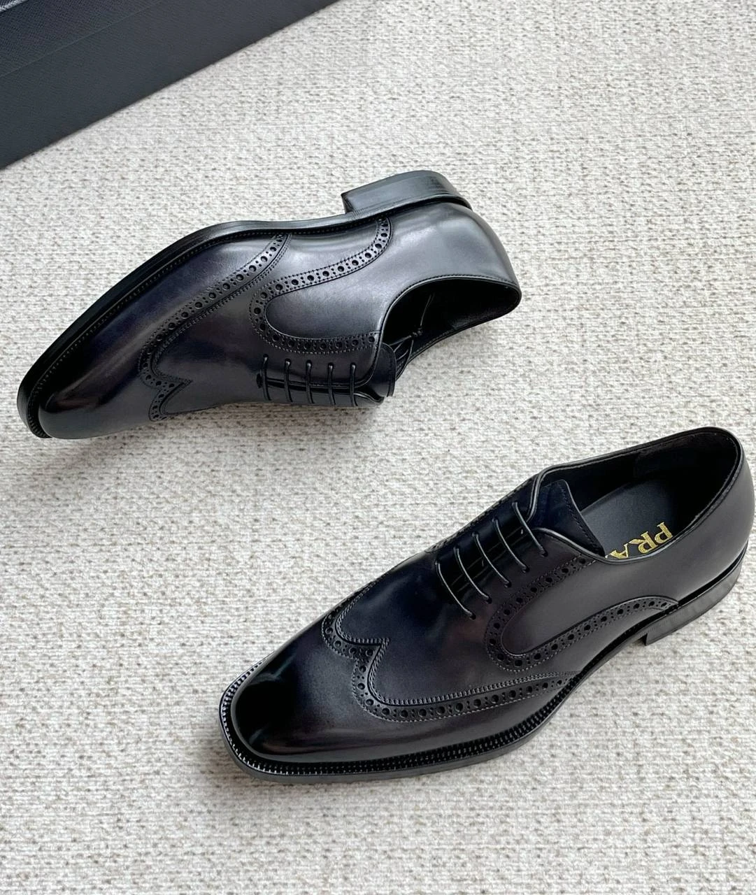 • Детали: декоративная перфорация, квадратный мысок, логотип PRADA на стельке