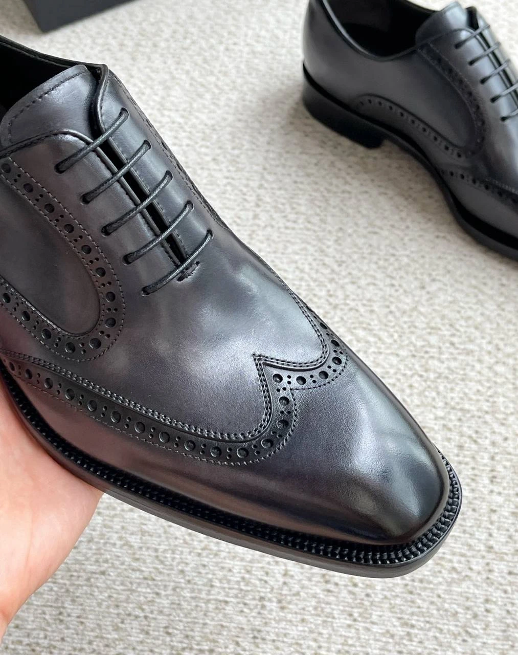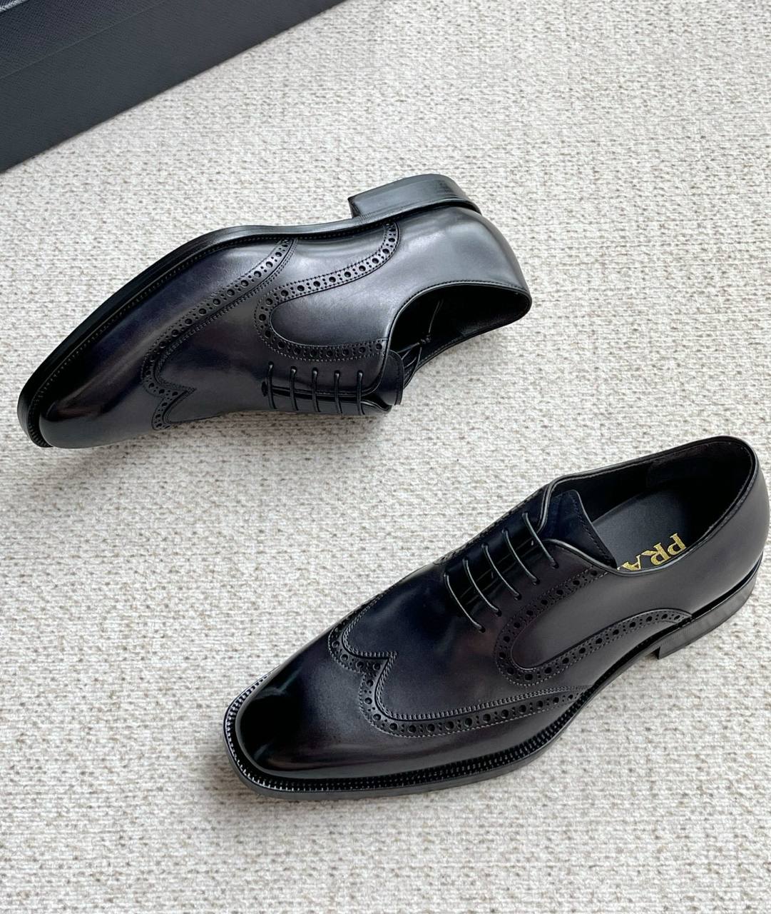 Элегантные мужские туфли от легендарного итальянского бренда PRADA — воплощение классики и безупречного стиля. Модель выполнена из высококачественной коровьей кожи премиум-класса, обеспечивающей прочность и комфорт на протяжении всего дня. Отделка — гладкая, с легким благородным блеском, который подчеркивает статус и неповторимый стиль владельца.
