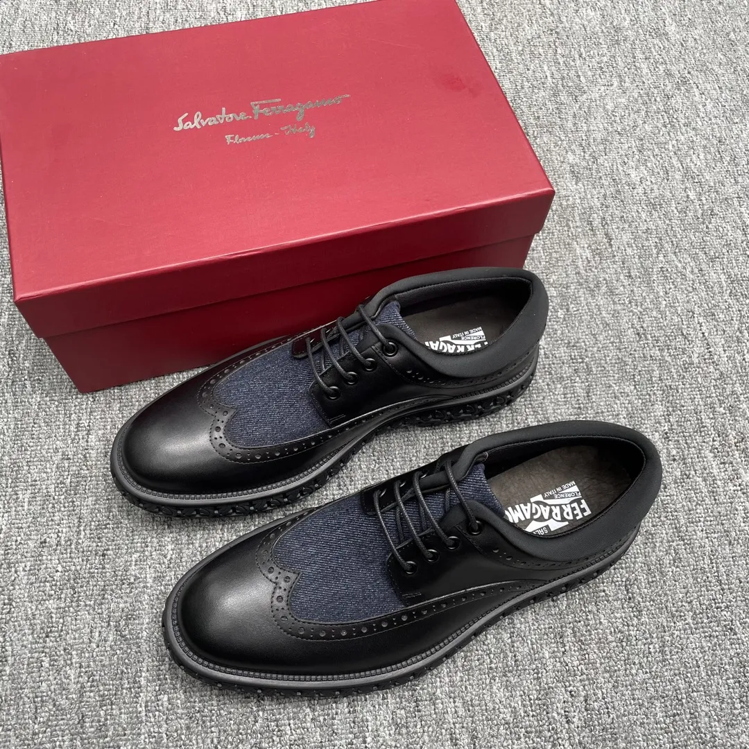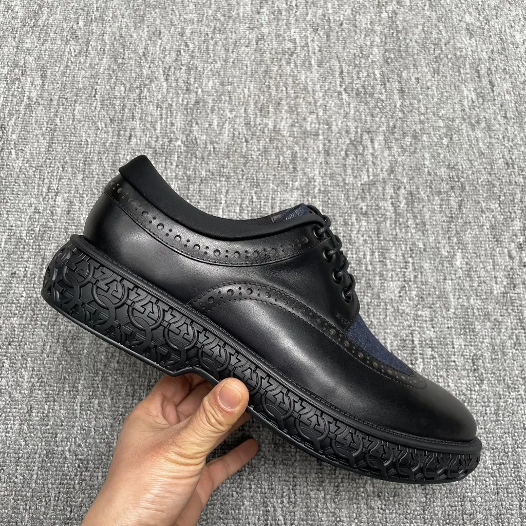 Представляем новейшую модель от Salvatore Ferragamo: мужские туфли Дерби на толстой подошве, воплощающие современный минимализм с дерзкими акцентами. Сочетание премиальной итальянской коровьей кожи и денима создает уникальный и стильный образ. Прочная подошва из ТПУ и резины обеспечивает надежность и комфорт, а логотип, интегрированный в эластичную ткань лайкра в области носка, гарантирует идеальную посадку. Эти туфли Дерби – безупречный выбор для тех, кто ценит стиль и комфорт в каждой детали.